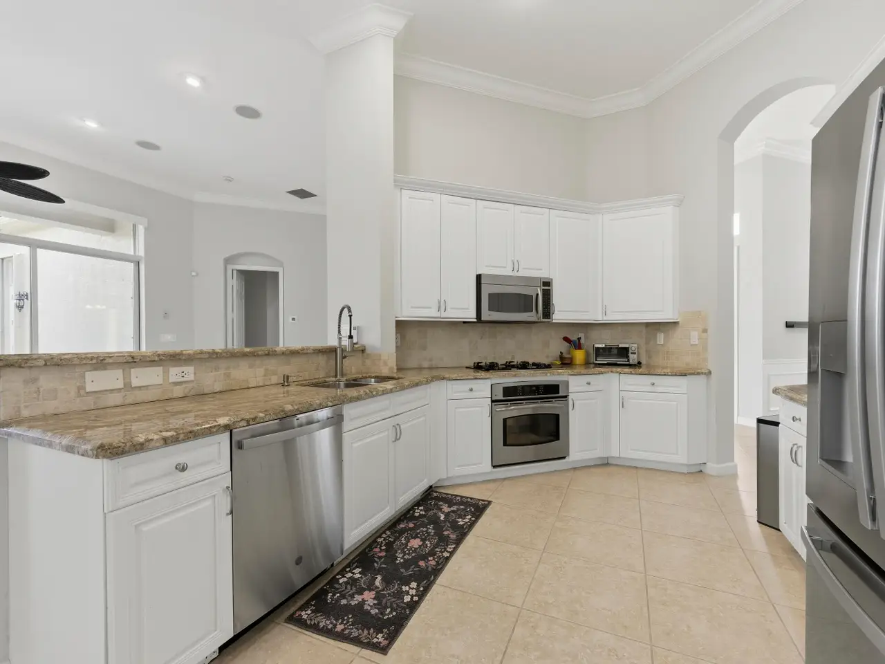 Enjoy this beautiful one story, single family home on a corner lot on the lake! Enjoy the view from your large deck or inside your screen porch off of the family room. Very private setting. The primary bedroom is off by itself with lake views and the other 2 bedrooms are on the other side of the home for privacy . This home is in move in condition and pristine. Kitchen with white cabinets and stainless appliances. A guest bathroom with vessel sink, turf in backyard for easy maintenance! Open floorpan. Come see. See you there!