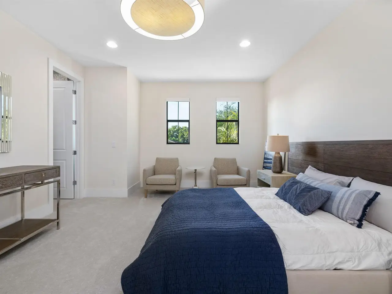 Artistry is a gated, newly built luxury single-family community offering contemporary styled homes, high end finishes and resort-style amenities. It provides a clubhouse, resort pool & cabanas, fitness centre, playground, walking trails, and sports areas. This move-in ready 3-Bed/3/5 bath + lakeview home is located just minutes from top schools, fantastic beaches and shopping. Upscale dining nearby and easy airport access. Spend winters golfing, summers by the pool, and enjoy a lock-and-leave lifestyle. Furnished and flooded with light, modern updates, open living room with gorgeous white porcelain tile floors and an amazing backyard not many others feature in the community.