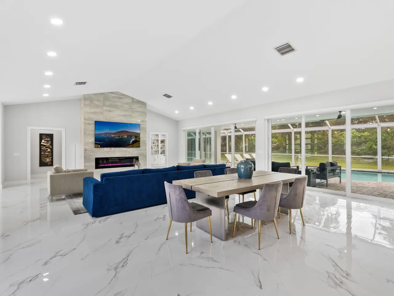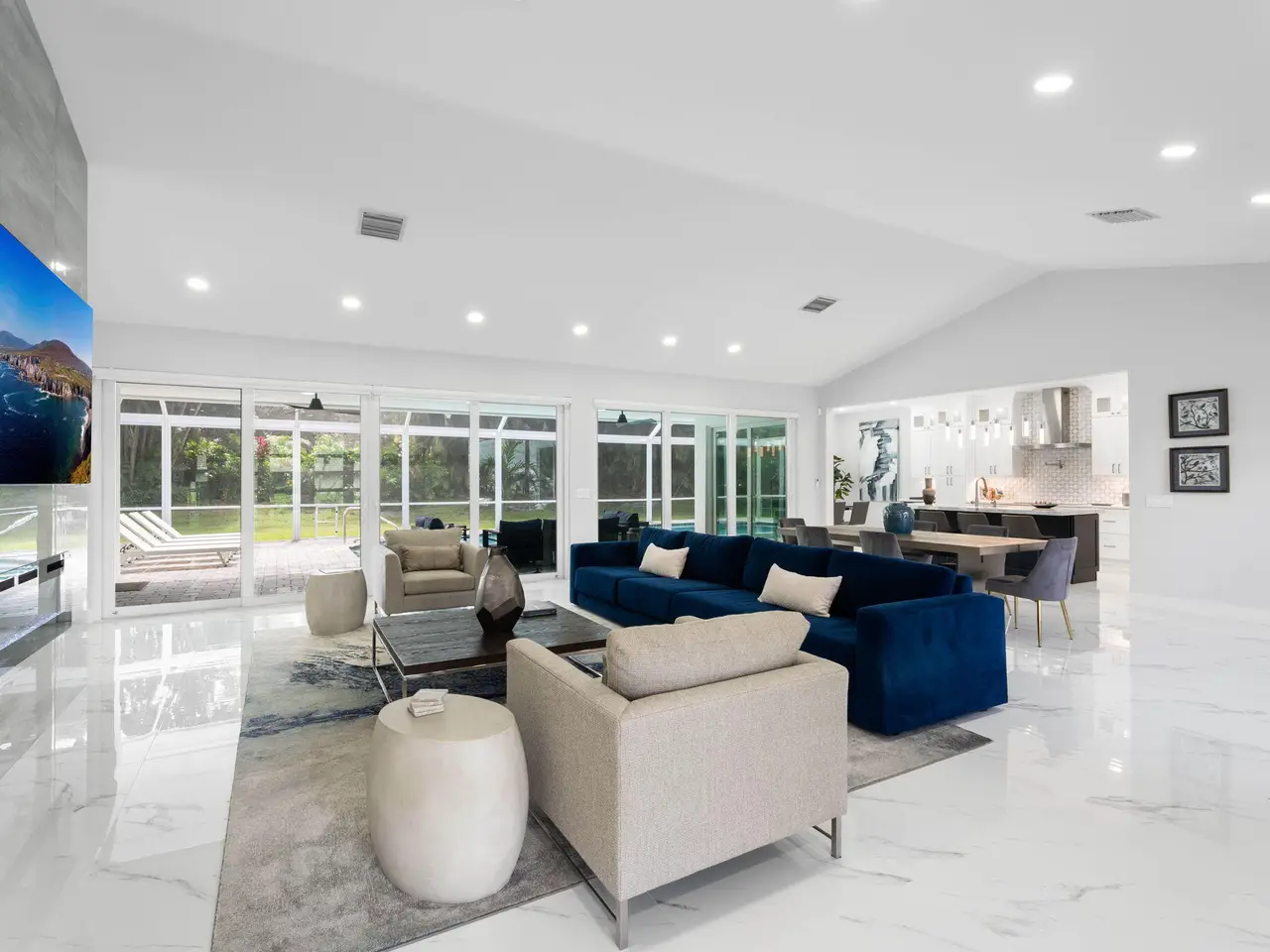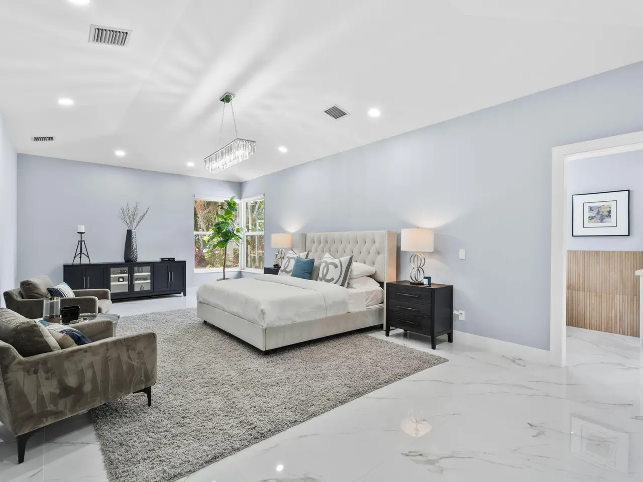 Masterfully modernized estate home in world-renowned PGA National. This stunning one-story CBS home spans over 3,800 sq. ft. of living space with 4 bedrooms & 4.5 baths. This residence features 2 large primary suites and a very private guest suite with its own entry & dry bar--perfect for in-laws or extended stays. Every detail has been upgraded: new roof, impact windows & doors, Lutron smart system, & imported porcelain floors from Spain throughout. The chef's kitchen includes double ovens, vented hood, standalone ice maker, & filtered water tap. All baths are newly redesigned with elegant finishes. Outside, enjoy a resurfaced pool, new heater, screen enclosure, & paver patio ideal for entertaining. This is your opportunity to live steps away from an internationally acclaimed golf resort.