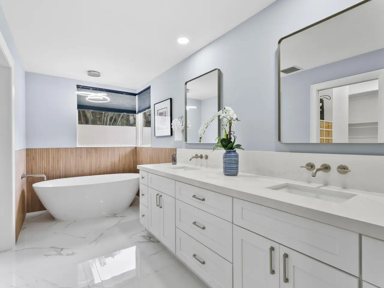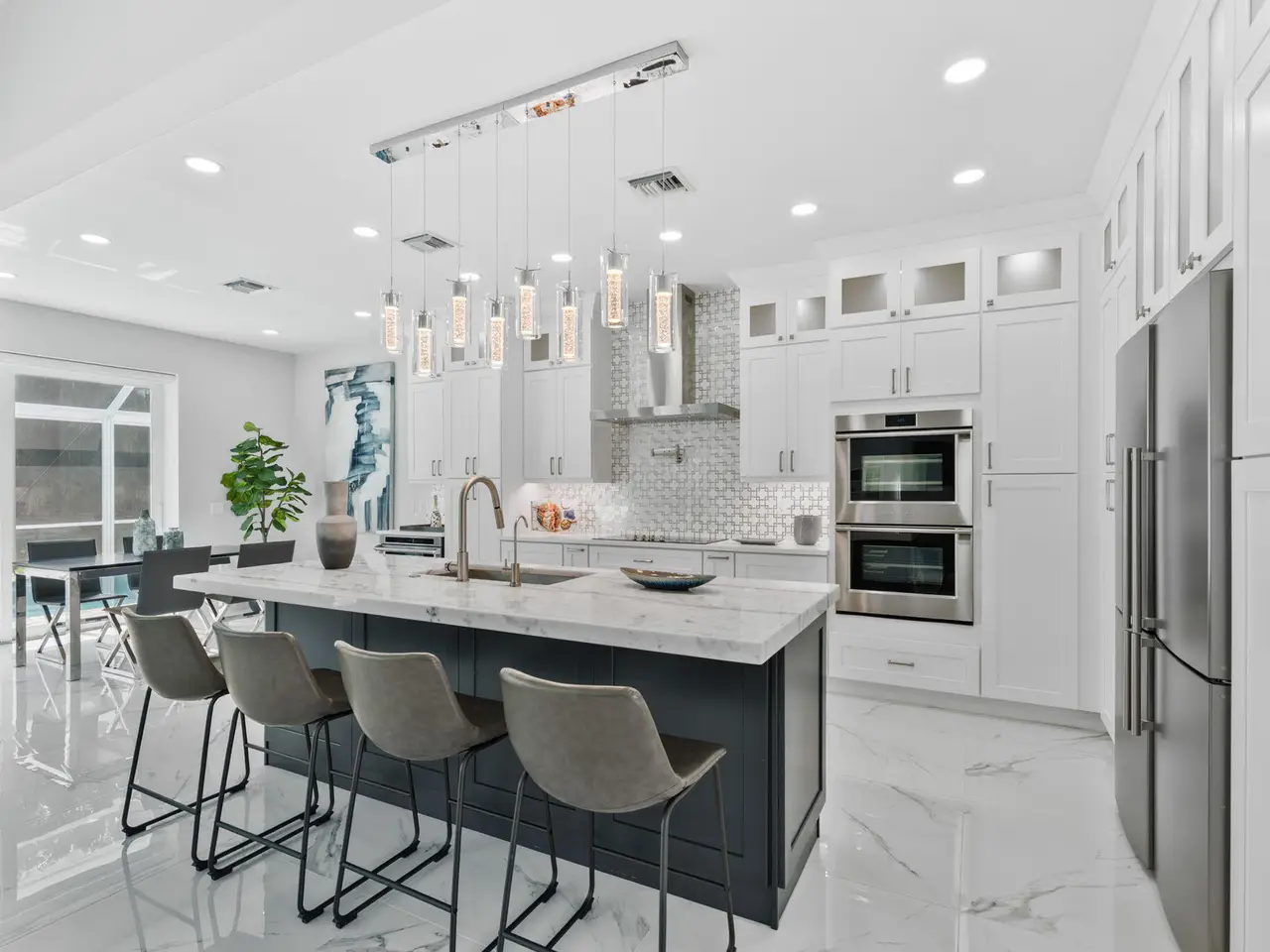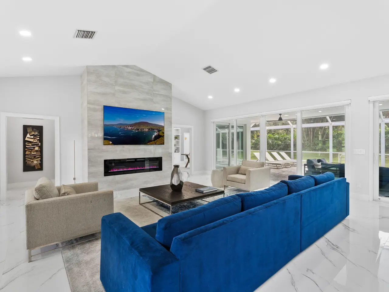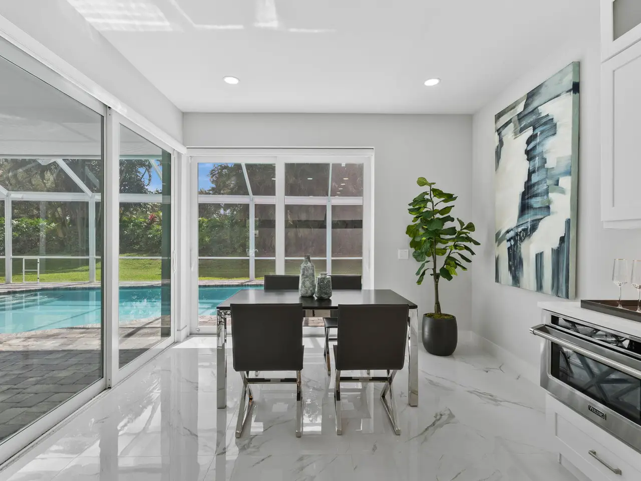 Masterfully modernized estate home in world-renowned PGA National. This stunning one-story CBS home spans over 3,800 sq. ft. of living space with 4 bedrooms & 4.5 baths. This residence features 2 large primary suites and a very private guest suite with its own entry & dry bar--perfect for in-laws or extended stays. Every detail has been upgraded: new roof, impact windows & doors, Lutron smart system, & imported porcelain floors from Spain throughout. The chef's kitchen includes double ovens, vented hood, standalone ice maker, & filtered water tap. All baths are newly redesigned with elegant finishes. Outside, enjoy a resurfaced pool, new heater, screen enclosure, & paver patio ideal for entertaining. This is your opportunity to live steps away from an internationally acclaimed golf resort.