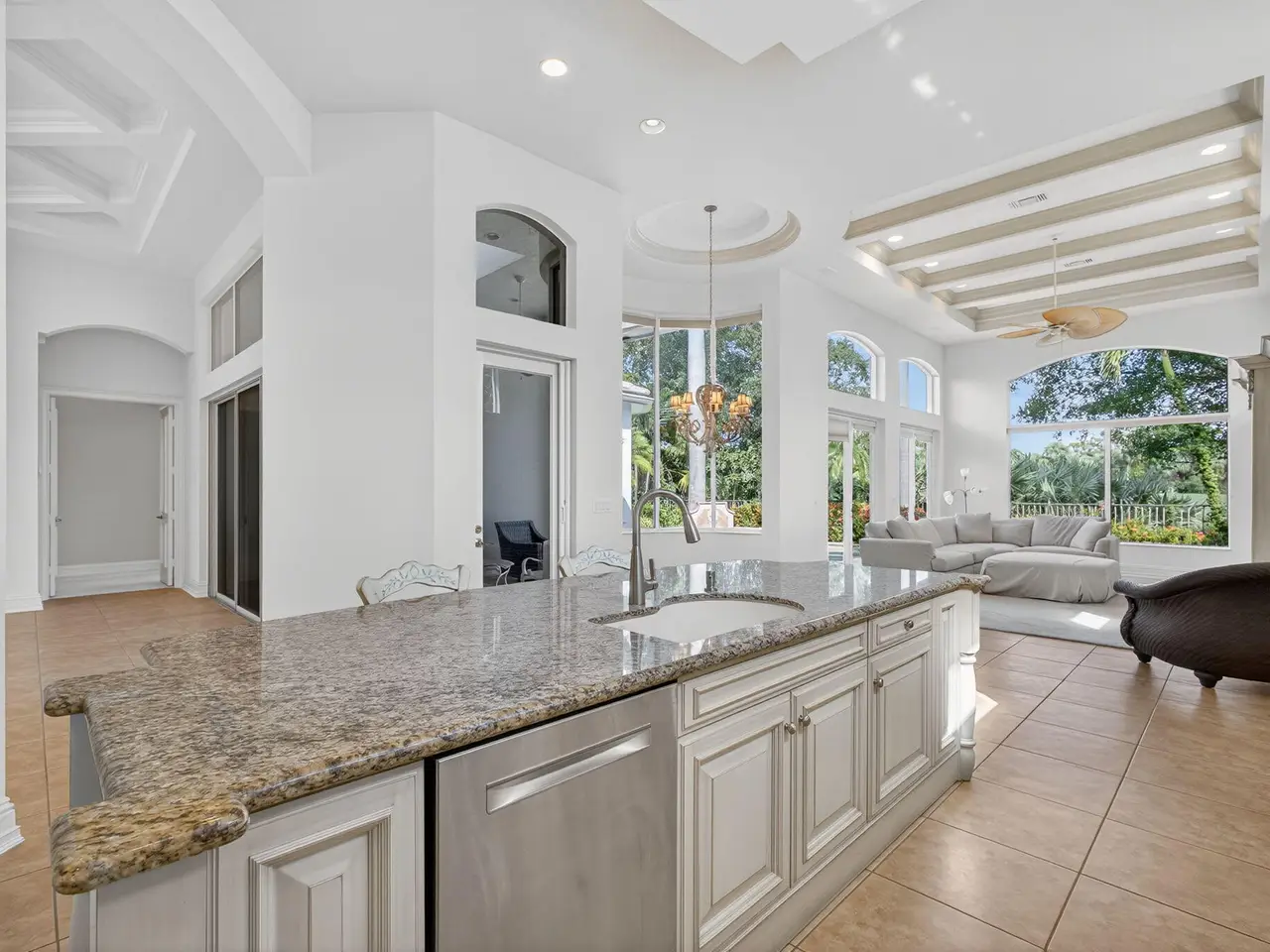 Golf, Luxury, Lifestyle - It All Comes Together Here. Situated in the highly desirable enclave of Via Paradiso, just a short stroll from The Country Club and all its world-class amenities, this stunning residence offers panoramic views of the 9th fairway on the Arthur Hills Sunset Course. The single-level Raphael floor plan is thoughtfully designed with 3 spacious bedroom suites plus a dedicated office, ideal for both relaxation and productivity. Soaring ceilings and an abundance of natural light greet you upon entry, showcasing elegant architectural details and an effortless flow throughout. The gourmet kitchen is a dream for entertainers, seamlessly connected to the butler's pantry, bar, and adjacent living and dining areas.