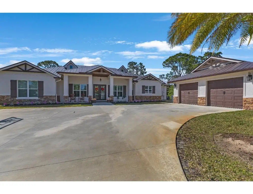 Welcome home! Discover this exceptional CBS residence in the highly sought-after Evergreen/Crane Watch neighborhood. This meticulously maintained property is situated on a 1-acre lot and was constructed in 2020. The home features 3 bedrooms, 2 1/2 bathrooms, an oversized detached 2-car garage, and a spacious flex room (19' x 10') suitable as a game room or 4th bedroom. Highlights include a metal roof, hurricane impact windows and doors, over 3,000 square feet of living space, and a custom pool with a built-in jacuzzi and rock waterfall. Additional amenities comprise a custom-built bar with a granite countertop and plantation shutters throughout.