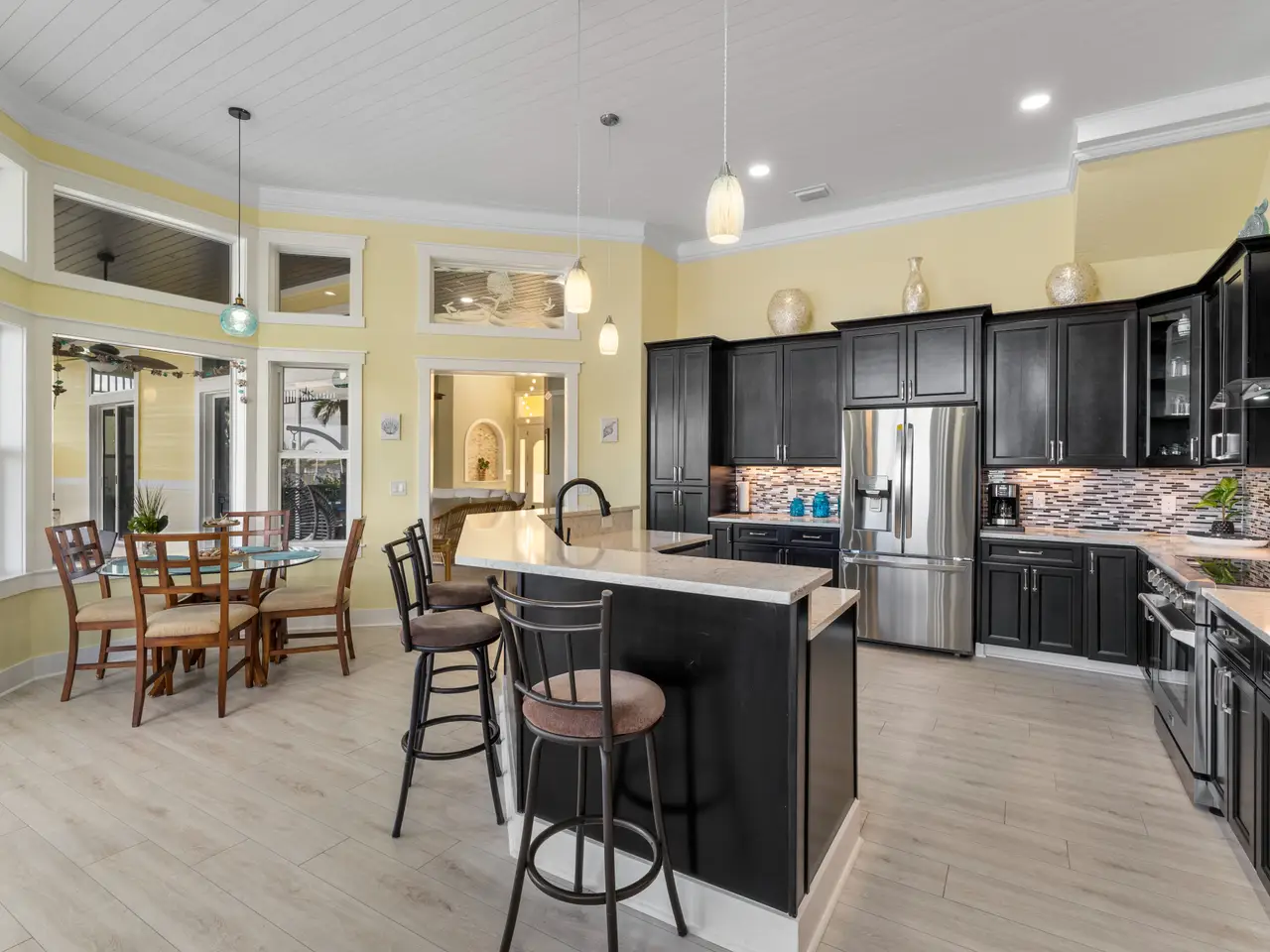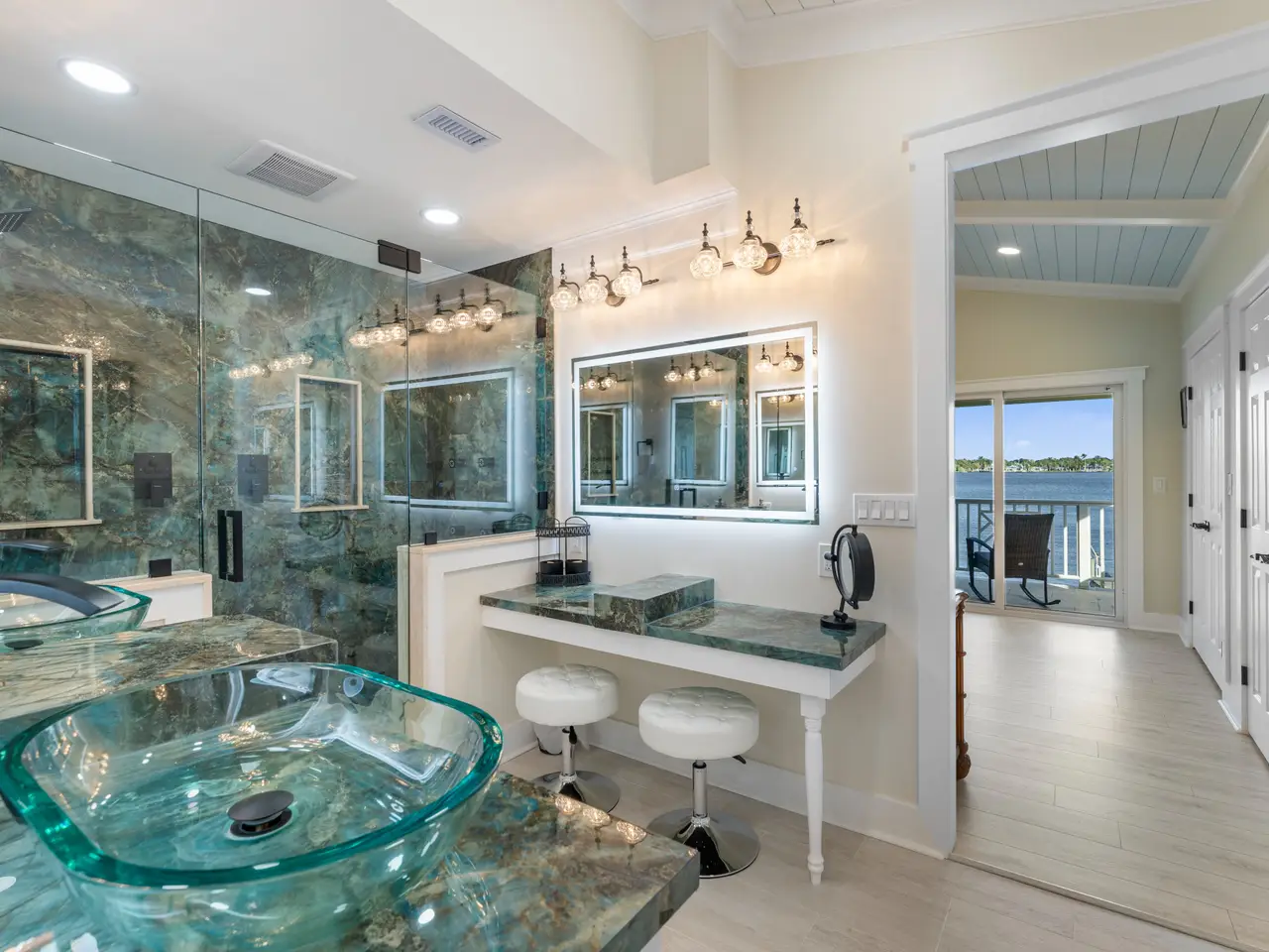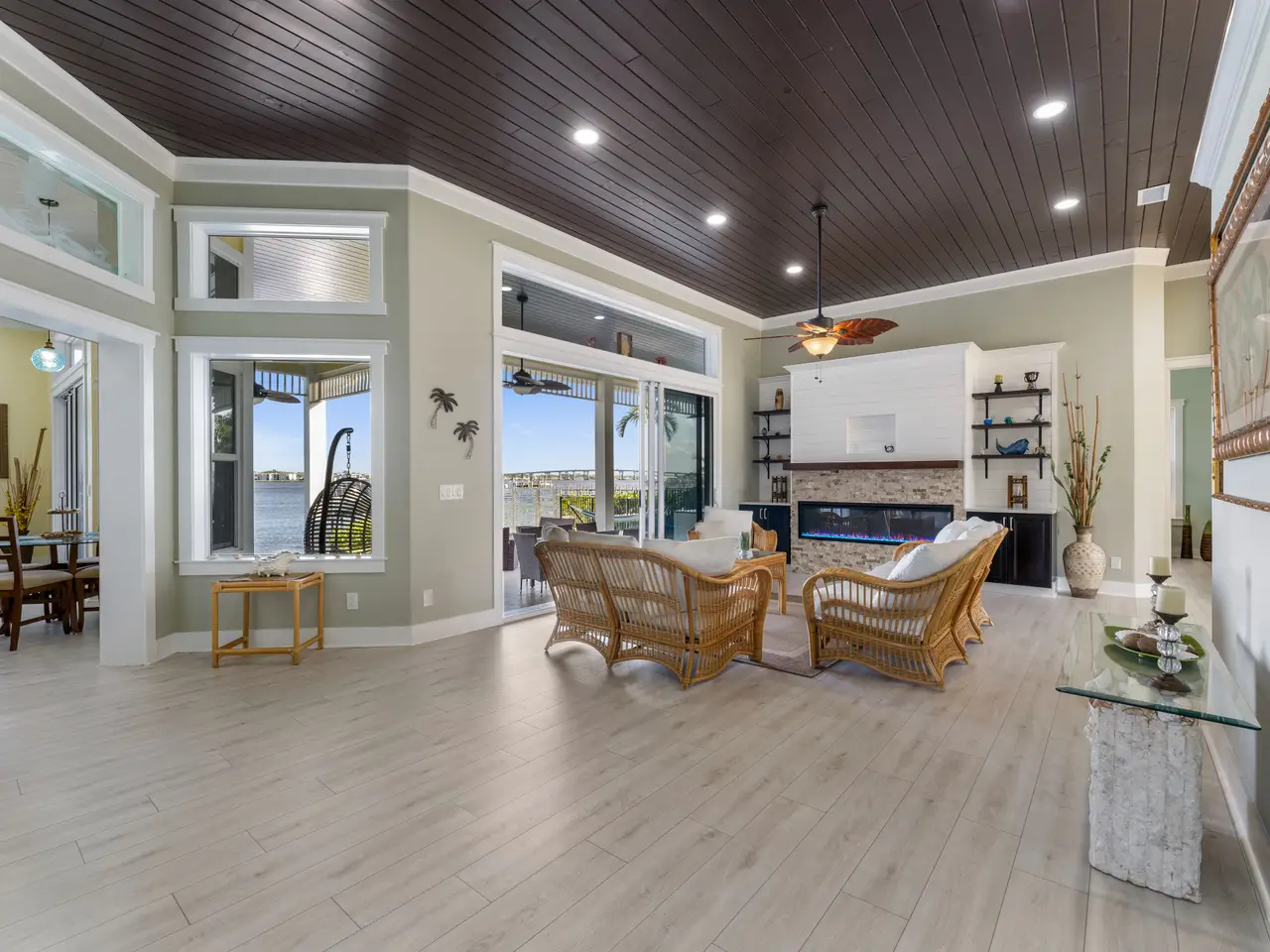 This waterfront pr?p?rty ?how???es an owner's e?c?ptional attention to detail at every turn. With breathtaking water views from every angle, the craftsmanship is evident in features such as lighted molding and tongue-and-groove ceilings. The upgraded kitchen and bathrooms further enhance the home's appeal. The house includes two master suites: one on the lower level with exceptional views and another upstairs featuring a bird's-eye view, as well as a private patio. The harmonious flow of extensive woodwork and thoughtfully chosen color palette will impress even the most discerning designers. The extended patio, complete with an outdoor kitchen, serves as the ultimate destination for family gatherings, seamlessly connecting to the kitchen and family room. Feature sheet attatched.
