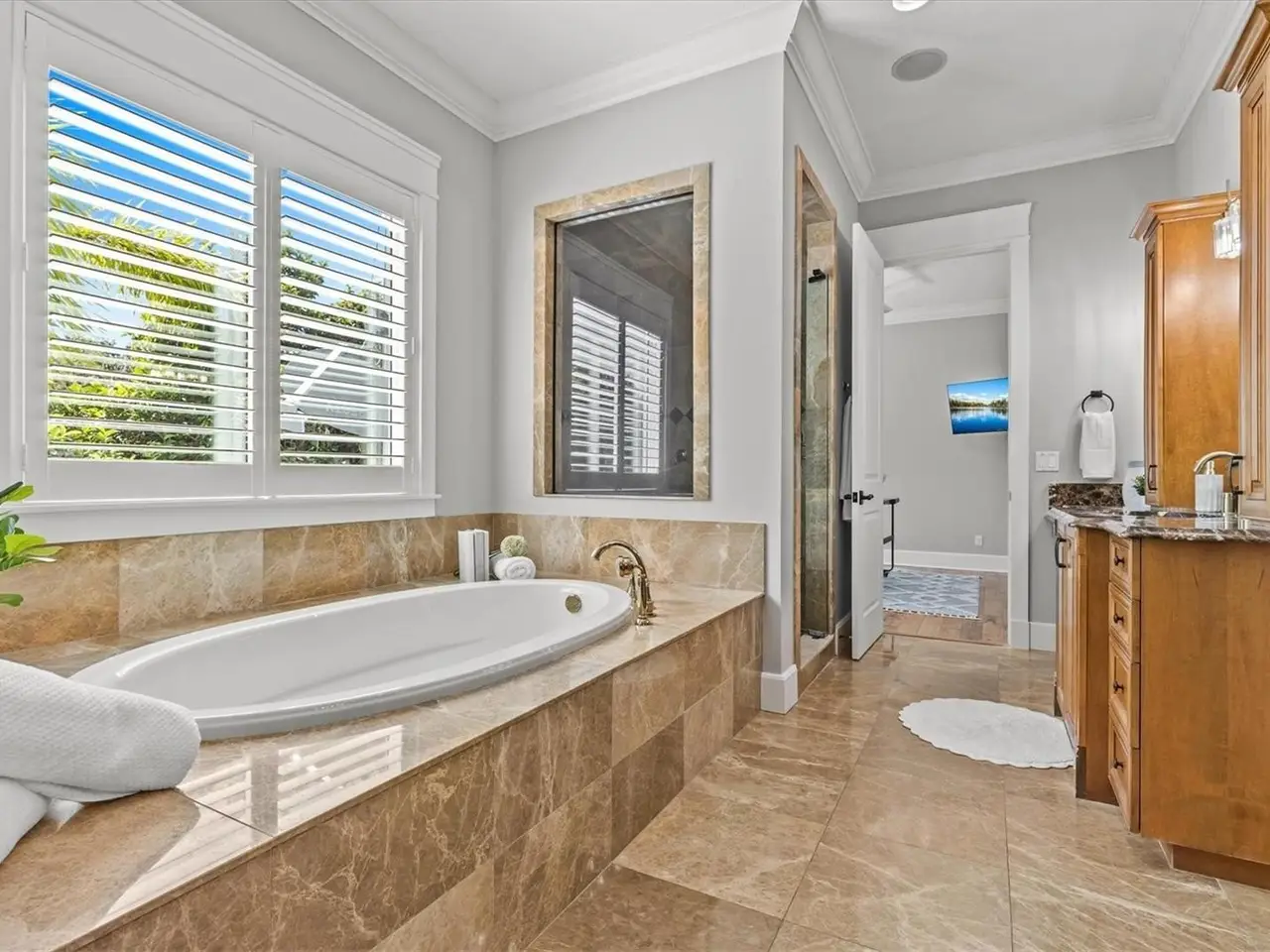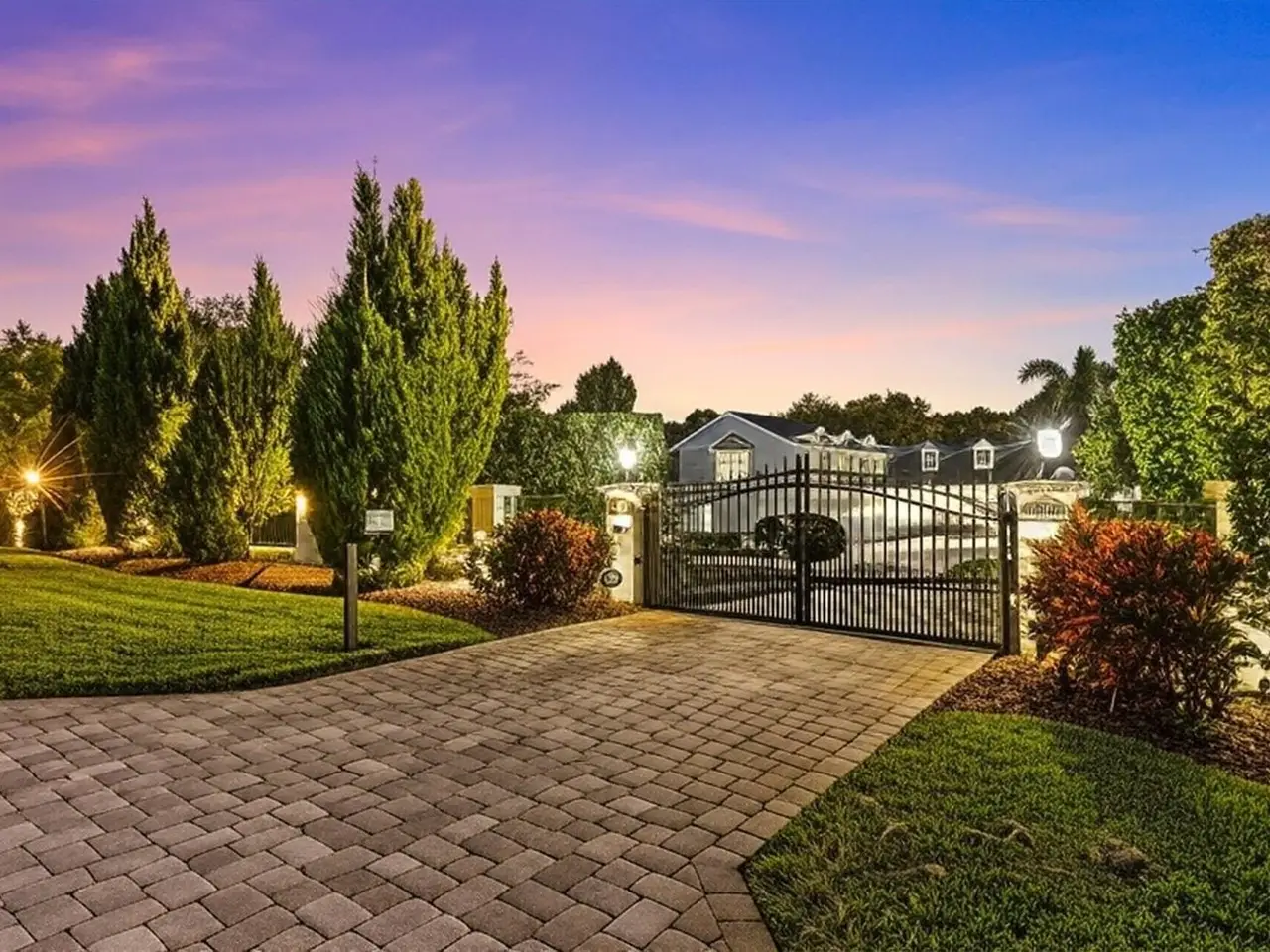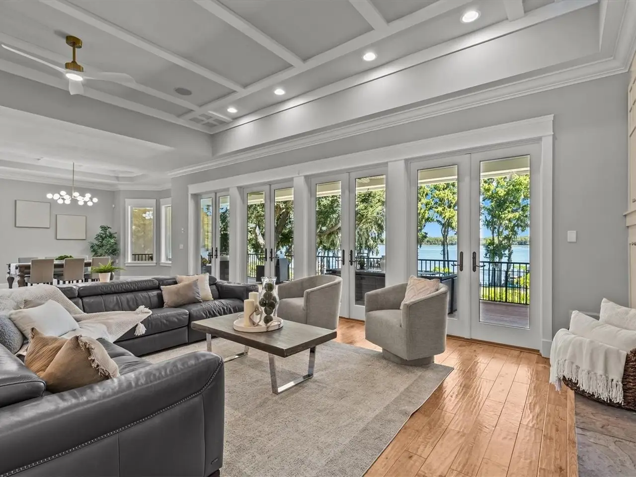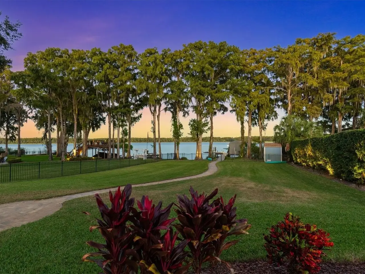 Inspired Waterfront Living on Lake Tarpon Discover this stunning 7,682 SF estate which includes a full guest apartment on nearly one acre offering breathtaking views of the 2,500-acre Lake Tarpon. Gated for privacy, it features a private dock with 10,000-lb boat lift for sunset cruises, fishing, or kayaking, all with no HOA fees or flood insurance required. Nestled in the prestigious Palm Harbor University school zone, this move-in-ready haven combines serene lakefront allure with sophisticated luxury for discerning buyers. Over $400K invested in a "backyard nirvana" by acclaimed designer Ryan Hughes creates an unparalleled outdoor oasis: resort-style pool with ledge loungers, glistening tiled infinity-edge spa, sunken fire lounge, charming pergola, cozy moon daybed for stargazing, and dramatic custom lighting blending light, water, and fire across travertine decking amid stately grandfather oaks and vibrant tropical landscaping. The extensive covered lanai seamlessly connects to indoor spaces, ideal for gatherings, while the open floor plan greets with immediate lake views through walls of glass in the expansive family room, accented by a fireplace and decorative tray ceiling. Inside, the chef's kitchen shines with quartzite island and granite countertops, custom cabinetry, Wolf commercial gas range, SubZero appliances, double ovens, walk-in pantry, and casual dining. The main-level owner's retreat boasts a beamed vaulted ceiling, serene lake views, dual closets, and spa bath with jetted tub and shower. Lower-level entertainment includes a bonus room with full wet bar, home theater, home gym, extra storage, three bedrooms, two baths, new tile, 2nd laundry room and lots of storage—plus a separate in-law suite with full kitchen, living/dining, and laundry. Recent updates feature a brand-new roof (2025), five AC units replaced since 2019, 3 tankless water heaters, whole-home water softener/filtration, fresh paint, extended driveway, Generator, dedicated podcast room, and tech-savvy amenities like WiFi 6, Sonos audio, Mohen AI leak detection, integrated security, and smart locks. Accessed via gated cobblestone entry to a spacious motor court and Trex-decked porch, this unmatched property redefines waterfront sophistication.