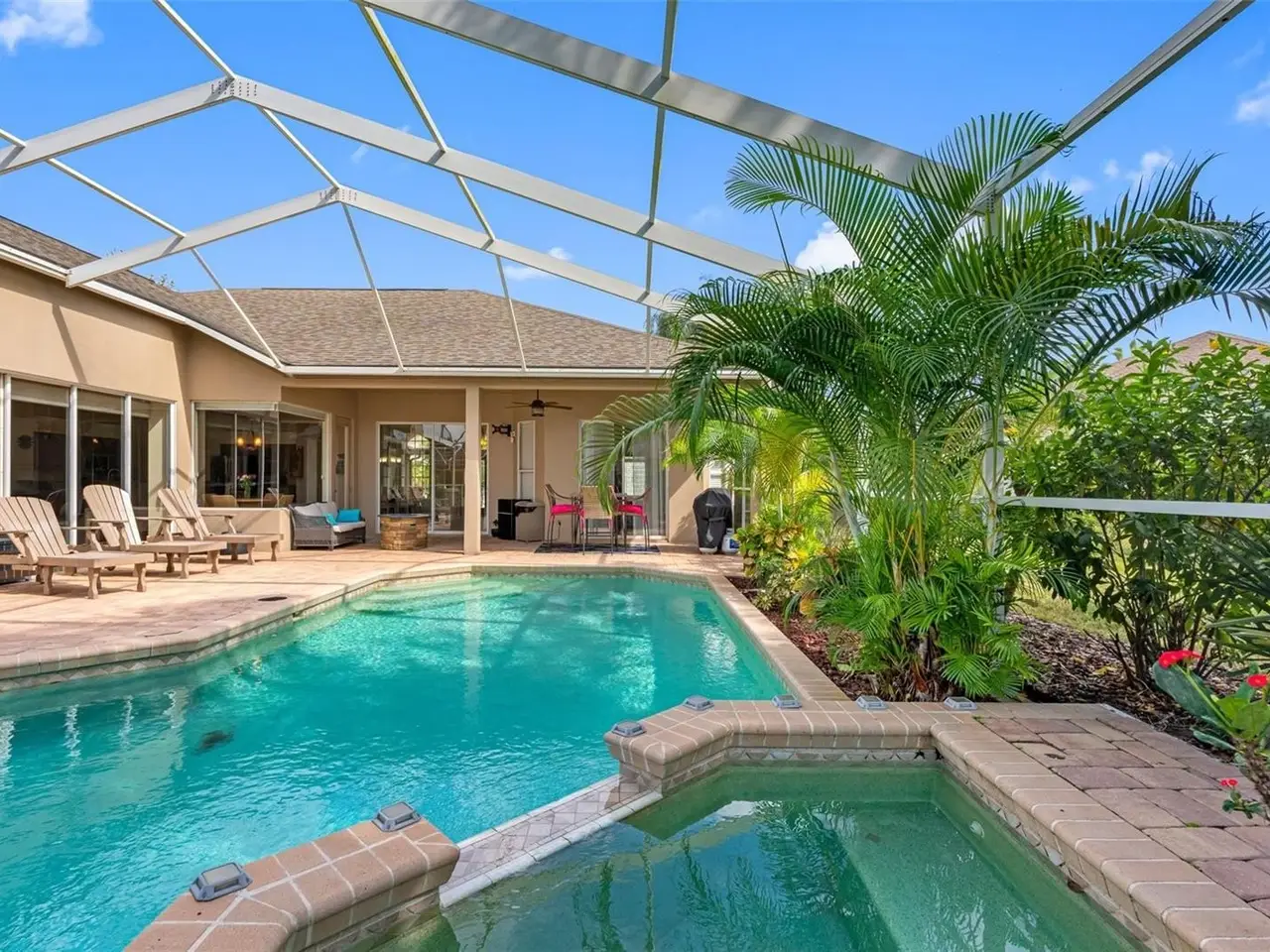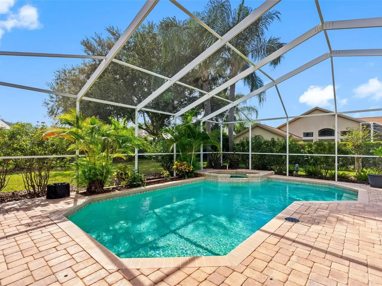 Welcome to Robinwood at Lansbrook. Room for the entire family with 5 bedrooms plus the perfect work at home office overlooking pool and back yard. 3 full baths, a 3-car garage, huge yard and amazing pool and spa. Upon entering you’ll observe double leaded glass doors leading to the living room featuring a tray ceiling, crown molding, and glass sliders that show off the screened pool, spa, pavered pool deck. Passing the formal dining room the home opens up to the family room and dream kitchen equipped with KitchenAid stainless steel appliances, wood cabinets, and granite countertops. The Primary suite features glass slider to the pool, walk-in closets, and a full en-suite bathroom with a walk-in shower, garden tub, and dual vanities. Tasteful updates have been completed in all three bathrooms. The oversized inside laundry room offers plenty of cabinet space and a utility sink. Current updates include an NEW A/C unit (2024), water heater (2018), roof (2020), house paint (2020), pool Salt System (2022), pool pump (2023) , gas heater for the hot tub (2022), pool resurfacing (2012). The community offers residents access to day docks for boating on Lake Tarpon, a lakeside park, play area, and a gazebo with picnic tables, soccer field and basketball courts. Close to shopping, Brooker Creek Preserve, YMCA, golf courses, and John Chesnut State Park. Zoned for top-rated schools, including two elementary schools, East Lake High School, and East Lake Middle School Academy of Engineering