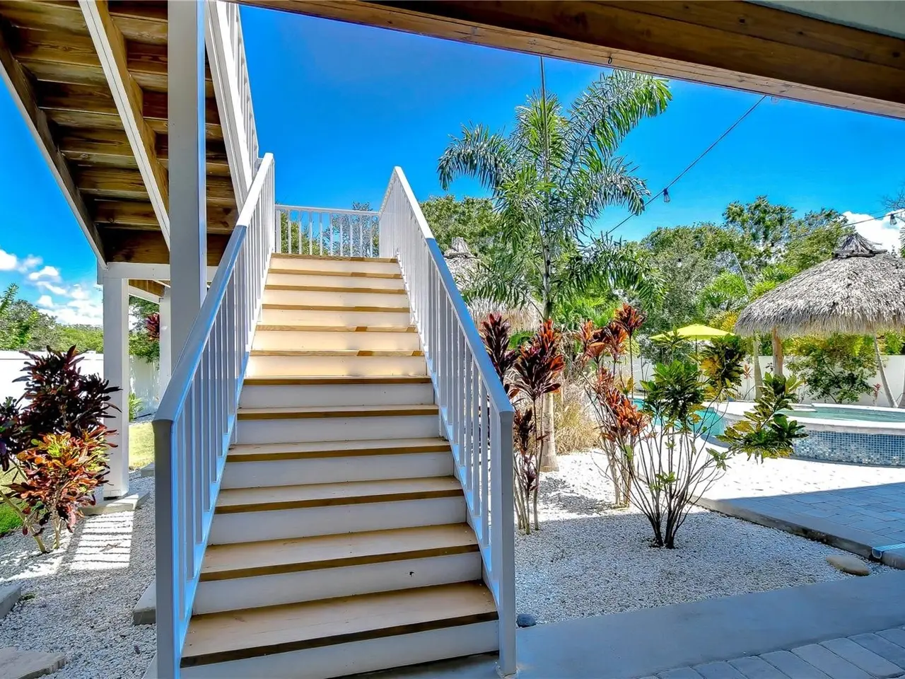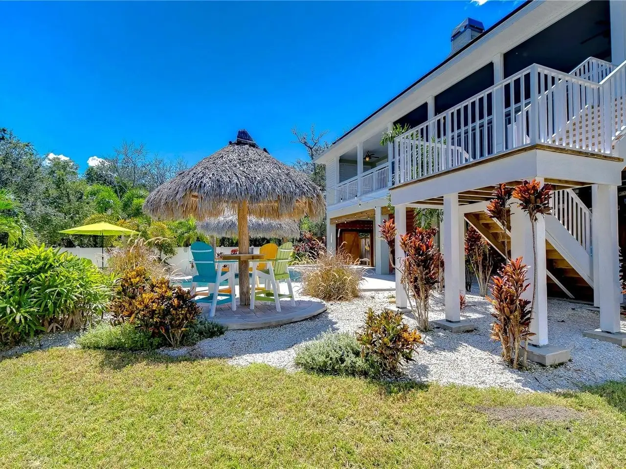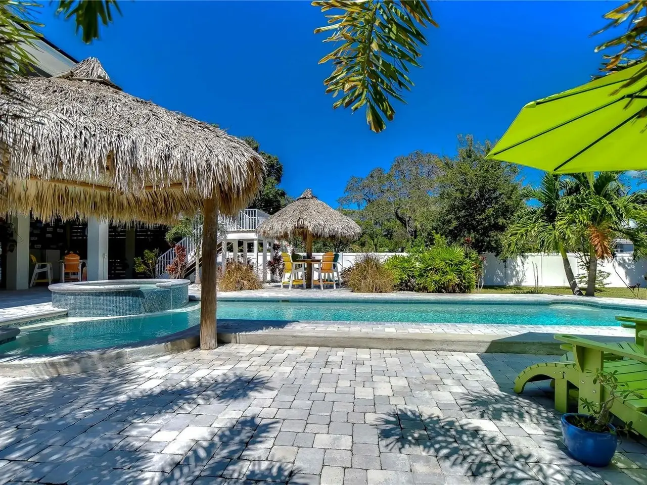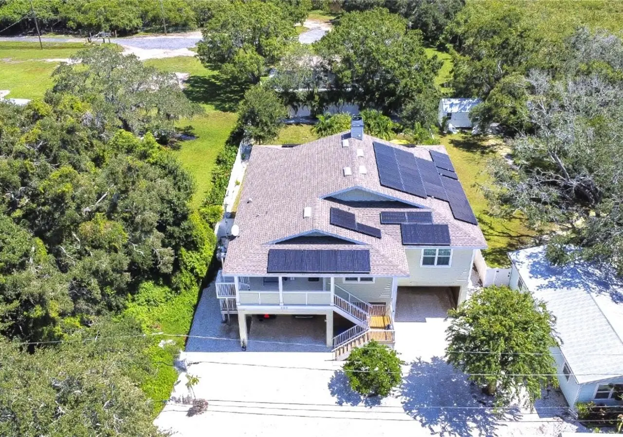 Experience upscale Coastal living in this elevated home...where meticulous construction meets comfortable luxury. Designed to embrace the Florida lifestyle inside and out, this wonderful property offers so much to enjoy. From a Breezy, light and bright interior to a tropical oasis backyard, it was Custom designed and built in 2016 with impeccable attention to detail and fortified for strength. This private stilt home offers both casually luxurious living and peace of mind. It proudly sits 17 feet above sea level on a private .32 acre lot and was constructed to rigorous FEMA standards. Crafted for resilience and eco-conscious living, the home features Hurricane-rated impact windows and doors, 55 solar panels that keep electric bills to an astonishing $30 per month, 140-gallon propane tank powering on-demand hot water, a grill, and generator connections, and all of the under home lumber is desirable "saltwater splash" dock grade, and pilings, headers, footers are concrete. Inside you will discover a space that wows with high quality and uniquely designed finishes.. custom shiplap walls, barn door accents, soaring vaulted ceilings with dimmable LED lighting and fans, and plantation shutters throughout. The floorplan is fun and functional and just right for everyday living or entertaining. Enjoy generous bedrooms, laundry utility room, and walk in pantry. Sliders from Living Room and primary bedroom open to an amazing screened in patio overlooking the backyard. 1000lb exterior elevator lift, 240 sqft of under home storage and under house/carport parking for up to 8 vehicles! And the Backyard...will truly take your breath away! It is private oasis that would make Jimmy Buffett proud! Showcasing a 2020 heated and cooled sparkling saltwater pool complete with spillover spa a shaded grotto seating, two locally designed and hand crafted tiki huts, and over 1,500 square feet of pavered patio space, and just under 2000 square feet of covered patio space for shady lounging and outdoor living, a whole house mosquito misting system and a retro fabulous custom outdoor surfboard and cypress lined shower. Your guests will never want to leave! Ozona is a unique community with coastal charm, 5 marinas, restaurants that are loved, and a waterfront with the most beautiful sunsets! Ride your bike or drive your golf cart all around town! This area is in unincorporated Pinellas -- possible short term rental and available fully furnished! Come make 262 Banana Road your Coastal Paradise! View matterport and virtual tour at https://my.matterport.com/show/?m=t4Nu3C1amJL&mls=1