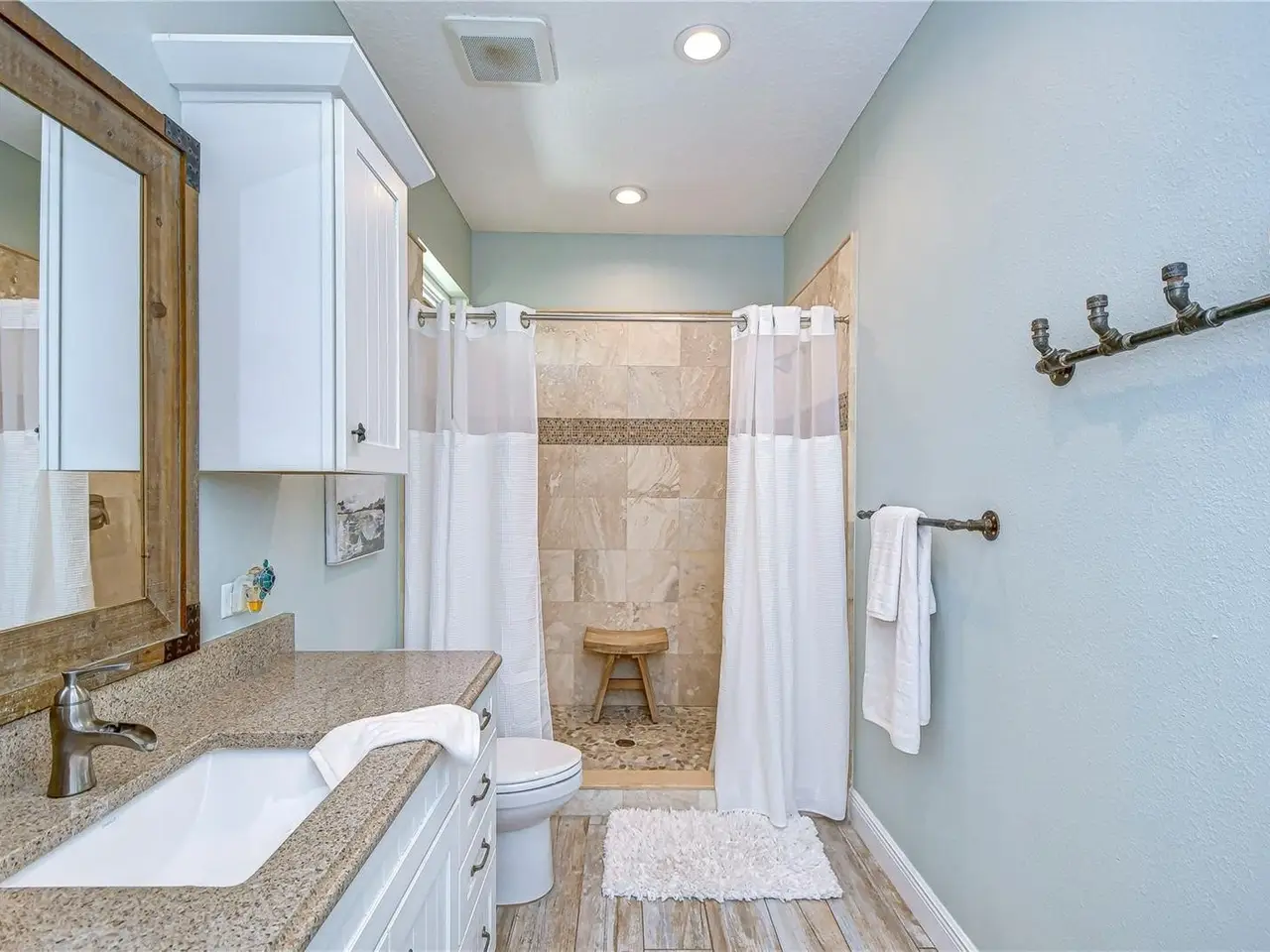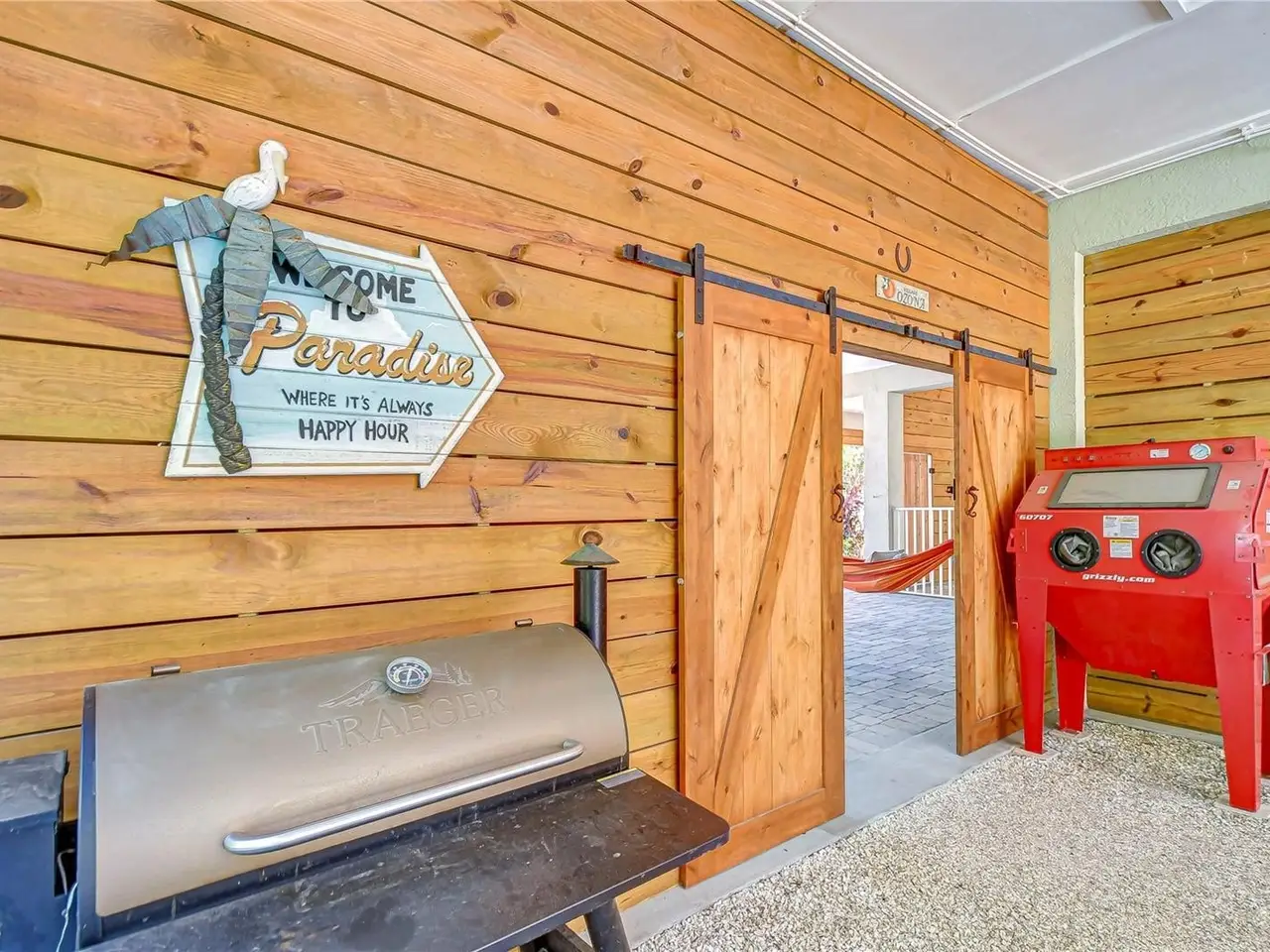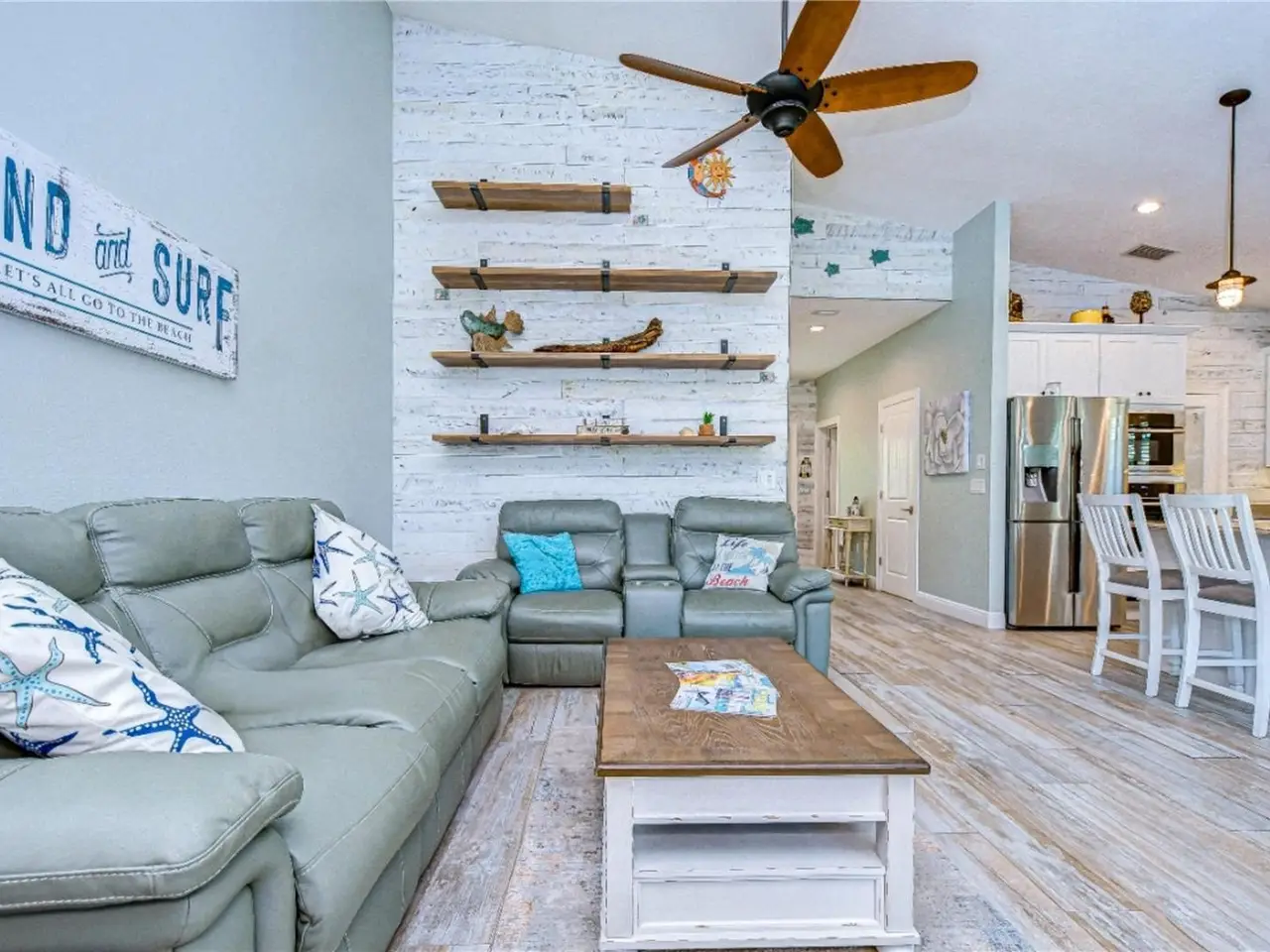 Experience upscale Coastal living in this elevated home...where meticulous construction meets comfortable luxury. Designed to embrace the Florida lifestyle inside and out, this wonderful property offers so much to enjoy. From a Breezy, light and bright interior to a tropical oasis backyard, it was Custom designed and built in 2016 with impeccable attention to detail and fortified for strength. This private stilt home offers both casually luxurious living and peace of mind. It proudly sits 17 feet above sea level on a private .32 acre lot and was constructed to rigorous FEMA standards. Crafted for resilience and eco-conscious living, the home features Hurricane-rated impact windows and doors, 55 solar panels that keep electric bills to an astonishing $30 per month, 140-gallon propane tank powering on-demand hot water, a grill, and generator connections, and all of the under home lumber is desirable "saltwater splash" dock grade, and pilings, headers, footers are concrete. Inside you will discover a space that wows with high quality and uniquely designed finishes.. custom shiplap walls, barn door accents, soaring vaulted ceilings with dimmable LED lighting and fans, and plantation shutters throughout. The floorplan is fun and functional and just right for everyday living or entertaining. Enjoy generous bedrooms, laundry utility room, and walk in pantry. Sliders from Living Room and primary bedroom open to an amazing screened in patio overlooking the backyard. 1000lb exterior elevator lift, 240 sqft of under home storage and under house/carport parking for up to 8 vehicles! And the Backyard...will truly take your breath away! It is private oasis that would make Jimmy Buffett proud! Showcasing a 2020 heated and cooled sparkling saltwater pool complete with spillover spa a shaded grotto seating, two locally designed and hand crafted tiki huts, and over 1,500 square feet of pavered patio space, and just under 2000 square feet of covered patio space for shady lounging and outdoor living, a whole house mosquito misting system and a retro fabulous custom outdoor surfboard and cypress lined shower. Your guests will never want to leave! Ozona is a unique community with coastal charm, 5 marinas, restaurants that are loved, and a waterfront with the most beautiful sunsets! Ride your bike or drive your golf cart all around town! This area is in unincorporated Pinellas -- possible short term rental and available fully furnished! Come make 262 Banana Road your Coastal Paradise! View matterport and virtual tour at https://my.matterport.com/show/?m=t4Nu3C1amJL&mls=1