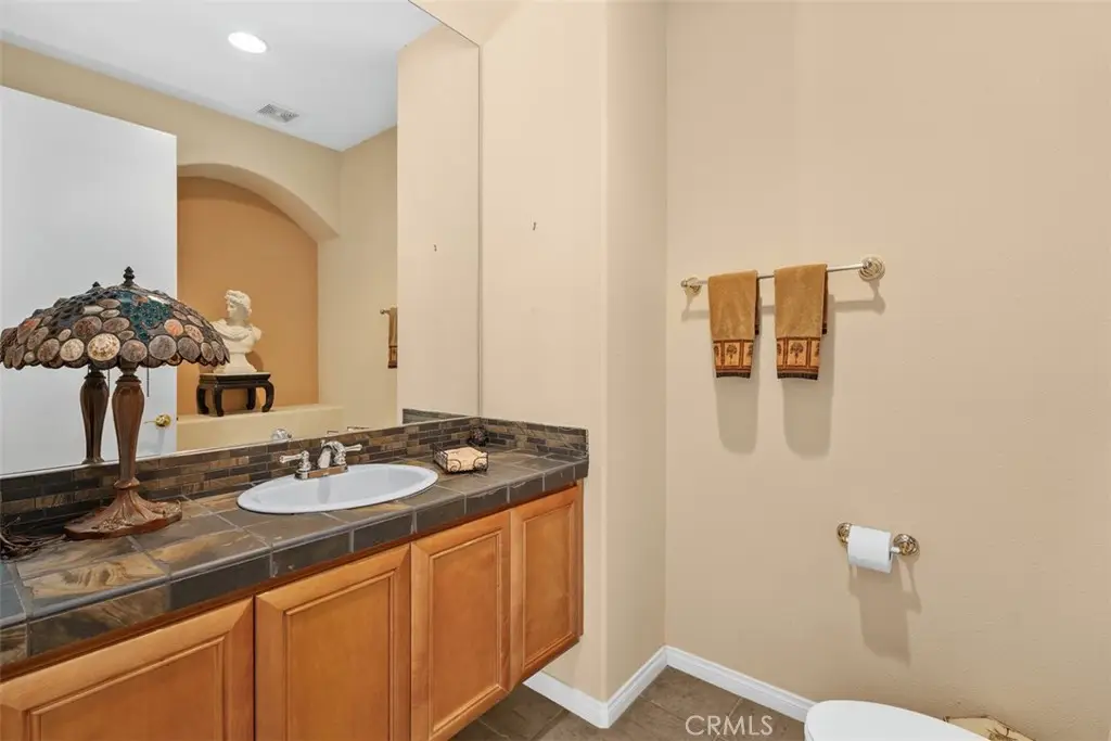 Stunning Single-Story Pool Home with Panoramic Mountain Views in the exclusive and private enclave of The Colony at El Mirador. This spacious and beautifully designed single-story residence offers 3 bedrooms plus a den (optional 4th bedroom) and a 3-car attached garage, blending luxury and comfort in every detail. As you enter the property, you'll be captivated by the sparkling pool with a cascading waterfall spa, creating a tranquil and inviting retreat. Inside, the open-concept floor plan features stone-like tile flooring throughout most of the home, high-volume ceilings, and recessed lighting that enhance the light and airy ambiance. The gourmet kitchen is a chef's delight, boasting a large island with a 5-burner gas cooktop, abundant cabinetry, a breakfast bar, and a charming kitchen nook that opens to the side yard--perfect for morning coffee or al fresco dining. The family room offers a cozy fireplace and ceiling fan, while the formal dining room opens to a beautifully landscaped backyard with a covered patio and BBQ area, ideal for entertaining. The living room is truly spectacular, highlighted by a second fireplace and expansive windows. The den (or 4th bedroom) features direct access to the pool, making it a perfect office, guest suite, or relaxation space. Two secondary bedrooms each feature en-suite bathrooms, plus there's a stylish powder room for guests. The primary suite is a true retreat, offering a ceiling fan, huge walk-in closet with built-ins, and a luxurious bathroom complete with a soaking tub, walk-in shower, and double vanity. Wonderful home for entertaining or just relaxing.