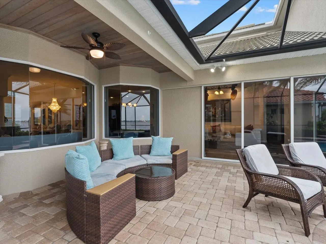 Welcome to Riviera Dunes, one of Southwest Florida’s premier boating communities and home to the region’s safest deep-water harbor. Perfectly positioned along the peaceful Manatee River, this neighborhood offers direct access to the Gulf in just 10 minutes. Included with this residence is a deeded marina slip that accommodates vessels up to 44’, Tucked behind the private gates, the home greets you with lush landscaping and a welcoming entryway. Inside, you’ll find an updated interior with luxury vinyl plank flooring that flows effortlessly through the living and entertaining spaces. The open kitchen is beautifully appointed with stainless steel appliances and connects seamlessly to the family and dining areas, making gatherings a breeze. Designed with flexibility in mind, the home features two full master suites and two additional guest bedrooms. The upstairs master is a true retreat complete with a walkthrough closet, coffee bar with sink, luxurious spa-style bathroom, and a tranquil balcony where you can sip your morning coffee while watching marine life below. Perfect for entertaining, the expansive sliding atrium doors disappear to create a seamless connection between indoors and outdoor spaces. Step outside to your sparkling heated pool and fully equipped summer kitchen—ideal for year-round Florida living. Additional highlights include a three-car garage, whole home water filtration system and a new AC unit. Enjoy access to outstanding community amenities, including a clubhouse, fitness center, tennis, pool, and an active pickleball community. This is more than a home—it’s a lifestyle. Welcome to your private waterfront retreat in Riviera Dunes.