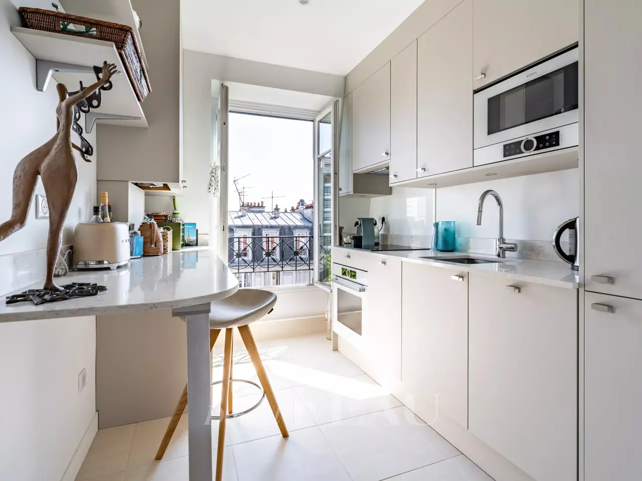 Alesia neighbourhood. This entirely renovated 81 sqm apartment is on the 6th and top floor of a luxurious late 19th century building. Bright and enjoying open views, it includes a living/reception room with a fireplace, a separate kitchen, two bedrooms, a bathroom and a separate wc. With a cellar.