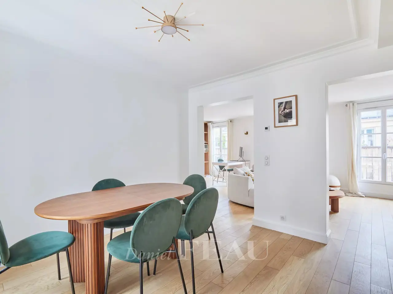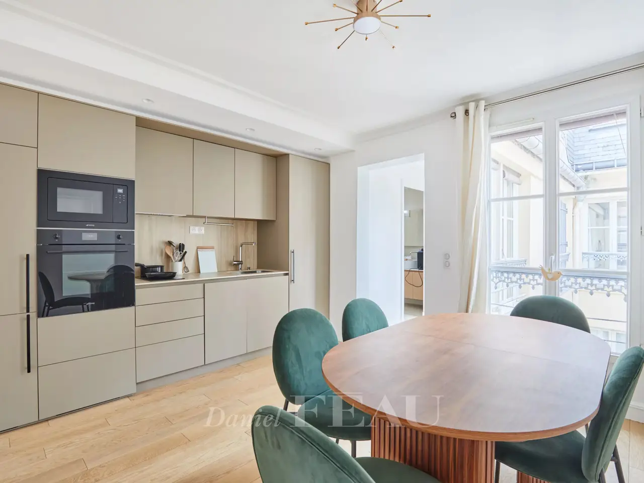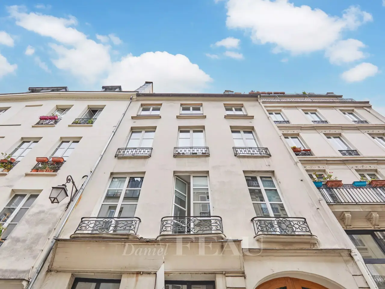 Etienne Marcel/Montorgeuil neighbourhood. This bright and peaceful 62 sqm apartment is on the 5th floor of a fine early 20th century building with a lift and very well-maintained common areas. Air conditioned, it includes a spacious living/reception room with three wide floor-to-ceiling windows opening onto a continuous balcony, a dining room with an open-plan kitchen, a bedroom overlooking a courtyard, a shower room and a wc. A second bedroom would be possible. With a cellar.
