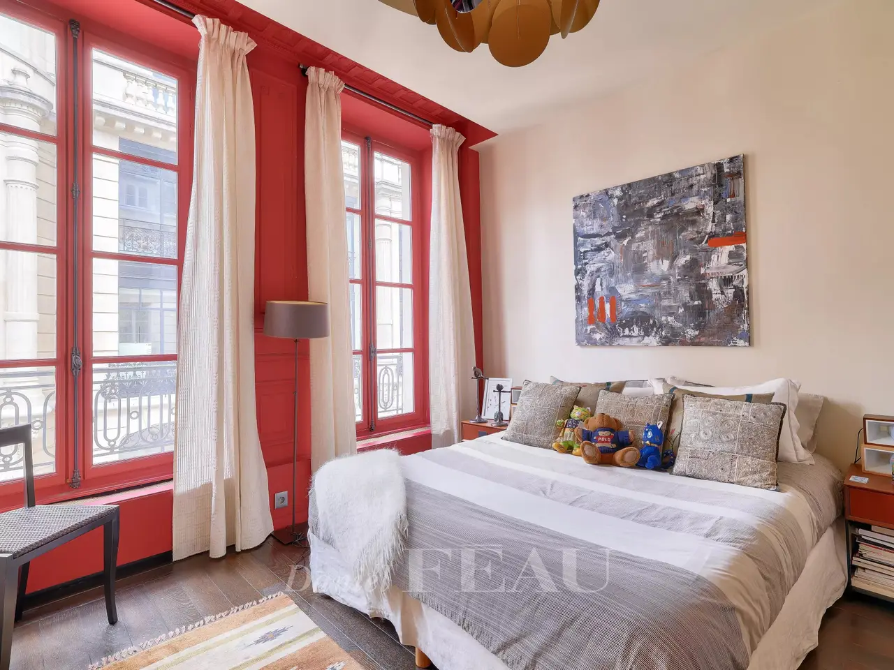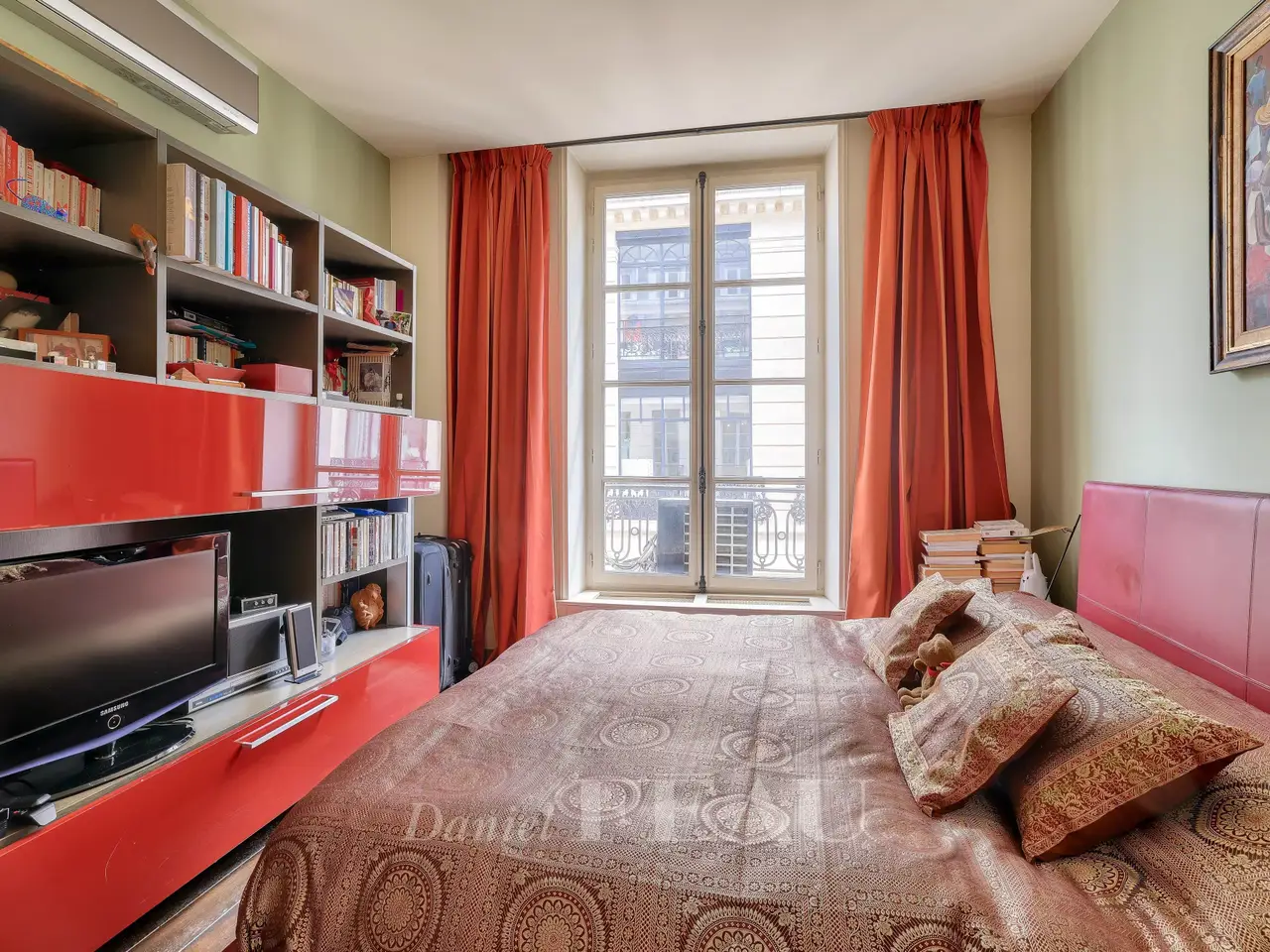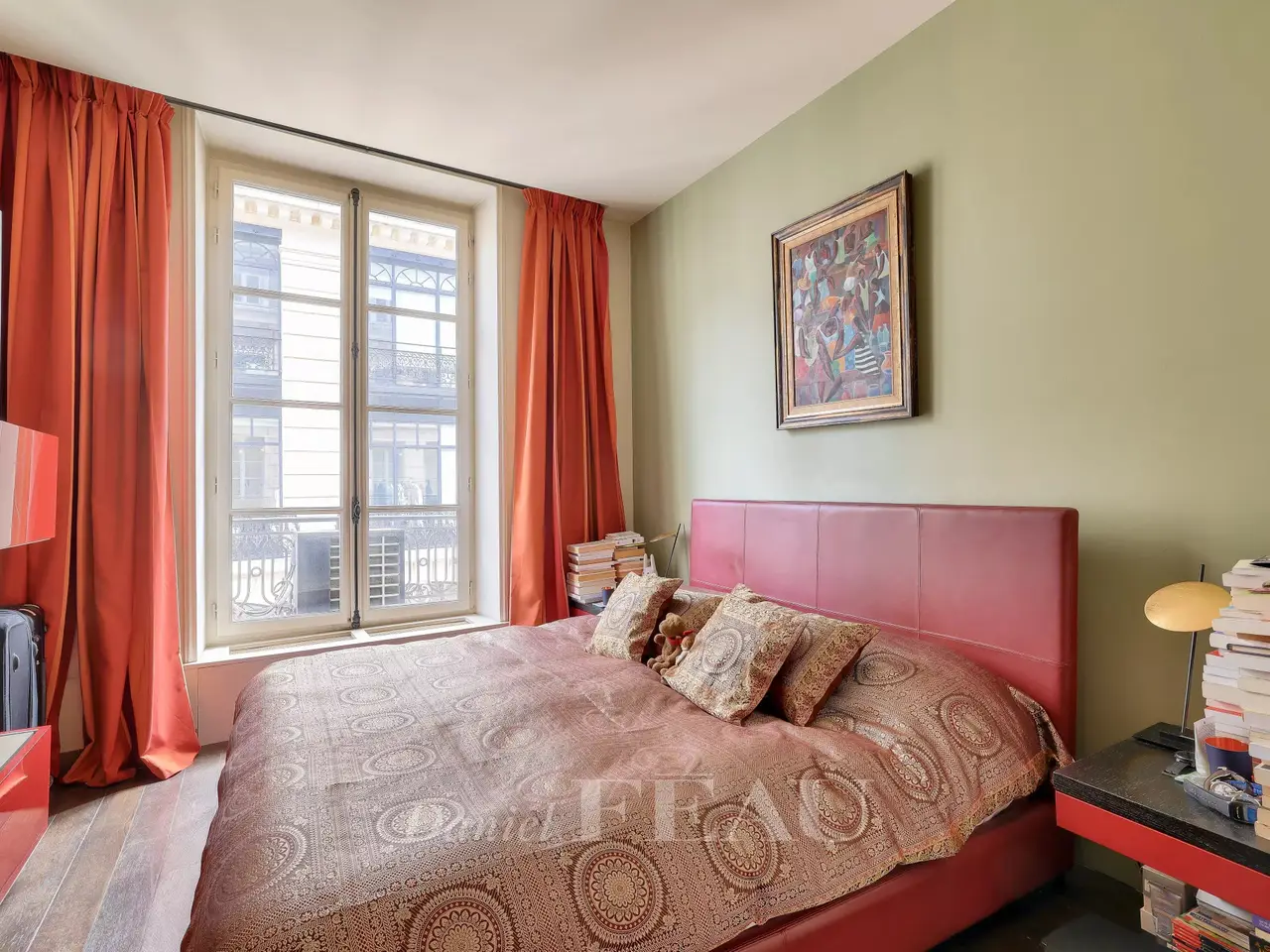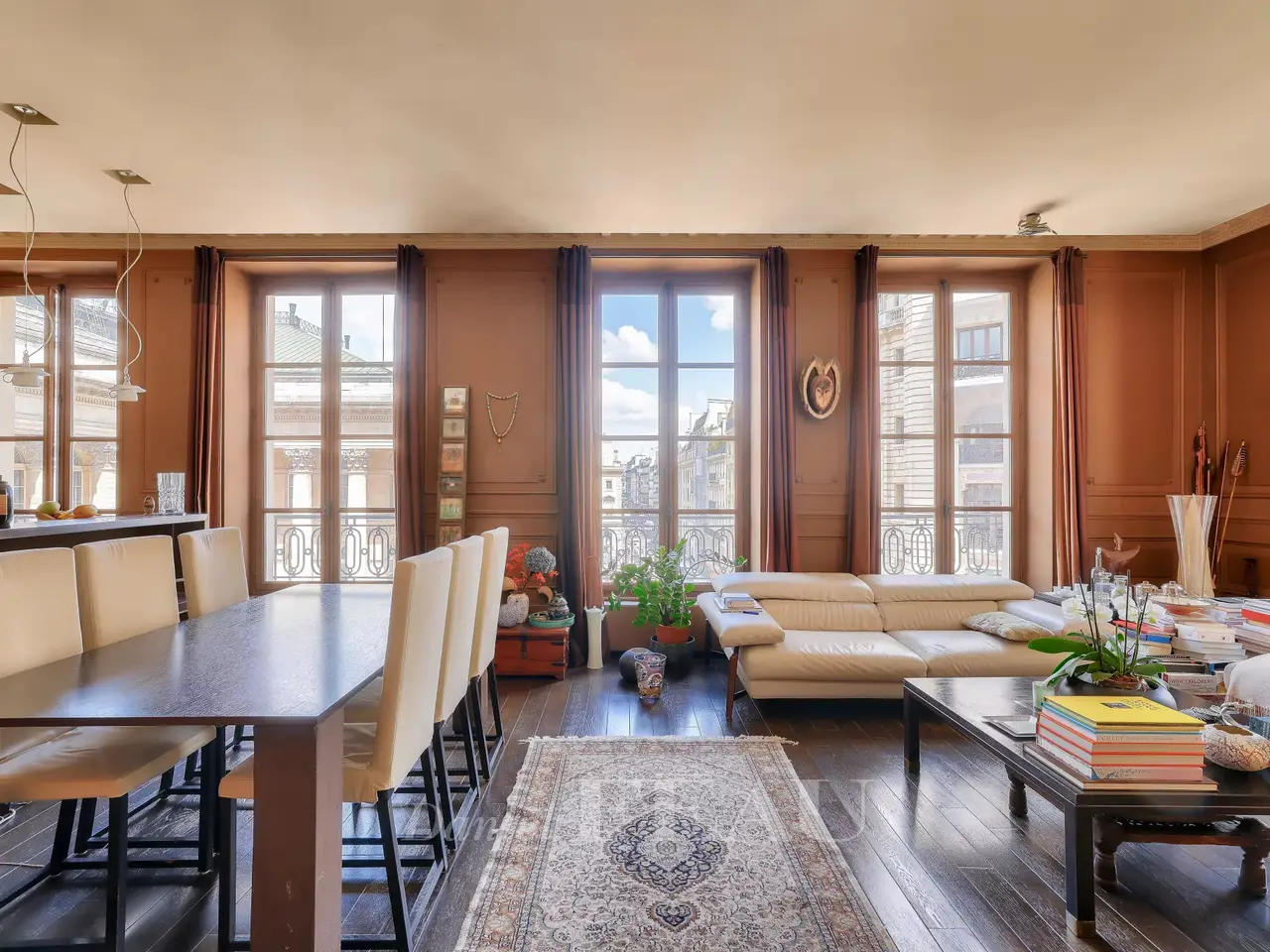 Rue Notre-Dame des Victoires. This apartment enjoying an open view of Place de la Bourse is on the 3rd floor of a luxurious mid 19th century co-ownership with a caretaker. Offering 95.46 sqm of floor space and 92.13 sqm of living space as defined by the Carrez Law, it includes an entry with fitted storage space, a superb living/reception room bathed in sunshine thanks to six floor-to-ceiling windows, a fitted and equipped open-plan kitchen, two bedrooms (one air-conditioned), a shower room/wc and utility room/wc. With a cellar.
