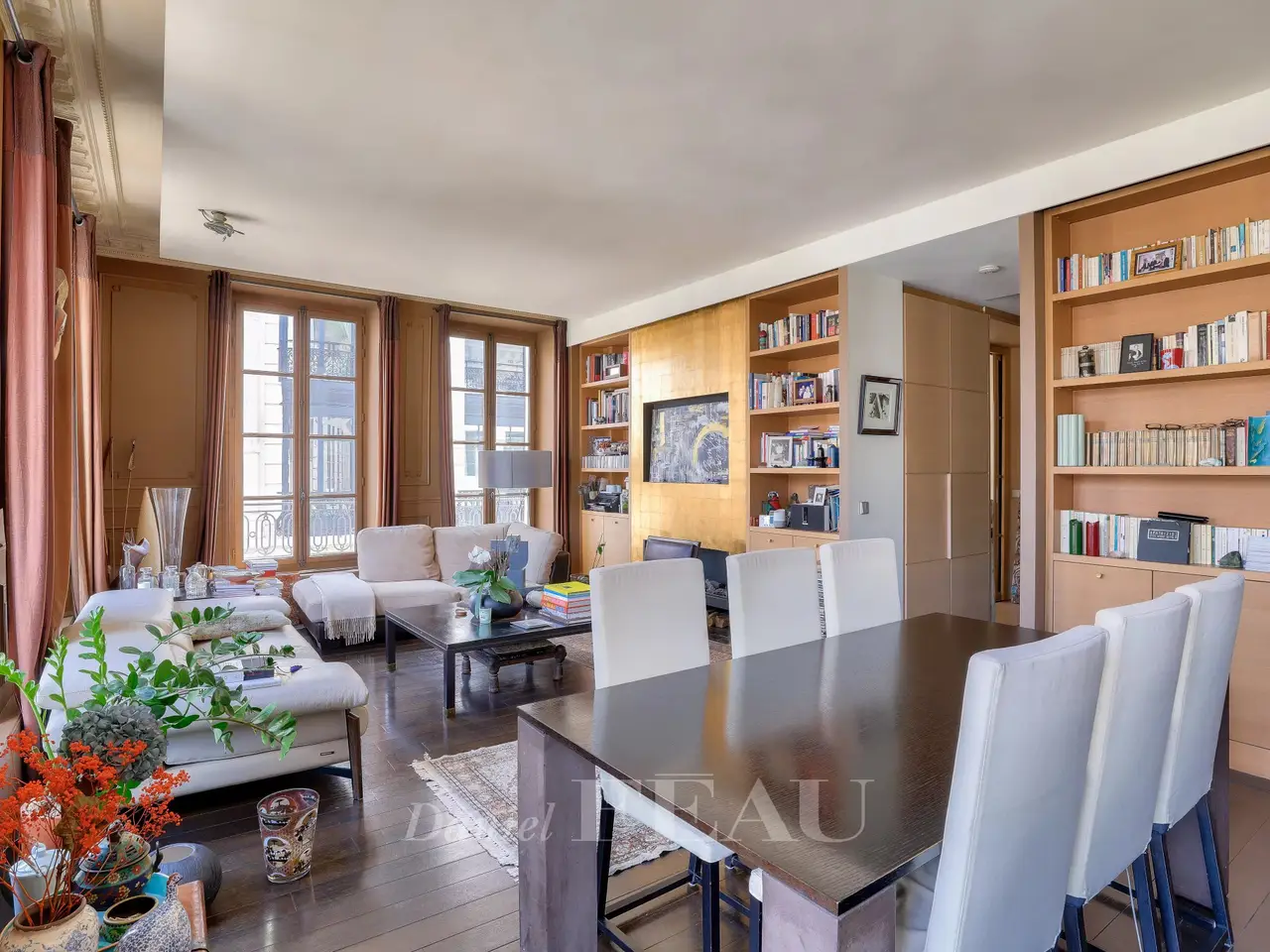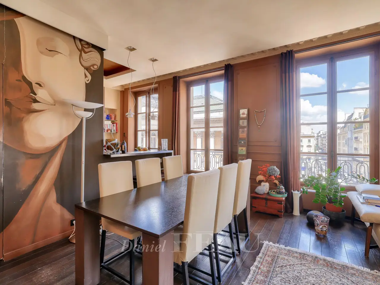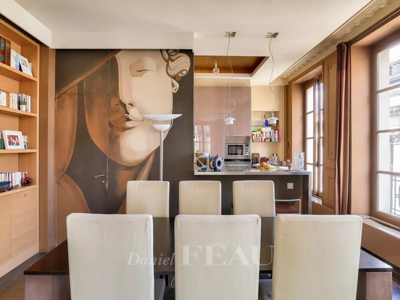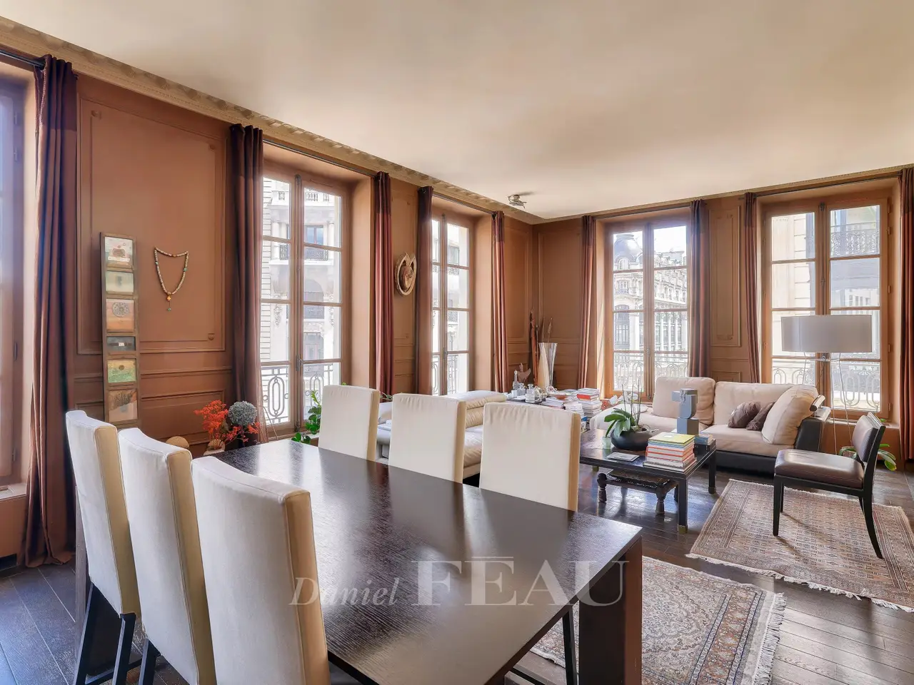 Rue Notre-Dame des Victoires. This apartment enjoying an open view of Place de la Bourse is on the 3rd floor of a luxurious mid 19th century co-ownership with a caretaker. Offering 95.46 sqm of floor space and 92.13 sqm of living space as defined by the Carrez Law, it includes an entry with fitted storage space, a superb living/reception room bathed in sunshine thanks to six floor-to-ceiling windows, a fitted and equipped open-plan kitchen, two bedrooms (one air-conditioned), a shower room/wc and utility room/wc. With a cellar.