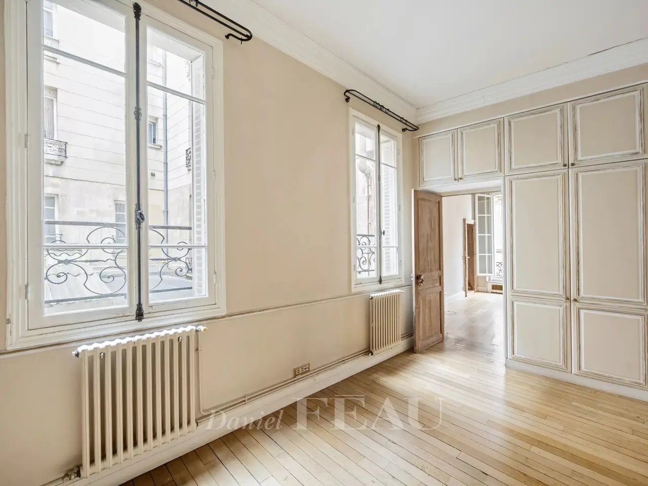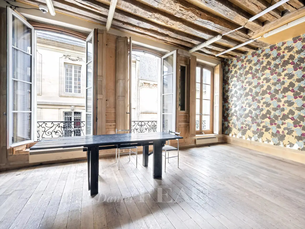Between Place des Vosges and the Picasso Museum, a classic apartment with very spacious rooms. Located on the first floor of a beautiful freestone building with an elevator, it faces the Carnavalet Museum. This 125m² apartment requires some updating. Sunny and quiet. A cellar is included.