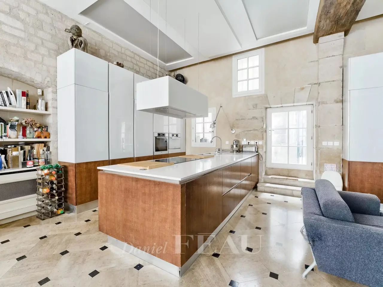 Rue Quincampoix. This magnificent duplex apartment overlooking a paved courtyard is on the ground and first floor of a listed 17th century co-ownership. Directly accessed by means of the main courtyard, it offers 176.26 sqm of living space including a grandiose entrance hall, a 76.33 sqm living/reception room featuring 3.90 metre high ceilings and with a TV lounge featuring a stone fireplace, a fully equipped kitchen, a second sitting room area and a dining room, and a bedroom. Magnificent period features include exposed stone, marble, a fireplace and exposed beams. A wide staircase with wrought-iron banisters leads to two further bedrooms, two bathrooms and a dressing room.