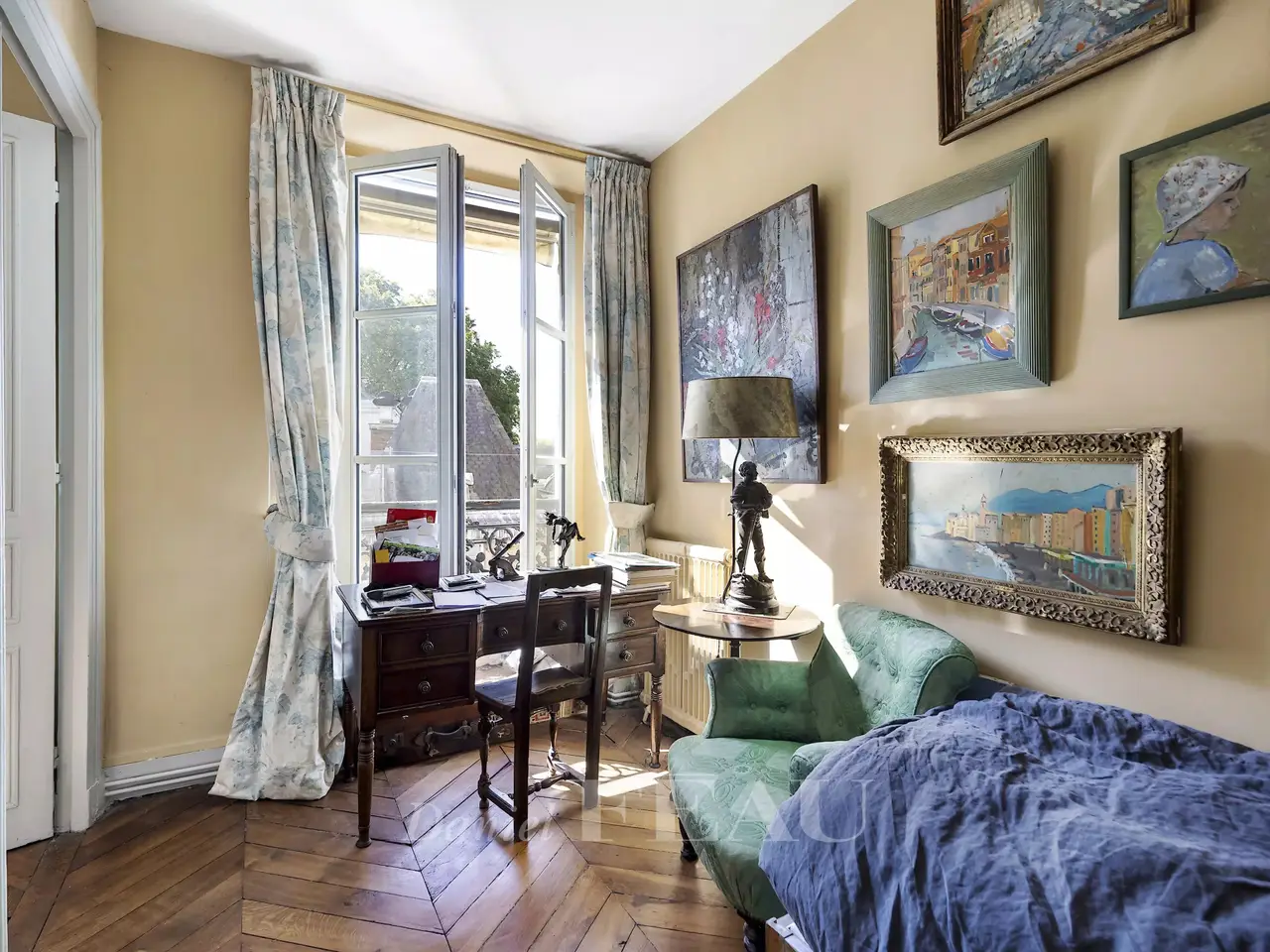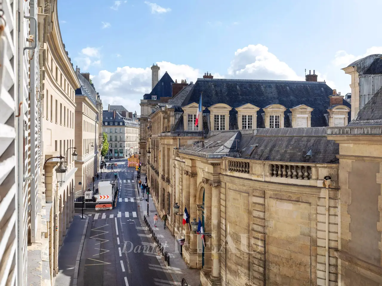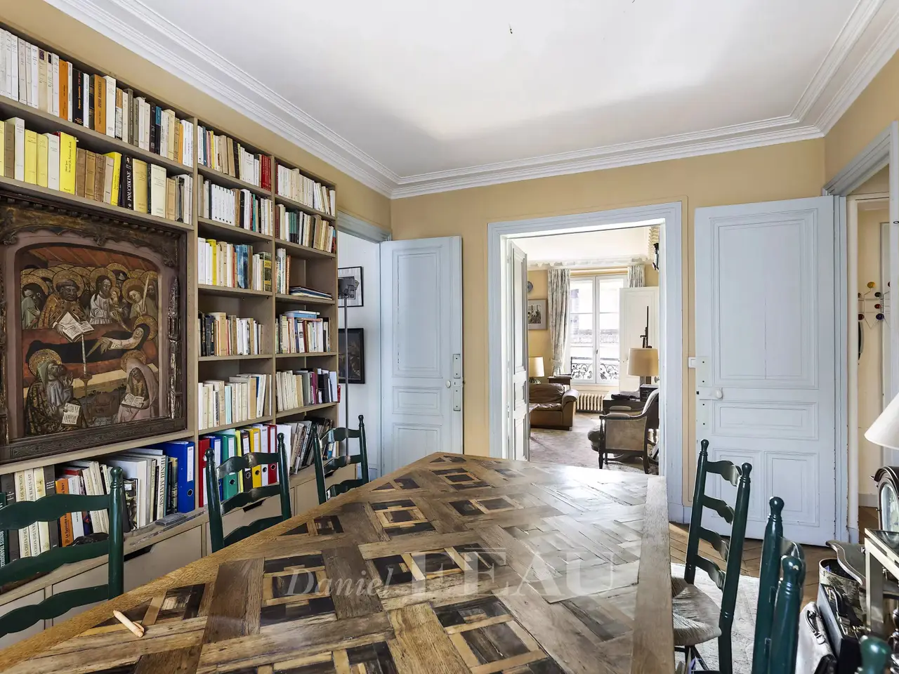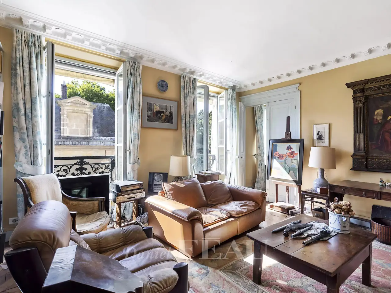 This five-room apartment is located at an iconic address opposite the Luxembourg Palace, on the third floor of an old building. It comprises a living room, a dining room, and three bedrooms with five south-facing windows overlooking the Senate. Renovation work is required.