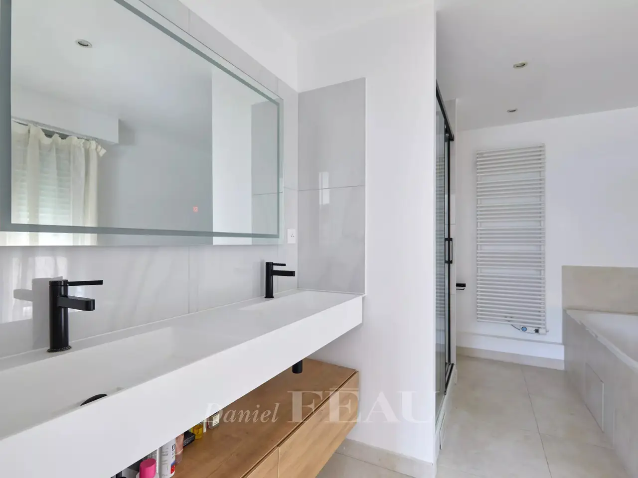Saint Dominique/Gros Caillou neighbourhood. This apartment in very good condition is on the 4th floor of a peaceful relatively recent residence. Offering about 146 sqm of floor space and 137.57 sqm of living space as defined by the Carrez Law, it includes a living/reception room, a dining room, a kitchen opening onto west-facing balconies commanding a view of the Eiffel Tower, a master bedroom with a bathroom opening onto a fully south-facing terrace, two further bedrooms, a bathroom, a utility room and two wc. With a parking space and two cellars.