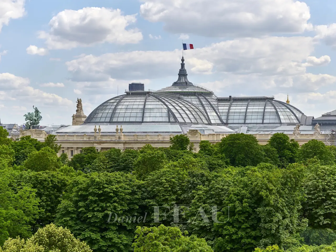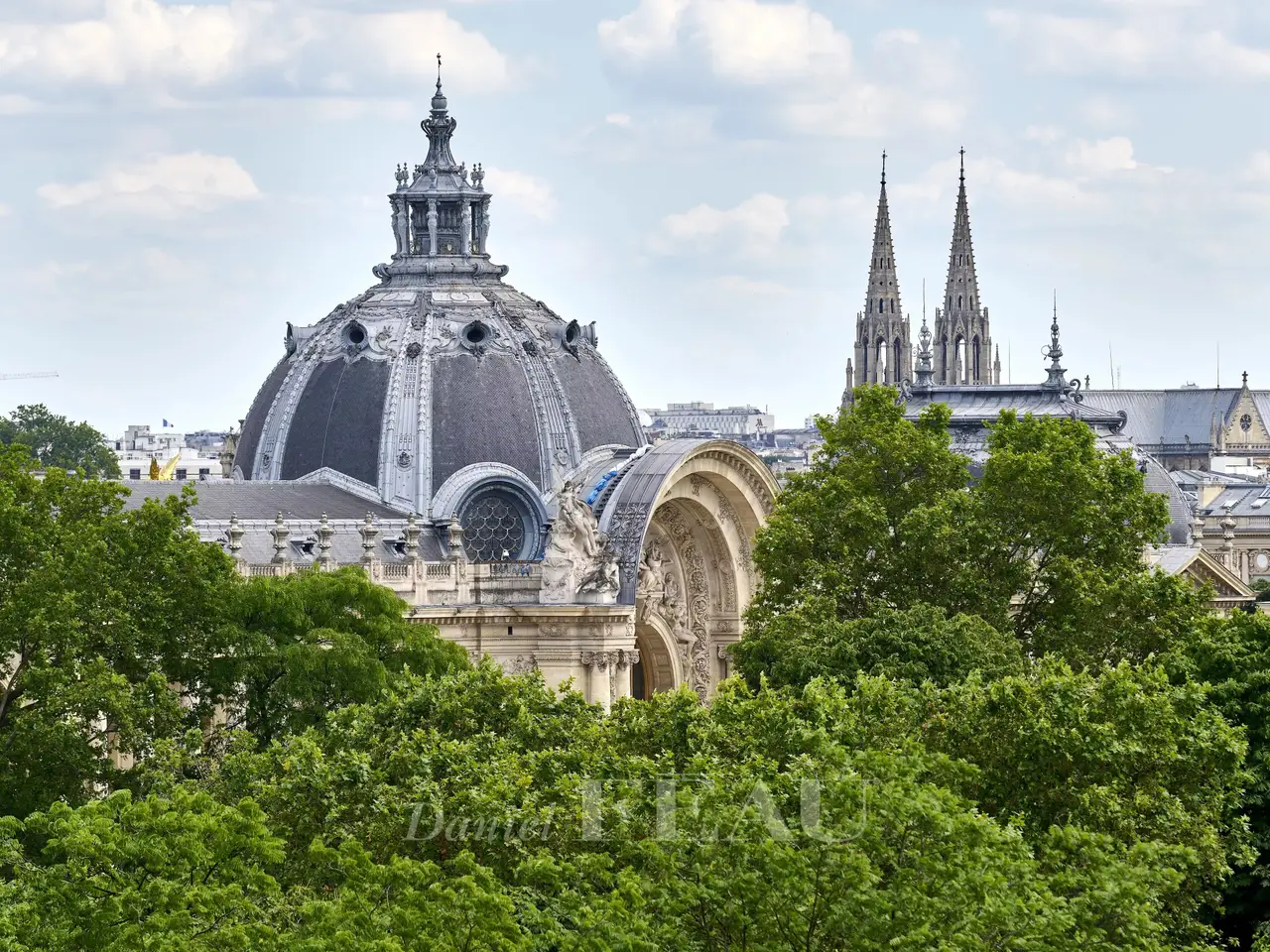 Matignon/Gabriel neighbourhood. This apartment on the top floor of a mid 20th century building commands panoramic views of the Champs Elysees gardens, Marigny Theatre, Grand Palais and Avenue Gabriel, with the Invalides Dome, the Eiffel Tower, Notre Dame and the Pantheon in the distance. 128 sqm of floor space and 108 sqm of living space as defined by the Carrez Law includes a double living/reception room benefiting from no facing neighbours, an equipped kitchen, two bedrooms, a bathroom, a shower room and two wc. The apartment benefits from an excellent floor plan with no wasted space. With a cellar.