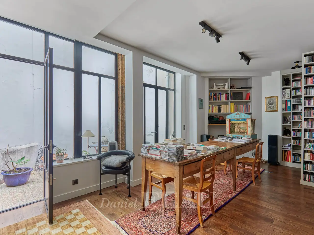 Rue Pierre Fontaine. This split-level former dance studio is located in a peaceful leafy courtyard currently in the process of refacing. Entirely revamped 6 years ago by a renowned architect and in perfect condition, it includes a spacious living/reception room with an open-plan kitchen, a master suite with a dressing room and shower room, and a little terrace. Benefiting from a private courtyard, the lower floor comprises three bedrooms, a home cinema or possible 5th bedroom, and a shower room.