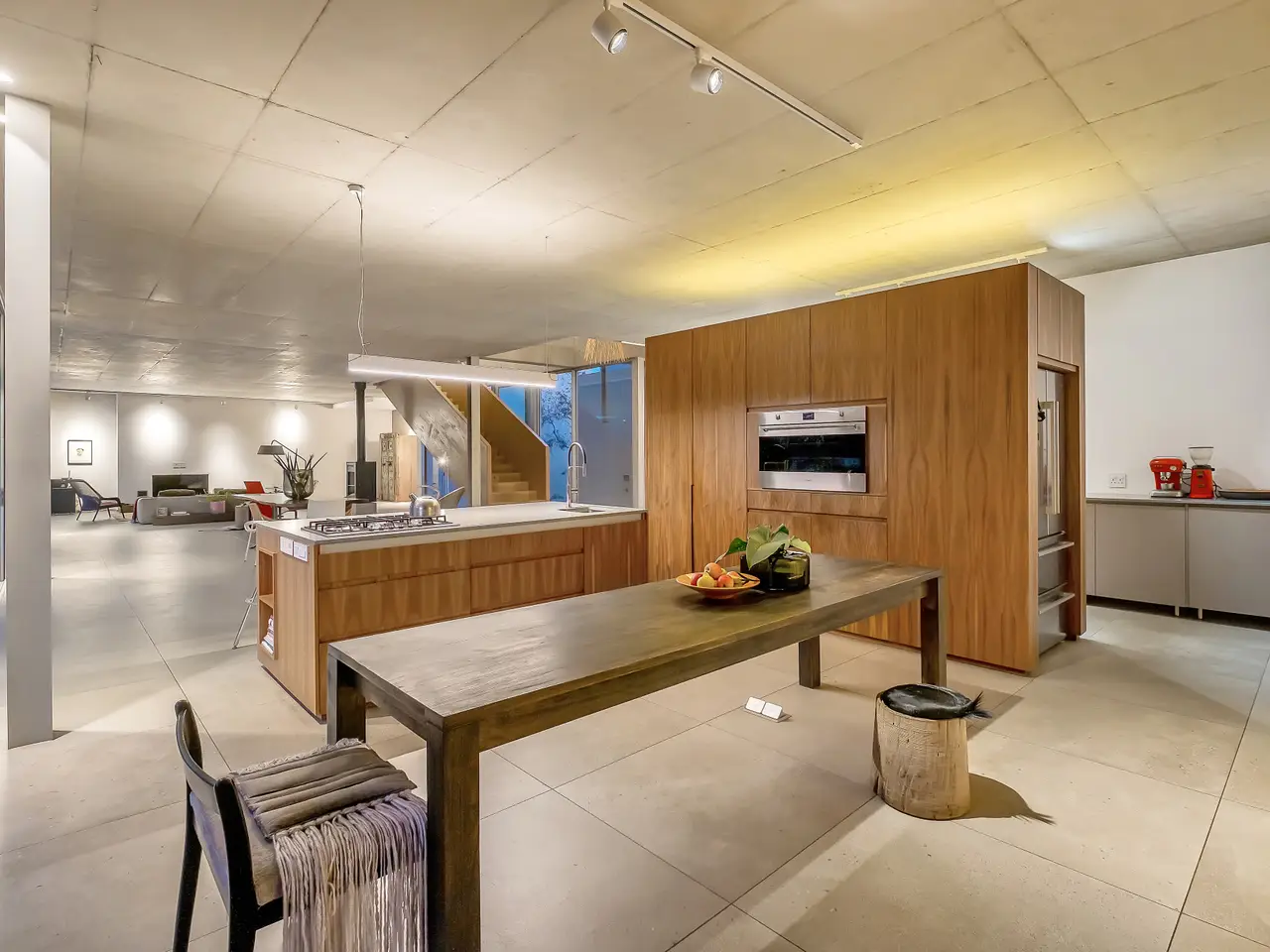 State-of-the-art kitchen with stunning feature stone wall