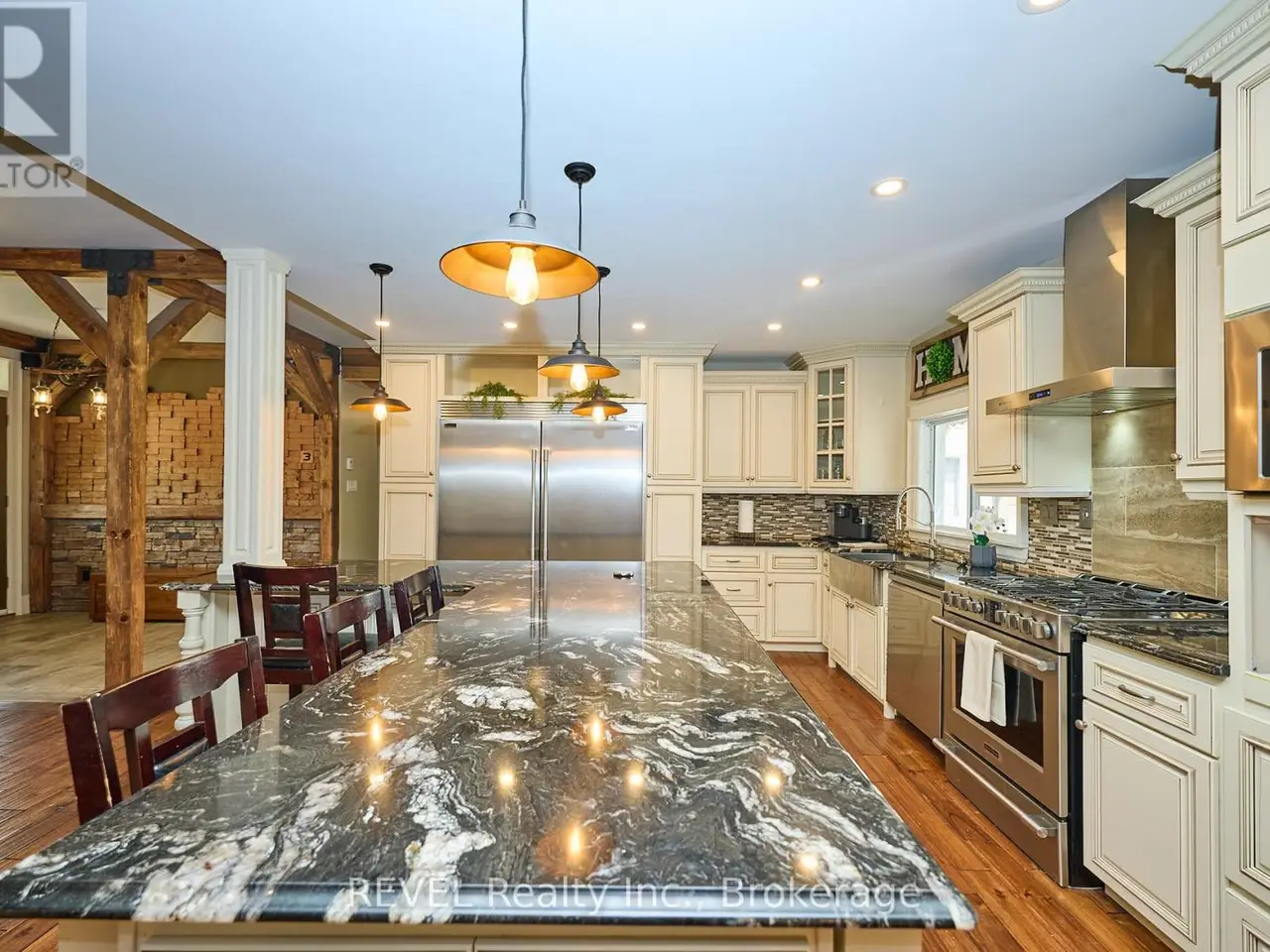 Your dream country retreat is waiting for you at 740 Highway 20! Whether you are a multi-generational household looking to escape from the city or a large family yearning for space to spread out, this property is sure to be intriguing. Situated on over seven acres, only minutes from town, with a five-bedroom in-law suite on the second level, along with two massive shops and your own private pond - opportunities like this are certainly special. As you pull into the property, take note of how beautifully positioned the house and shops are. Set back from the road offering peace and ample privacy, you are greeted by a charming front porch that invites you to slow down, take a breath and enjoy the beauty of rural living. Step inside to a bright, open-concept floor plan where the wow-factor continues. Beautifully updated with custom finishes at every glance, the main floor is simply put - impressive. Having been carefully crafted and thought out, the kitchen seamlessly flows into the living and dining room and offers the absolute perfect space for hosting large gatherings with friends and family. Featuring a gas fireplace and massive windows that oversee the front yard, the living room is cozy yet spacious. Beyond the dining room is the family room that offers the perfect second main floor living space or an ideal work-from-home set-up. Equipped with two access points to the backyard, entertaining will be as simple as can be! The remainder of the main floor is comprised of the primary bedroom, an updated bath with a coveted walk-in shower, a dedicated laundry room, along with a utility/storage space. With a separate entrance at the side of the home, the second level is incredibly spacious, bright and inviting! Featuring a full kitchen, expansive living and dining rooms, full bath, along with a two-piece ensuite, laundry room and a private balcony that spans the entire back of the home, this area is equipped for a family living. You're invited to have it all right here in Fenwick! (id:7434)