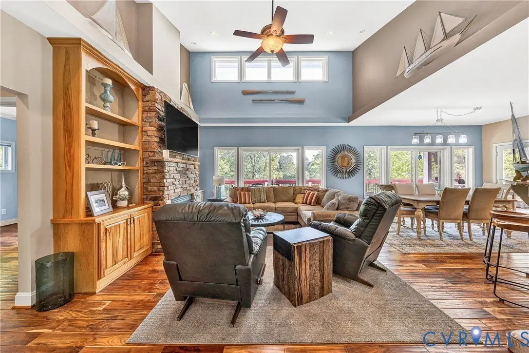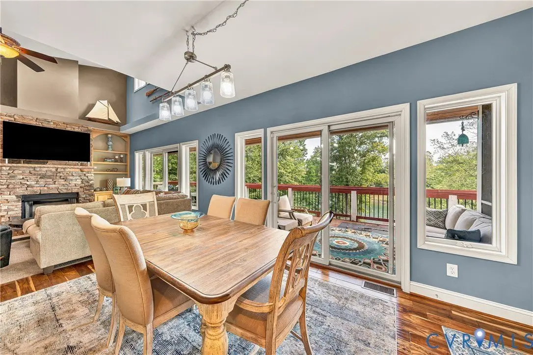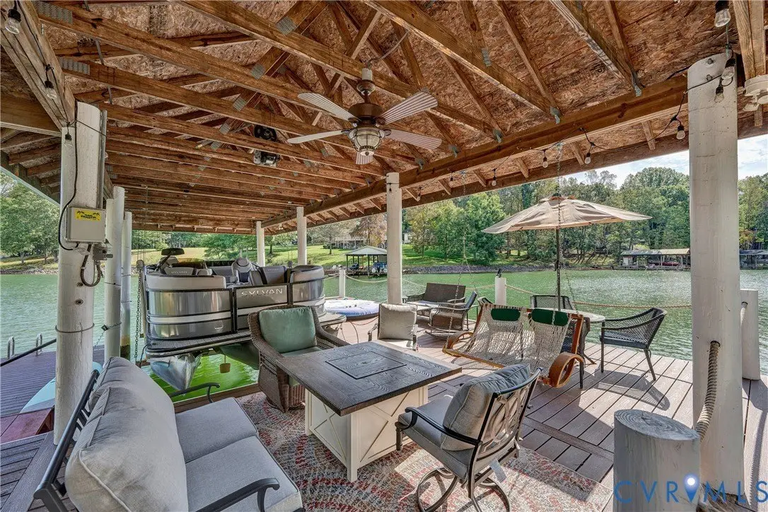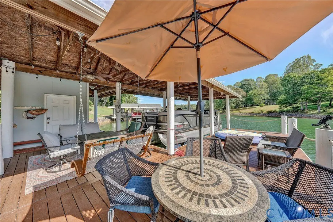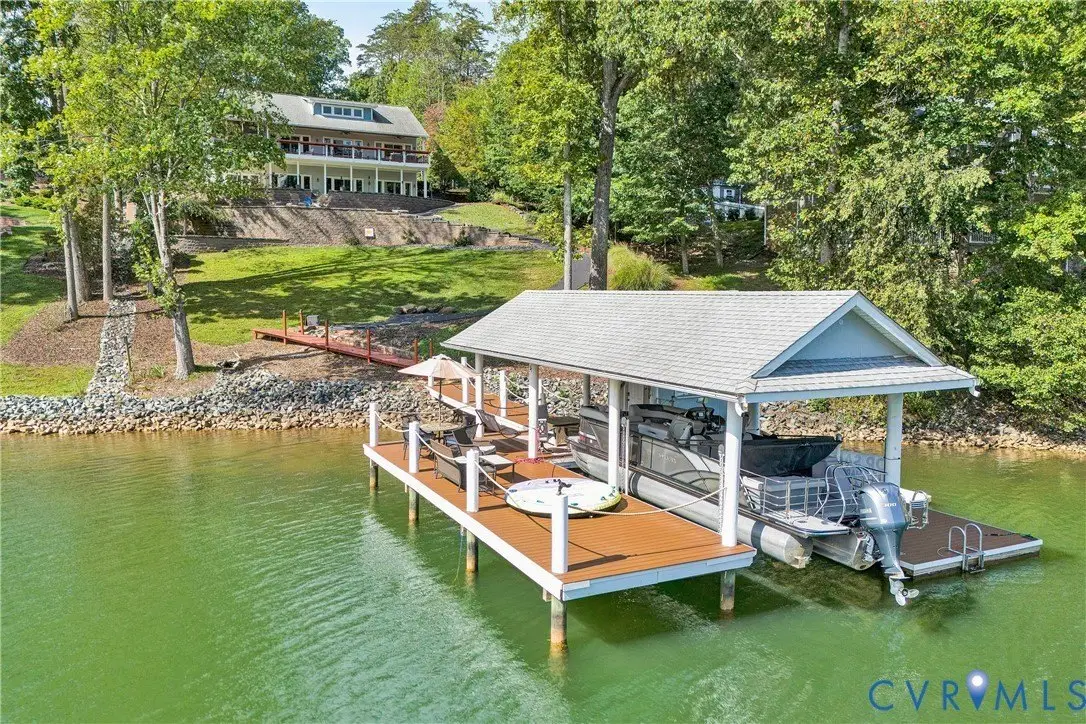 : An exquisite waterfront retreat on Smith Mountain Lake awaits at 1040 Jeffferson Dock Rd-a blend of modern comfort, natural beauty, and lake life luxury. Decorated as a 5 bedroom, 3 bathroom home, with 3265 sqft of living space. Built in 2009 sitting on .75 acres of beautifully landscaped land, with mature plantings, wroght iron fencing and a pristine new backyard firepit and patio! Stunning lake and mountain views, tucked just inside a cove off the main Blackwater River channel. Spacious open-plan living with large windows that capture the lake view and fill rooms with natural light. Gourmet kitchen outfitted with granite countertops, high-end stainless steel appliances and thoughtful finishes.Comfortable main-level living with screened porch and full-length decks to enjoy the outdoors from multiple vantage points. Lower level designed for guests and gatherings: roomy areas, high ceilings,great funtionality and flow. Professionally landscaped lot with a paved pathway down to a custom boathouse. Deep water slip+lift+enclosed storage make lake access effortless. Multiple outdoor living spaces:screened porch, decks with newly installed Trex style decking spanning the house,perfect for morning coffee or evening sunsets. Oversized 2-car garage;driveway and lot designed to accomodate convenience and aestectics. Fantastic propane gas firepit and stunning outdoor patio for cozy evenings taking in the fresh lake air and quiet scendery. Heat pump system, well and septic utilities. Modern touches:stainless appliances, EV charging capability in garage, updated systems. If you are craving lakefront serenity without sacraficing comfort or stylye, this home offers the best of both. No ST rental for zoning RC-1 in Franklin County at this time. Rental over 30 days is allowed. Come enjoy this beautiful home at Smith Mountain Lake today!