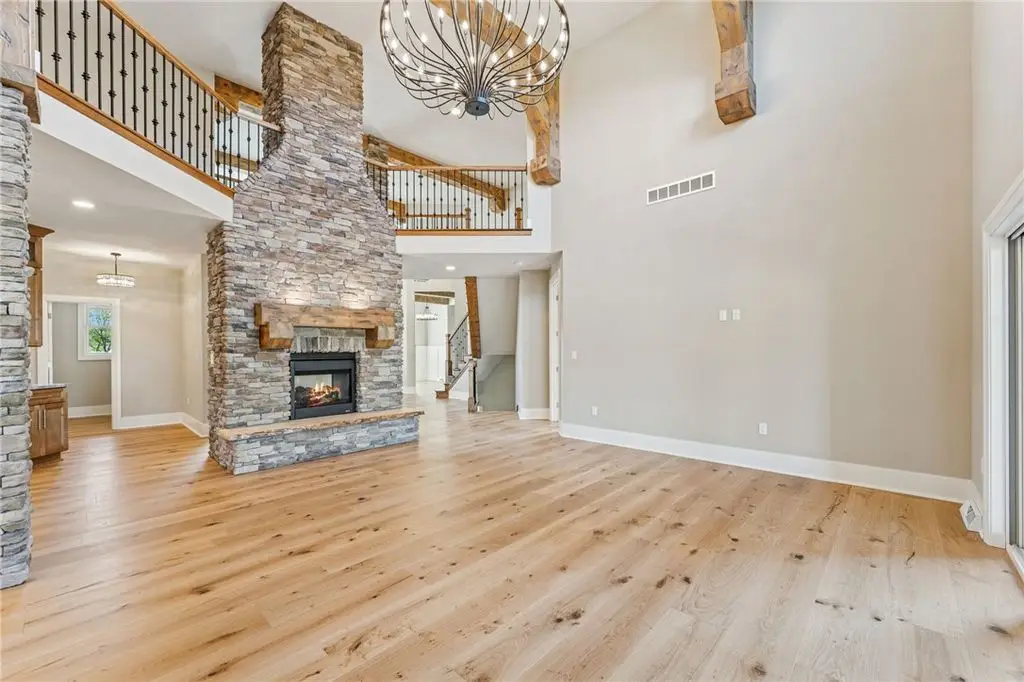 Discover rustic charm blended seamlessly with modern elegance in this stunning 1.5-story home in Tuscany II of Peters Township. This residence offers thoughtful design and refined finishes throughout. The hardwood floors, custom milled stained woodwork, and soaring two-story & cathedral ceilings combine to create a sense of warmth & grandeur. The Gourmet kitchen features Cafe appliances, custom cabinetry, and a spacious layout ideal for entertaining. The adjoining great room w/ double-sided stone fireplace provides a cozy yet elegant gathering space. The main-level owner's suite is a retreat of its own with a decorative tray ceiling, luxury bath, and walk-in closet. Additional living spaces include a private study, formal dining room, and a finished basement perfect for entertaining. Outdoor living with a covered patio with outdoor fireplace provide ample space for entertaining. This property perfectly balances timeless character with contemporary luxury.
