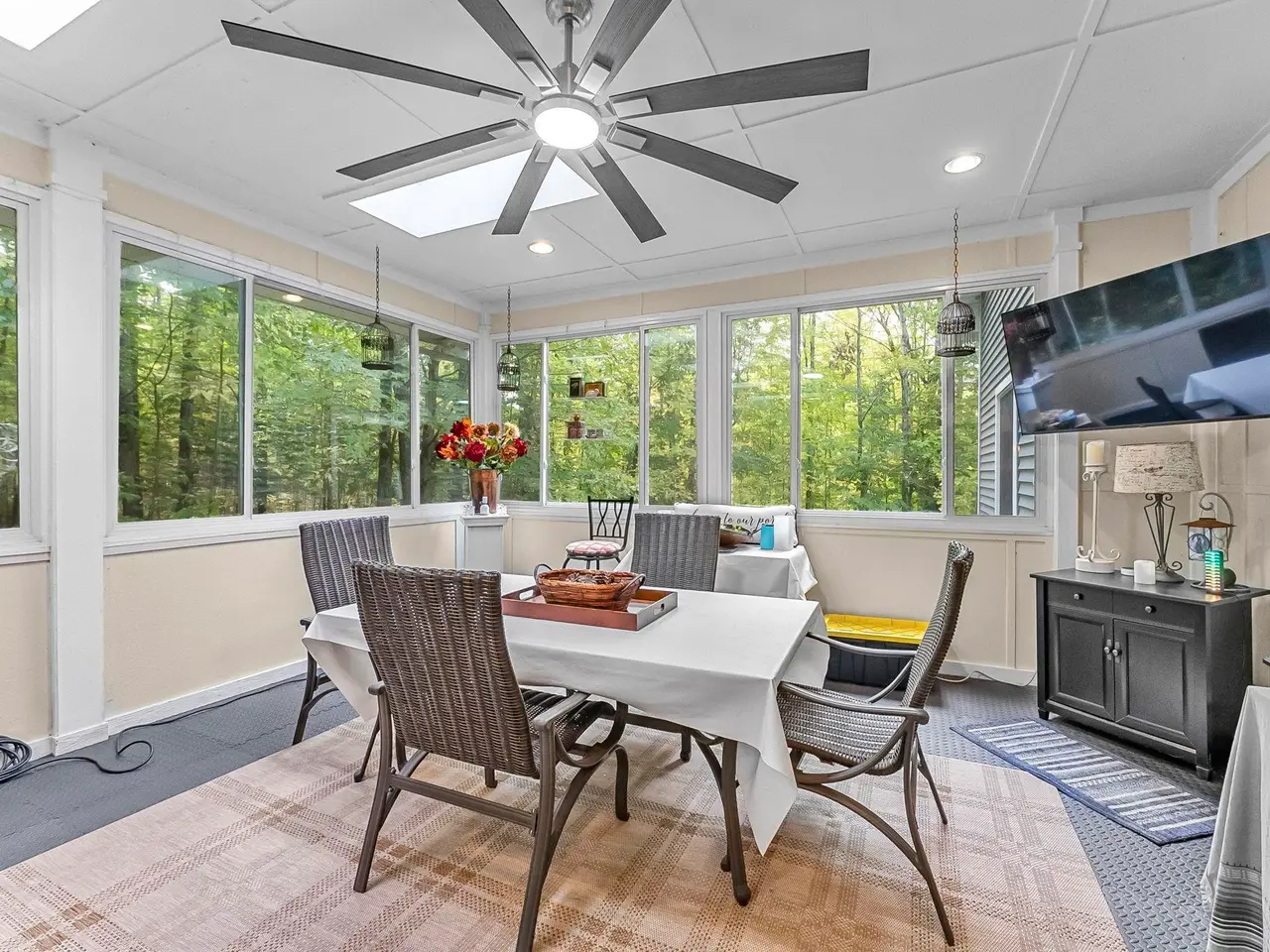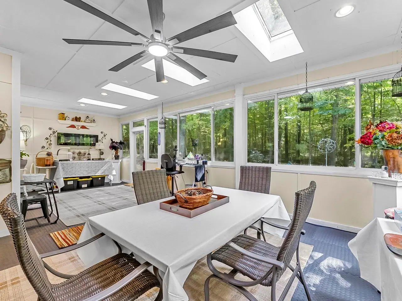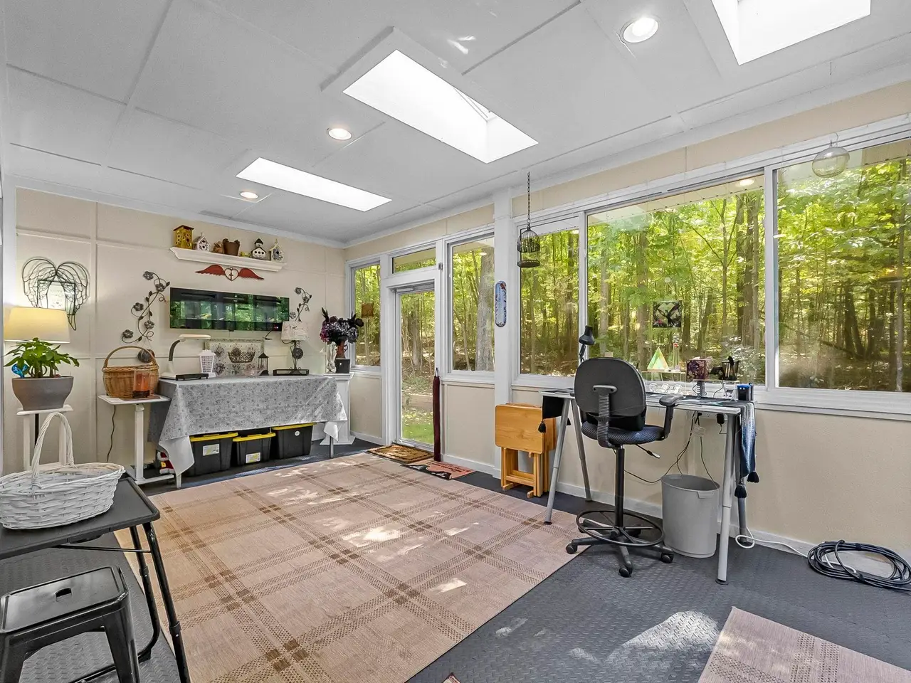 Step into elegance with this four bedroom, three bath home in Petoskey, set on two and a half acres of natural beauty and surrounded by a private nature preserve on three sides. The open floor plan flows effortlessly beneath stunning coffered ceilings, while the gourmet kitchen boasts granite countertops and main-floor laundry for convenience. Retreat to the luxurious primary suite featuring a walk-in closet and a spa-like double shower. A bright three season room filled with natural light is the perfect spot to relax and take in the views. The finished walkout basement expands your living space, while the three-car garage with epoxy floors and built-in storage keeps everything organized. A 12x24 shed offers even more space for tools, toys, or hobbies. With countless updates and serene surroundings, this property blends comfort, style, and nature into one perfect package.