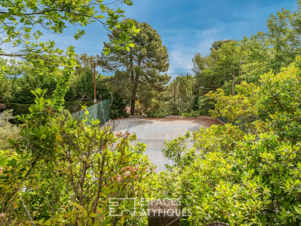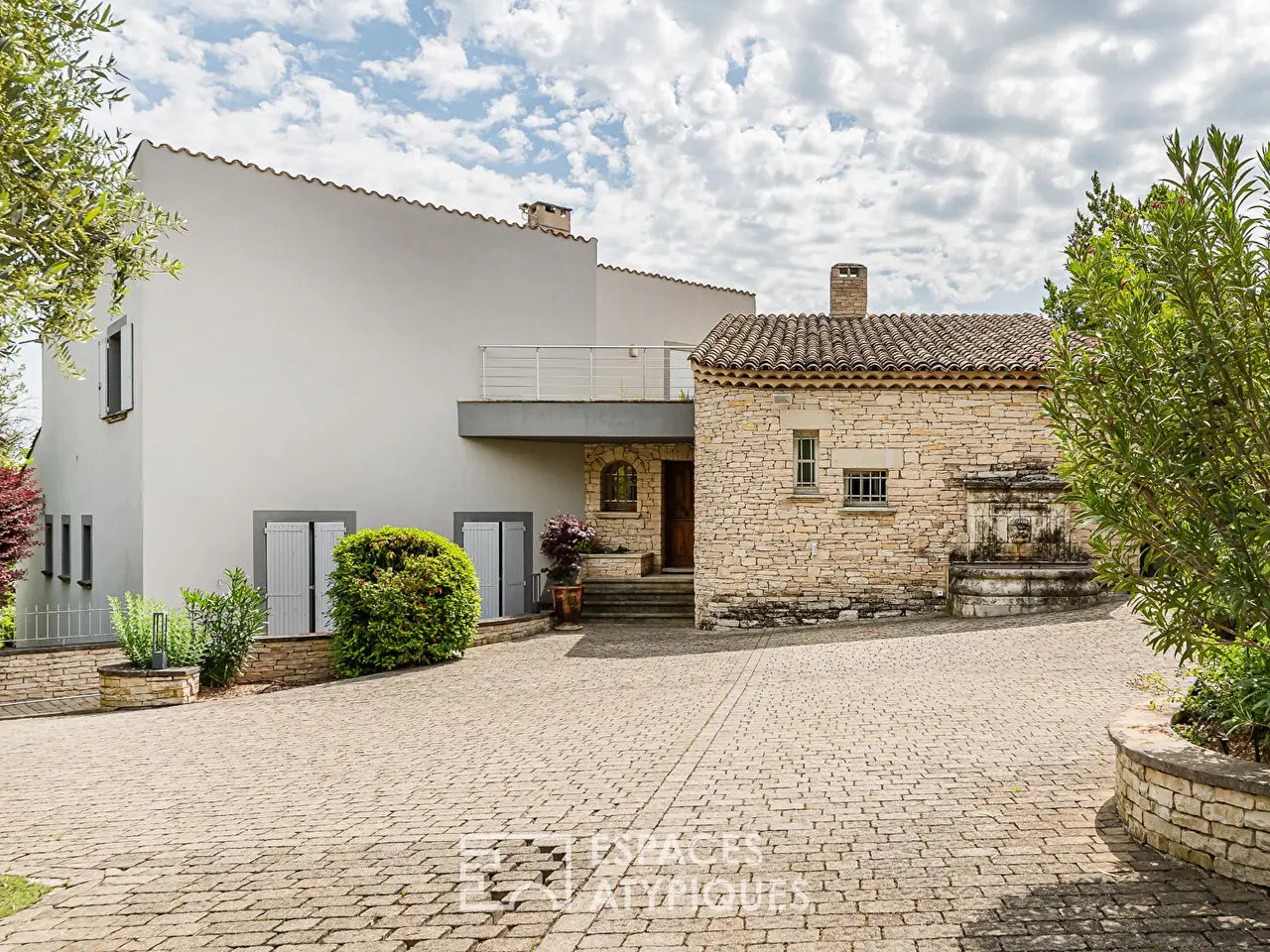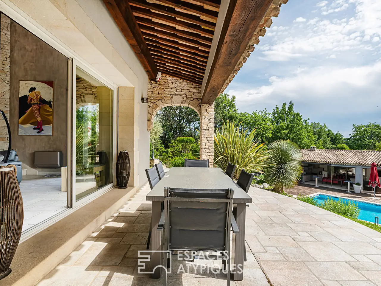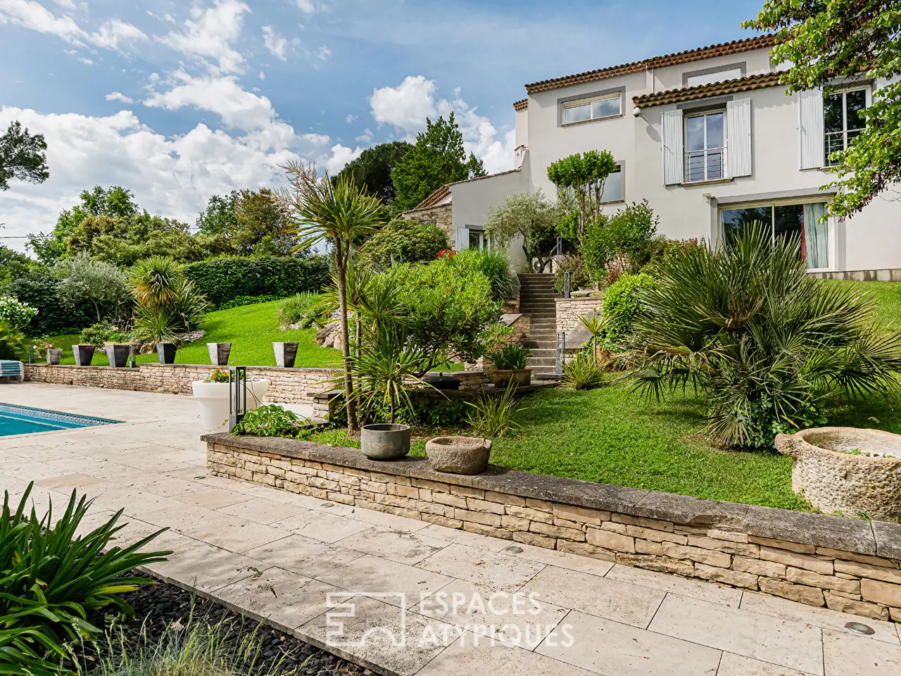 Exceptional view, nature at your feet, the horizon as your only limit Just 45 minutes from the Aix-en-Provence TGV station, 1 hour from Marseille and its international airport, this exceptional property welcomes you to the heart of the Alpes-de-Haute-Provence, in a preserved setting, bathed in light and silence. Nestled in a green setting of 4,400 sqm, this unique residence combines privacy, comfort and a spectacular view of the emblematic landscapes of the region - the very ones that inspire contemplation and escape. Access is via an elegant paved courtyard with easy parking, complemented by a 38 sqm garage. Two distinct living spaces for a tailor-made art of living: - A main house of more than 350 sqm, spread over three levels, designed to combine refinement, functionality and spectacular volumes. - An independent summer apartment of approximately 77 sqm, perfect for welcoming your loved ones or developing a tourist reception business. Built in the 1980s with avant-garde and timeless architecture, the property seduces with its noble materials, its clean lines and its careful finishes. The entrance hall, bathed in light, structures the house and serves two distinct wings. On the mezzanine, an office overlooks the vast living room. A majestic stone staircase, framed by a bay window like a living picture on the garden, guides to the right wing. Right wing: elegance and conviviality - Recent high-end kitchen, adjoining a pantry - Superb air-conditioned wine cellar - 50 sqm living room extended by a bright 30 sqm lounge with fireplace and access to the terraces - Refined architectural details: leaf guards, niches, cut stone walls? - Below, a 52 sqm space dedicated to well-being: gym, hammam, shower - also ideal for a professional activity Left wing: sleeping area & privacy - Linen room - Three 18 sqm suites, each with shower room or bathroom. One of them has a mezzanine Top level: a bright cocoon of 71 sqm - Real loft with kitchen, shower room, WC, living room, dressing room and bedroom opening onto a private terrace with panoramic view Independent apartment of 77 sqm - Living room with equipped kitchen, shower room, WC, bedroom with mezzanine - Shaded terrace with summer kitchen: ideal for receptions, a tourist project or family moments A landscaped terraced garden, an atmosphere of serenity Designed by landscapers, the garden perfectly follows the natural slope of the land. Rich and neat vegetation creates peaceful spaces, where every detail seems designed for rest and harmony. Leisure facilities: - An exceptional swimming pool for your refreshing moments - A petanque court for your convivial moments This unique property perfectly embodies discreet luxury and natural elegance. It adapts to all life projects: main residence, family home, reception area or artistic retreat. The subtle alliance between the charm of the old, bold architecture and modern fittings makes it an exceptional property. And that view? Simply unforgettable. For any information contact Marion ROBERT 06 38 84 39 44 EI RSAC 892307539 MANOSQUE Information on the risks to which this property is exposed is available on the Georisques website: www.georisques.gouv.fr REF. 1091ADHP Additional information * 8 rooms * 5 bedrooms * Outdoor space : 4400 SQM * Property tax : 5 000 € Energy Performance Certificate EPC blank or in progress Agency fees The fees include VAT and are payable by the vendor