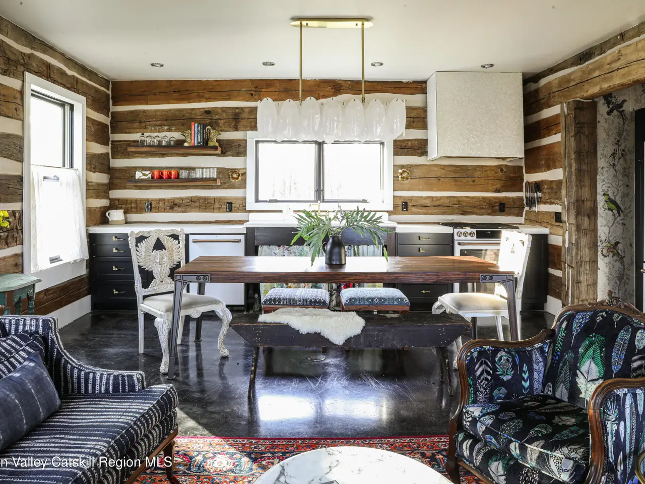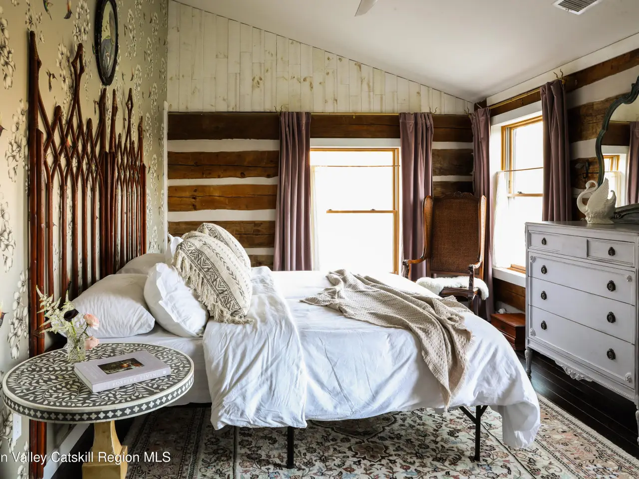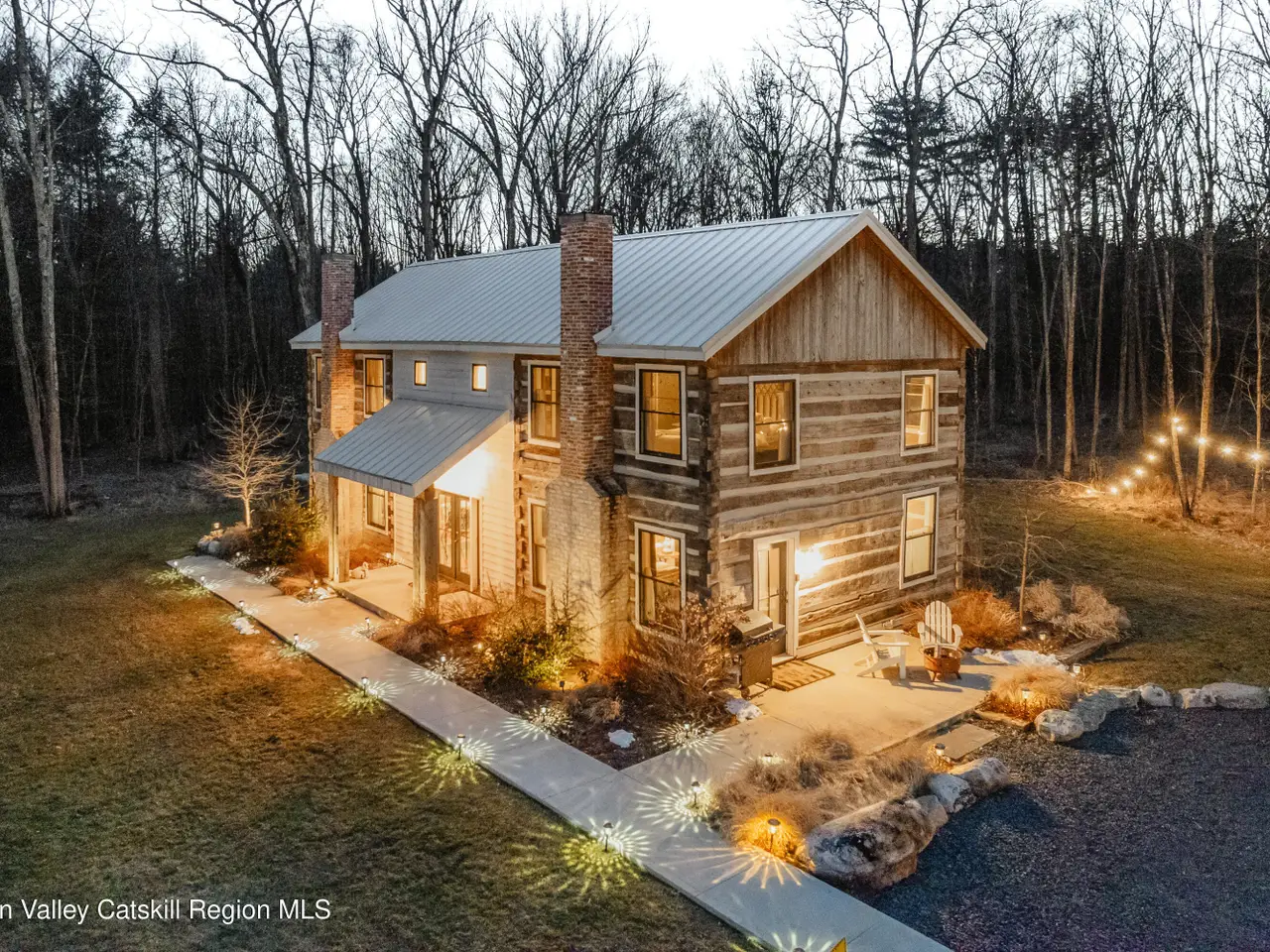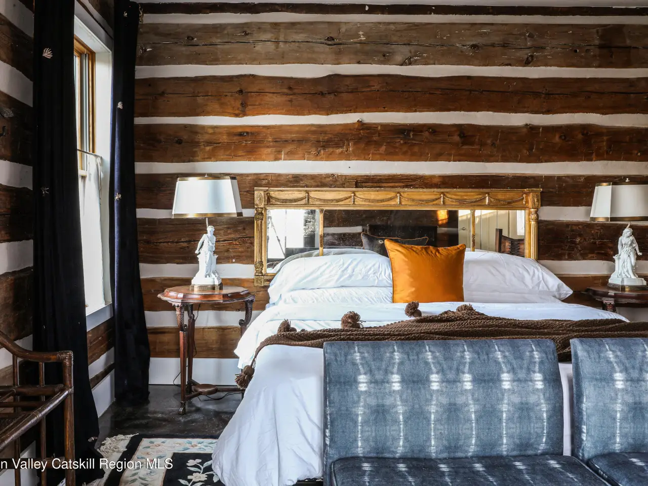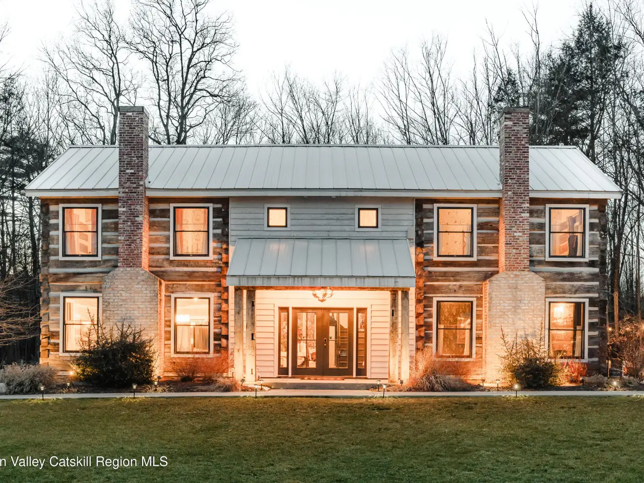 Welcome to Bruyn Estate, an exceptional Hudson Valley compound that brings together historic character and modern comfort across two remarkable homes: a lovingly restored 1835 Greek Revival farmhouse on the National Register of Historic Places, and a reimagined log home reconstructed from 1850s barn beams. The property is steeped in history: in the 1800s, it was a sheep farm that supplied wool garment materials to Brooks Brothers, and in the 1980s, it was owned by the great-grandson of the founder of Singer Sewing Machines. Set on 8.5 private acres with pastoral views and open lawns, this established short-term rental and event venue offers beauty, income potential, and timeless charm. The farmhouse captures the timeless appeal of early American architecture, with wide-plank floors and original details carefully preserved. Modern updates include a designer kitchen and primary bath with radiant heat, and stylish wallpaper and fixtures throughout. Two Rumford fireplaces and a pellet stove add warmth and ambiance, and recent improvements include a new furnace and AC unit, plumbing updates, fresh exterior paint, and structural repairs. Steps away, the Dog-Trot-style log home offers a completely different atmosphere: rustic yet refined, with soaring ceilings, reclaimed timber beams, and an open-concept kitchen, dining, and living area at its heart. The main-floor primary suite has a private entrance, while upstairs, four en suite bedrooms each have their own modern personality. A new hot tub enhances the home's outdoor living spaces, ideal for year-round enjoyment.The grounds offer generous space for events, gatherings, and future possibilities. Over the years, Bruyn Estate has hosted countless weddings, retreats, and guests, drawing acclaim in features on HGTV, the Magnolia Network, and beyond. Move-in ready and exceptionally maintained, a furnished option is also available allowing for a seamless transition into a full-time residence, weekend retreat, or turnkey rental operation. Just 90 minutes from New York City and down the road from scenic Mohonk Preserve, Minnewaska State Park, and some of the region's best dining, like One with Land, and Wildflower Farms, this modern estate offers endless possibilities for living, hosting, and creating in the Hudson Valley.