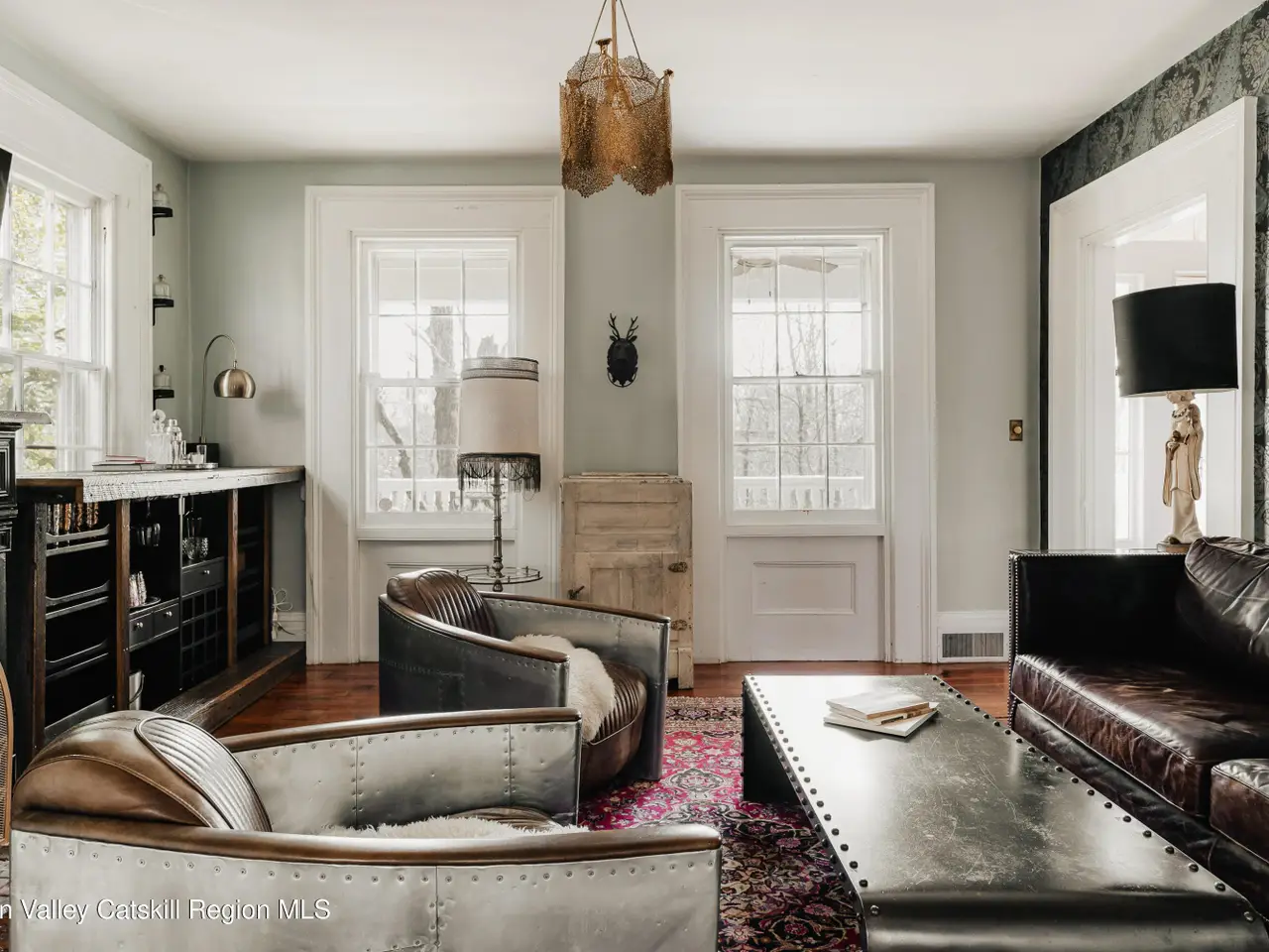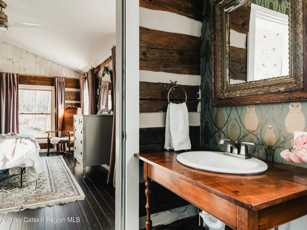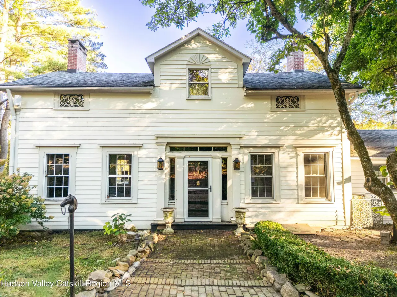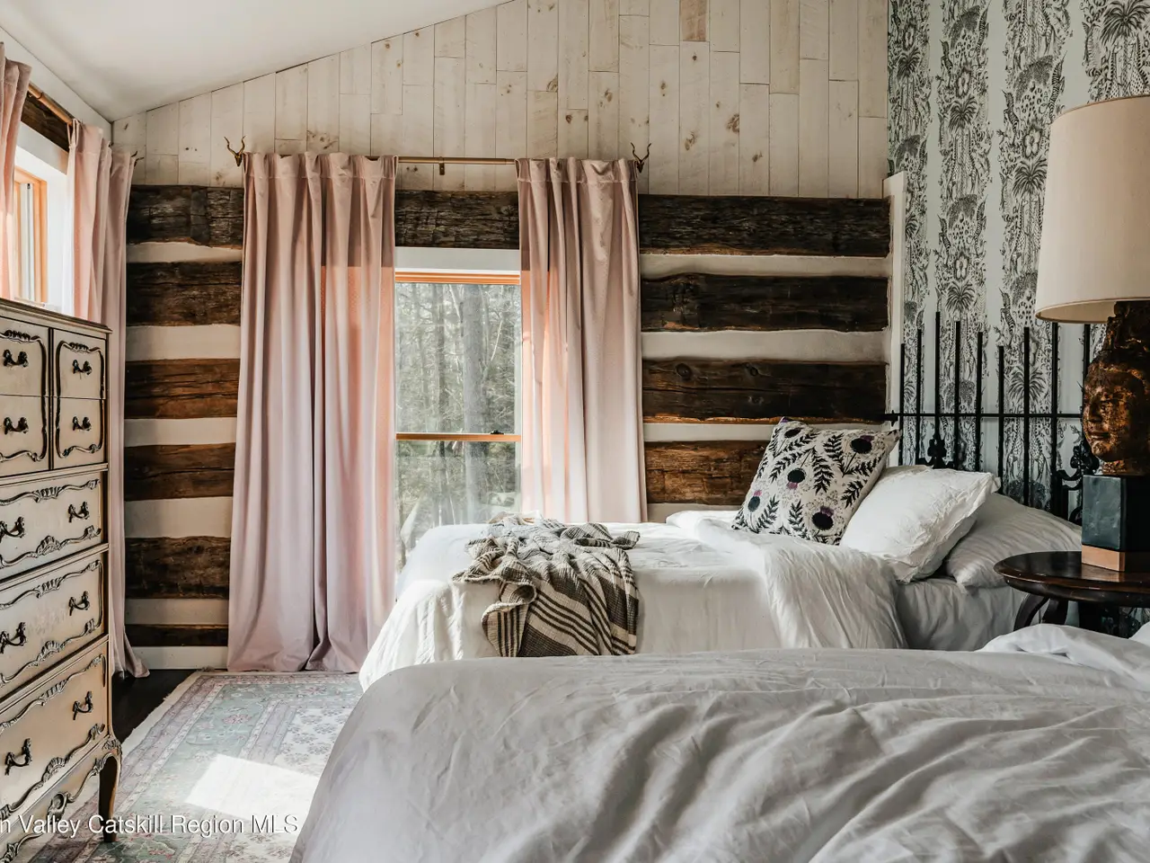 Welcome to Bruyn Estate, an exceptional Hudson Valley compound that brings together historic character and modern comfort across two remarkable homes: a lovingly restored 1835 Greek Revival farmhouse on the National Register of Historic Places, and a reimagined log home reconstructed from 1850s barn beams. The property is steeped in history: in the 1800s, it was a sheep farm that supplied wool garment materials to Brooks Brothers, and in the 1980s, it was owned by the great-grandson of the founder of Singer Sewing Machines. Set on 8.5 private acres with pastoral views and open lawns, this established short-term rental and event venue offers beauty, income potential, and timeless charm. The farmhouse captures the timeless appeal of early American architecture, with wide-plank floors and original details carefully preserved. Modern updates include a designer kitchen and primary bath with radiant heat, and stylish wallpaper and fixtures throughout. Two Rumford fireplaces and a pellet stove add warmth and ambiance, and recent improvements include a new furnace and AC unit, plumbing updates, fresh exterior paint, and structural repairs. Steps away, the Dog-Trot-style log home offers a completely different atmosphere: rustic yet refined, with soaring ceilings, reclaimed timber beams, and an open-concept kitchen, dining, and living area at its heart. The main-floor primary suite has a private entrance, while upstairs, four en suite bedrooms each have their own modern personality. A new hot tub enhances the home's outdoor living spaces, ideal for year-round enjoyment.The grounds offer generous space for events, gatherings, and future possibilities. Over the years, Bruyn Estate has hosted countless weddings, retreats, and guests, drawing acclaim in features on HGTV, the Magnolia Network, and beyond. Move-in ready and exceptionally maintained, a furnished option is also available allowing for a seamless transition into a full-time residence, weekend retreat, or turnkey rental operation. Just 90 minutes from New York City and down the road from scenic Mohonk Preserve, Minnewaska State Park, and some of the region's best dining, like One with Land, and Wildflower Farms, this modern estate offers endless possibilities for living, hosting, and creating in the Hudson Valley.