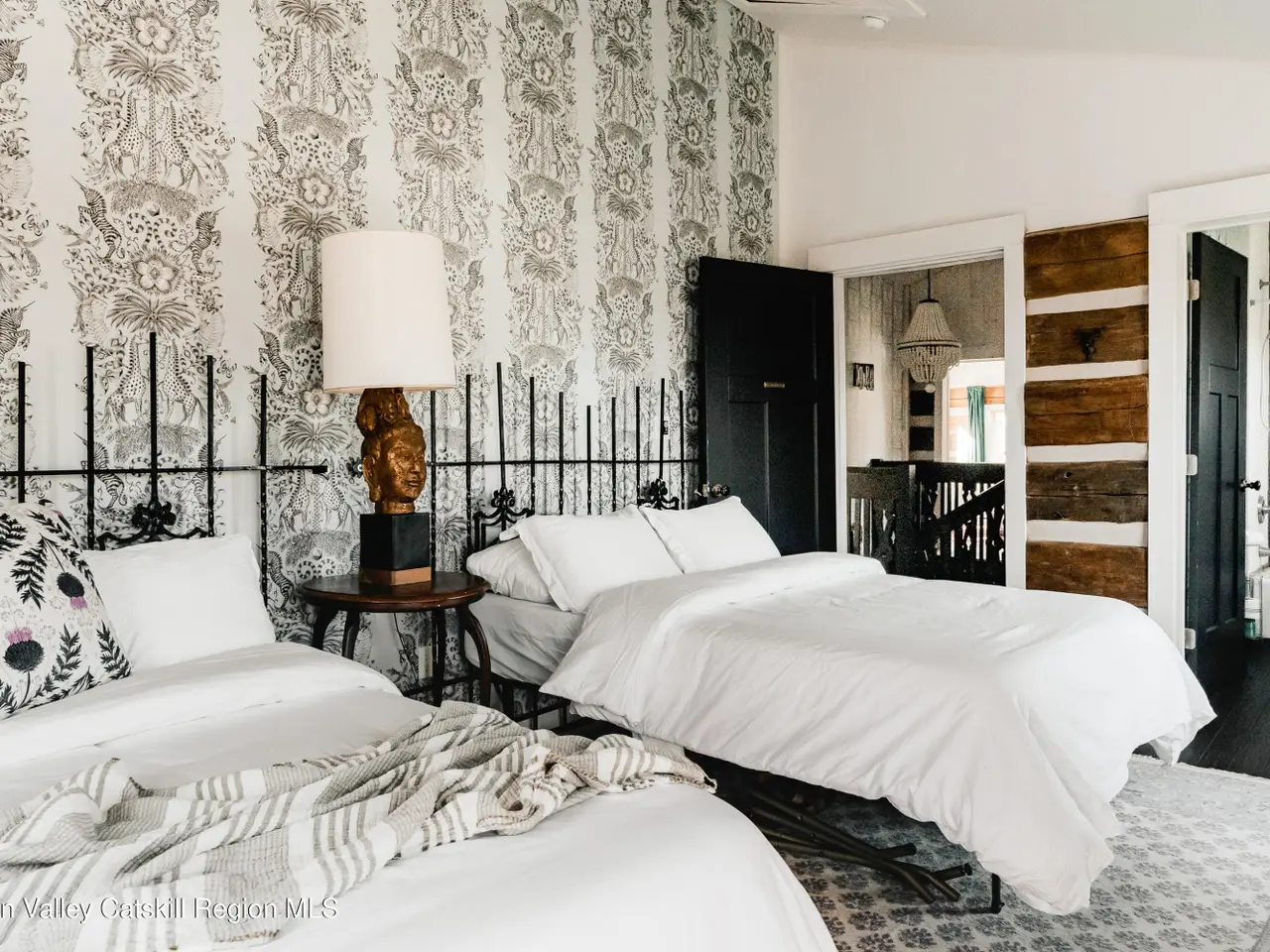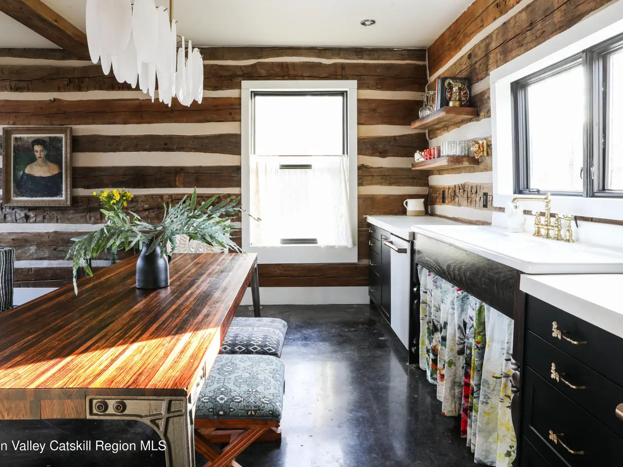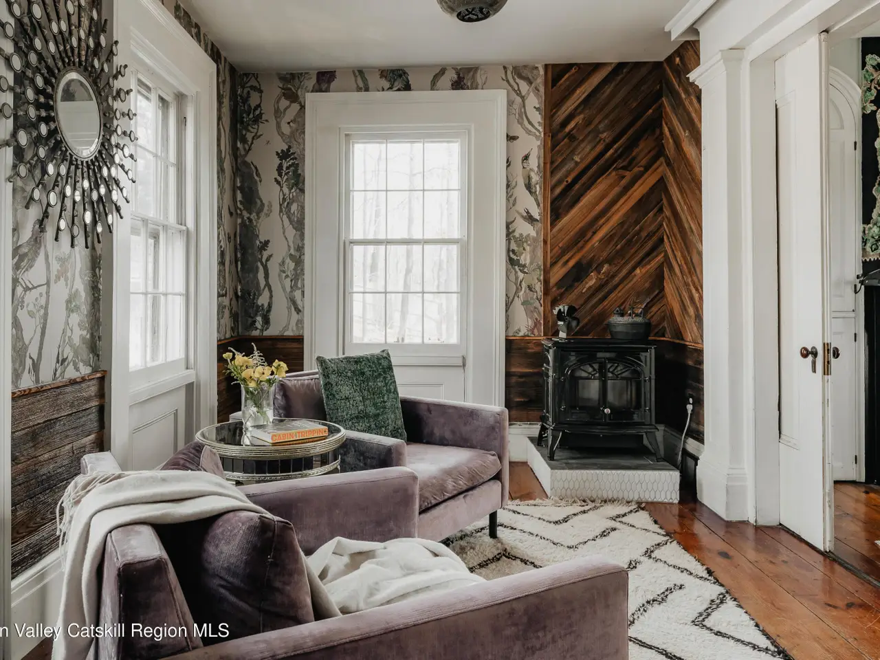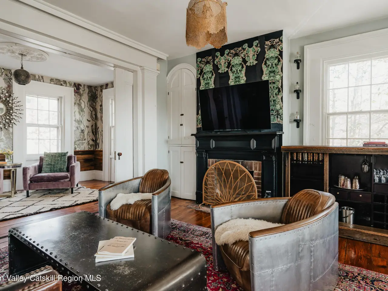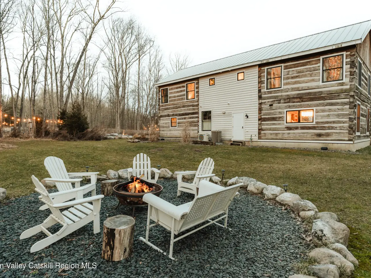 Welcome to Bruyn Estate, an exceptional Hudson Valley compound that brings together historic character and modern comfort across two remarkable homes: a lovingly restored 1835 Greek Revival farmhouse on the National Register of Historic Places, and a reimagined log home reconstructed from 1850s barn beams. The property is steeped in history: in the 1800s, it was a sheep farm that supplied wool garment materials to Brooks Brothers, and in the 1980s, it was owned by the great-grandson of the founder of Singer Sewing Machines. Set on 8.5 private acres with pastoral views and open lawns, this established short-term rental and event venue offers beauty, income potential, and timeless charm. The farmhouse captures the timeless appeal of early American architecture, with wide-plank floors and original details carefully preserved. Modern updates include a designer kitchen and primary bath with radiant heat, and stylish wallpaper and fixtures throughout. Two Rumford fireplaces and a pellet stove add warmth and ambiance, and recent improvements include a new furnace and AC unit, plumbing updates, fresh exterior paint, and structural repairs. Steps away, the Dog-Trot-style log home offers a completely different atmosphere: rustic yet refined, with soaring ceilings, reclaimed timber beams, and an open-concept kitchen, dining, and living area at its heart. The main-floor primary suite has a private entrance, while upstairs, four en suite bedrooms each have their own modern personality. A new hot tub enhances the home's outdoor living spaces, ideal for year-round enjoyment.The grounds offer generous space for events, gatherings, and future possibilities. Over the years, Bruyn Estate has hosted countless weddings, retreats, and guests, drawing acclaim in features on HGTV, the Magnolia Network, and beyond. Move-in ready and exceptionally maintained, a furnished option is also available allowing for a seamless transition into a full-time residence, weekend retreat, or turnkey rental operation. Just 90 minutes from New York City and down the road from scenic Mohonk Preserve, Minnewaska State Park, and some of the region's best dining, like One with Land, and Wildflower Farms, this modern estate offers endless possibilities for living, hosting, and creating in the Hudson Valley.