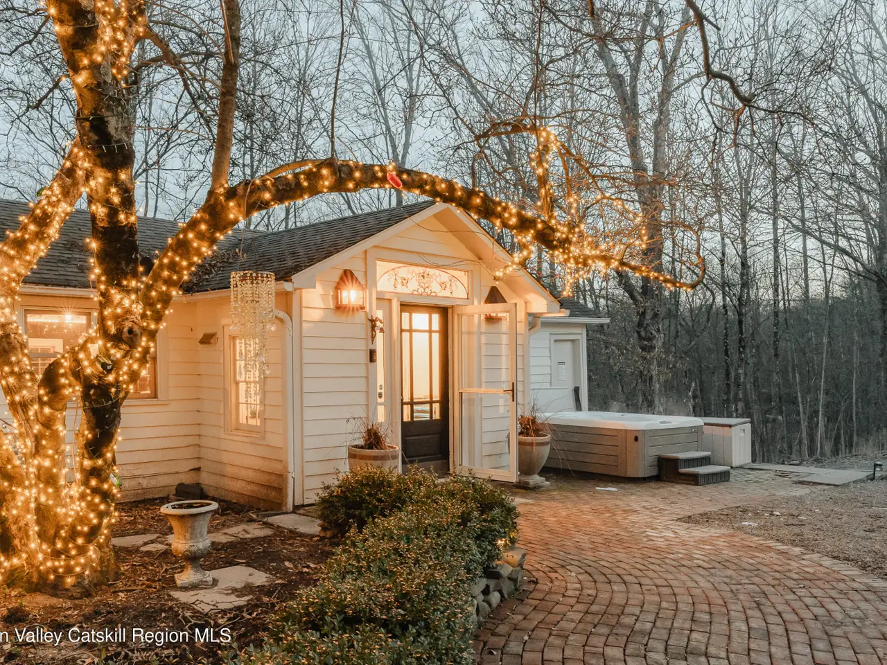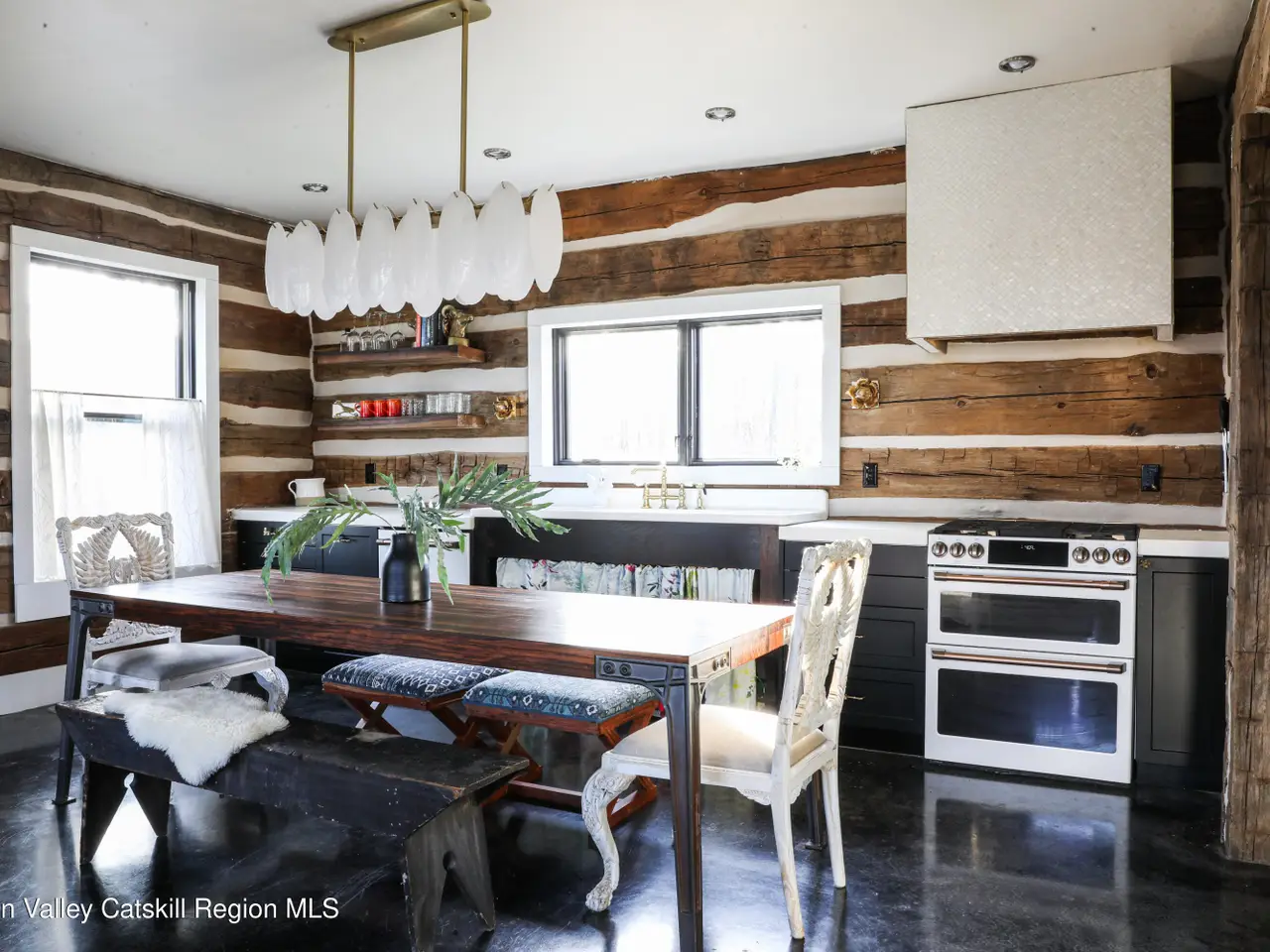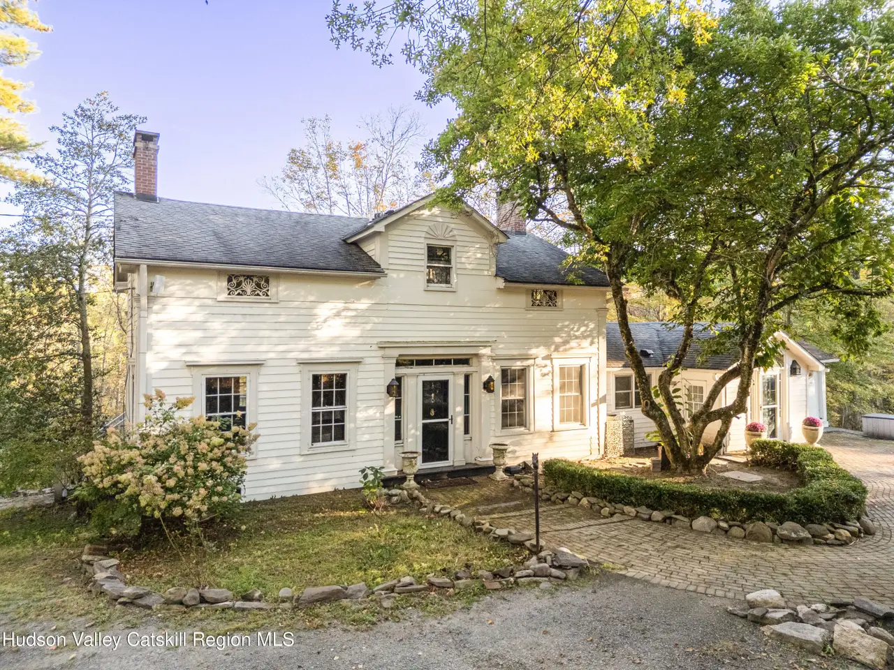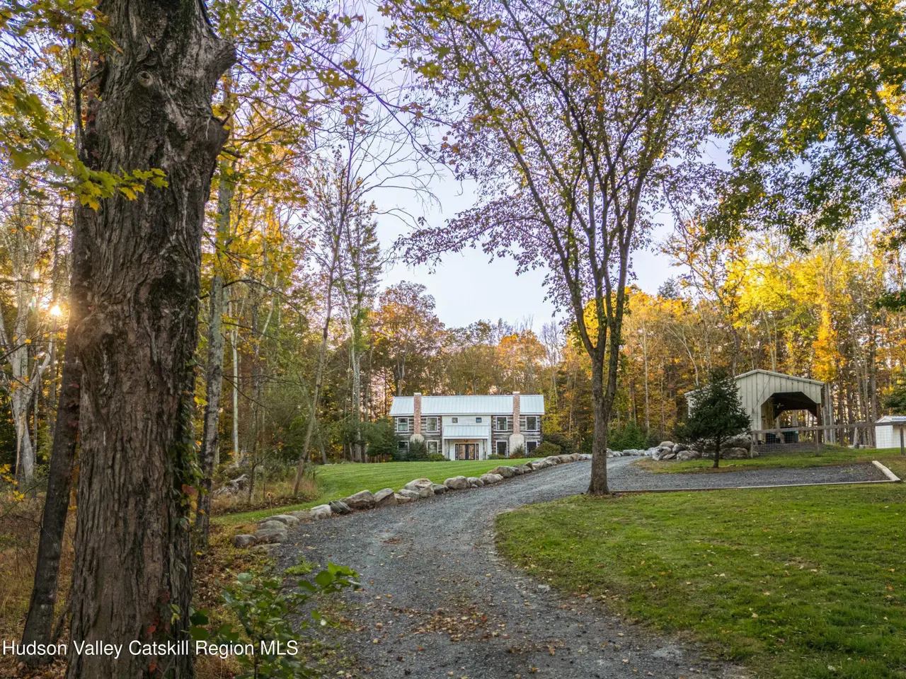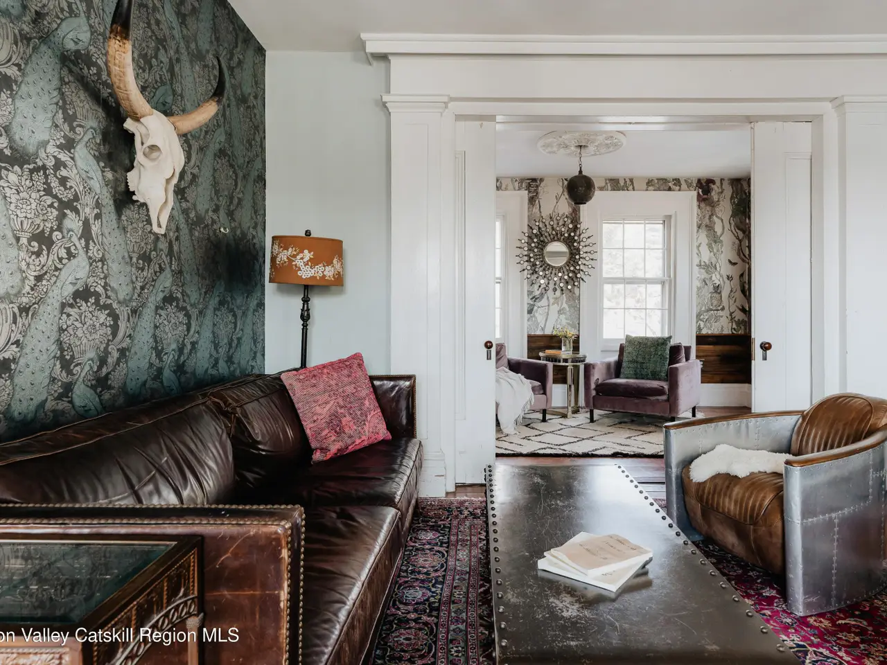Welcome to Bruyn Estate, an exceptional Hudson Valley compound that brings together historic character and modern comfort across two remarkable homes: a lovingly restored 1835 Greek Revival farmhouse on the National Register of Historic Places, and a reimagined log home reconstructed from 1850s barn beams. The property is steeped in history: in the 1800s, it was a sheep farm that supplied wool garment materials to Brooks Brothers, and in the 1980s, it was owned by the great-grandson of the founder of Singer Sewing Machines. Set on 8.5 private acres with pastoral views and open lawns, this established short-term rental and event venue offers beauty, income potential, and timeless charm. The farmhouse captures the timeless appeal of early American architecture, with wide-plank floors and original details carefully preserved. Modern updates include a designer kitchen and primary bath with radiant heat, and stylish wallpaper and fixtures throughout. Two Rumford fireplaces and a pellet stove add warmth and ambiance, and recent improvements include a new furnace and AC unit, plumbing updates, fresh exterior paint, and structural repairs. Steps away, the Dog-Trot-style log home offers a completely different atmosphere: rustic yet refined, with soaring ceilings, reclaimed timber beams, and an open-concept kitchen, dining, and living area at its heart. The main-floor primary suite has a private entrance, while upstairs, four en suite bedrooms each have their own modern personality. A new hot tub enhances the home's outdoor living spaces, ideal for year-round enjoyment.The grounds offer generous space for events, gatherings, and future possibilities. Over the years, Bruyn Estate has hosted countless weddings, retreats, and guests, drawing acclaim in features on HGTV, the Magnolia Network, and beyond. Move-in ready and exceptionally maintained, a furnished option is also available allowing for a seamless transition into a full-time residence, weekend retreat, or turnkey rental operation. Just 90 minutes from New York City and down the road from scenic Mohonk Preserve, Minnewaska State Park, and some of the region's best dining, like One with Land, and Wildflower Farms, this modern estate offers endless possibilities for living, hosting, and creating in the Hudson Valley.