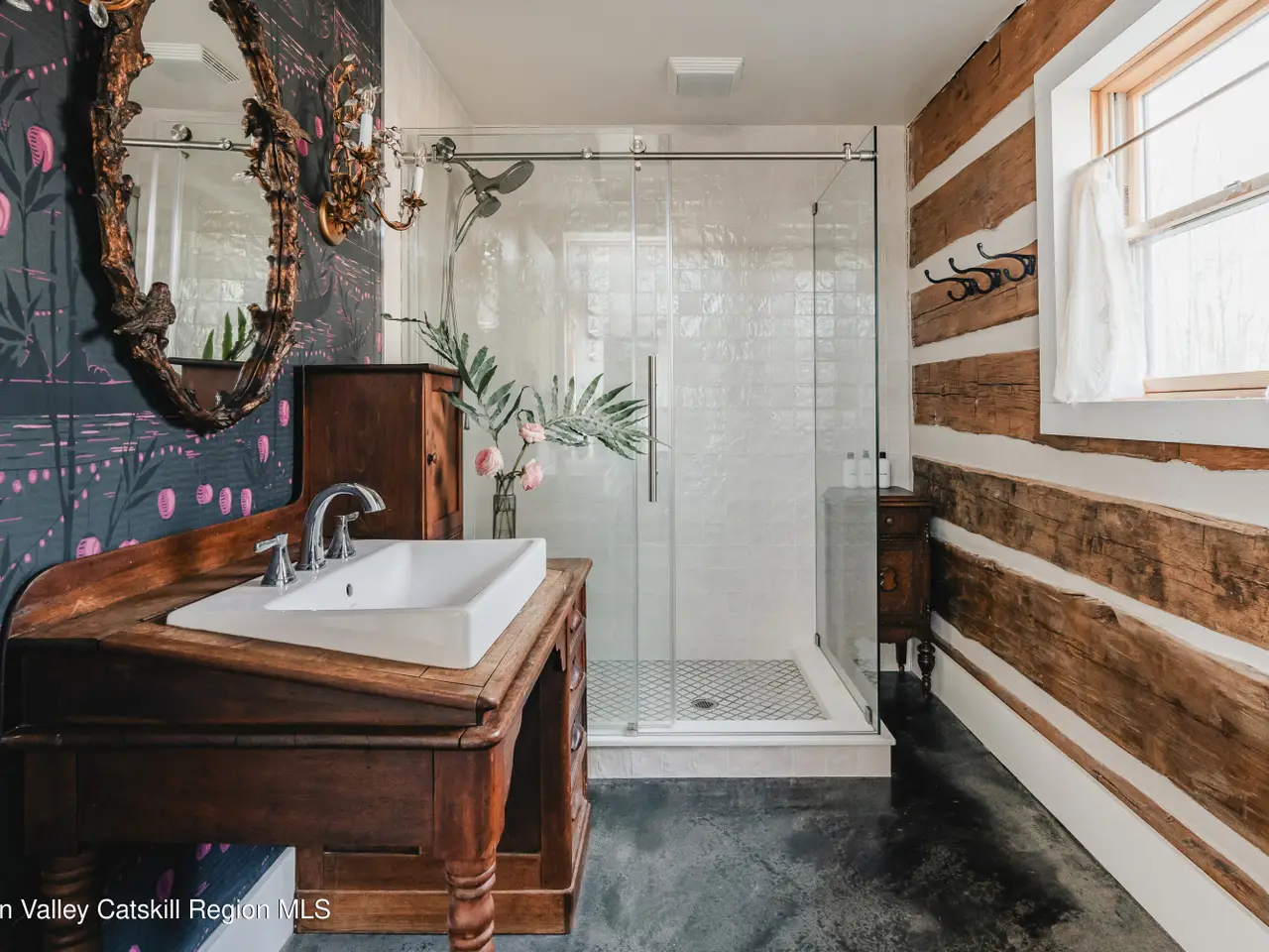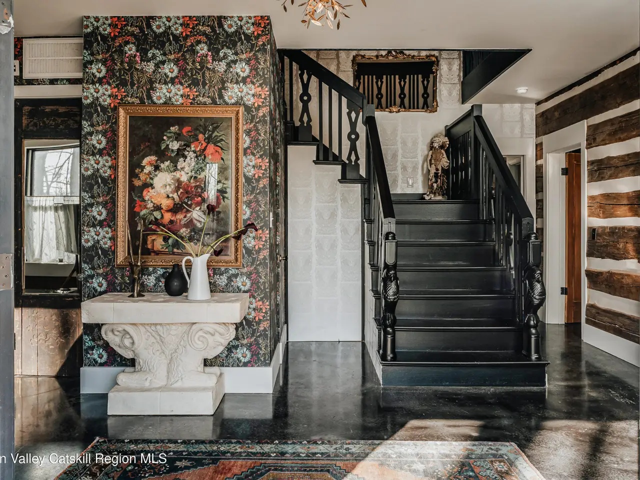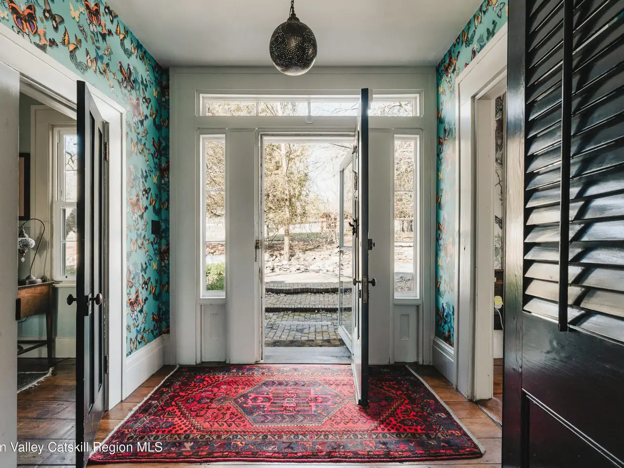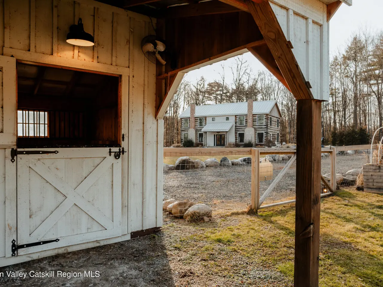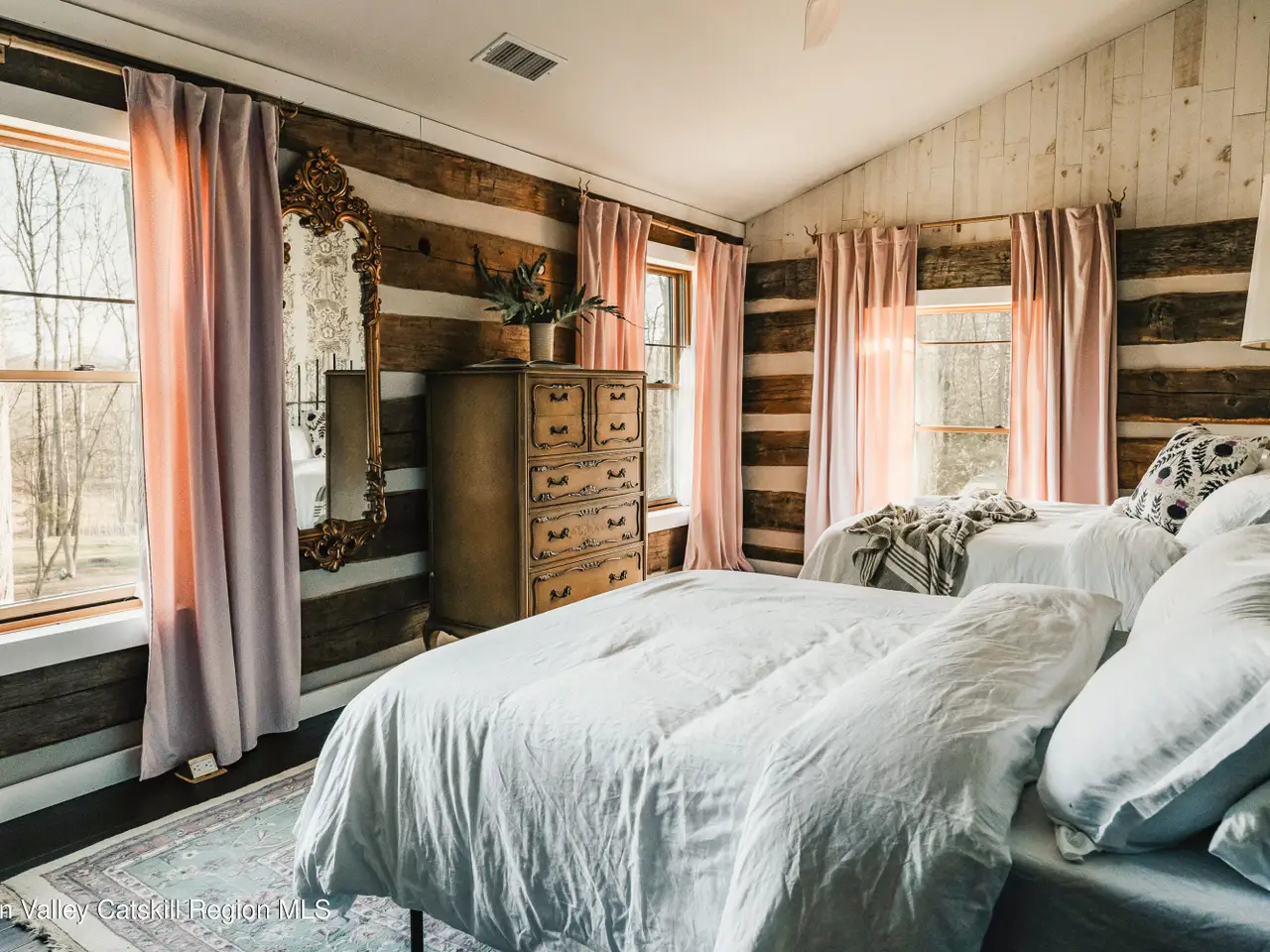 Welcome to Bruyn Estate, an exceptional Hudson Valley compound that brings together historic character and modern comfort across two remarkable homes: a lovingly restored 1835 Greek Revival farmhouse on the National Register of Historic Places, and a reimagined log home reconstructed from 1850s barn beams. The property is steeped in history: in the 1800s, it was a sheep farm that supplied wool garment materials to Brooks Brothers, and in the 1980s, it was owned by the great-grandson of the founder of Singer Sewing Machines. Set on 8.5 private acres with pastoral views and open lawns, this established short-term rental and event venue offers beauty, income potential, and timeless charm. The farmhouse captures the timeless appeal of early American architecture, with wide-plank floors and original details carefully preserved. Modern updates include a designer kitchen and primary bath with radiant heat, and stylish wallpaper and fixtures throughout. Two Rumford fireplaces and a pellet stove add warmth and ambiance, and recent improvements include a new furnace and AC unit, plumbing updates, fresh exterior paint, and structural repairs. Steps away, the Dog-Trot-style log home offers a completely different atmosphere: rustic yet refined, with soaring ceilings, reclaimed timber beams, and an open-concept kitchen, dining, and living area at its heart. The main-floor primary suite has a private entrance, while upstairs, four en suite bedrooms each have their own modern personality. A new hot tub enhances the home's outdoor living spaces, ideal for year-round enjoyment.The grounds offer generous space for events, gatherings, and future possibilities. Over the years, Bruyn Estate has hosted countless weddings, retreats, and guests, drawing acclaim in features on HGTV, the Magnolia Network, and beyond. Move-in ready and exceptionally maintained, a furnished option is also available allowing for a seamless transition into a full-time residence, weekend retreat, or turnkey rental operation. Just 90 minutes from New York City and down the road from scenic Mohonk Preserve, Minnewaska State Park, and some of the region's best dining, like One with Land, and Wildflower Farms, this modern estate offers endless possibilities for living, hosting, and creating in the Hudson Valley.