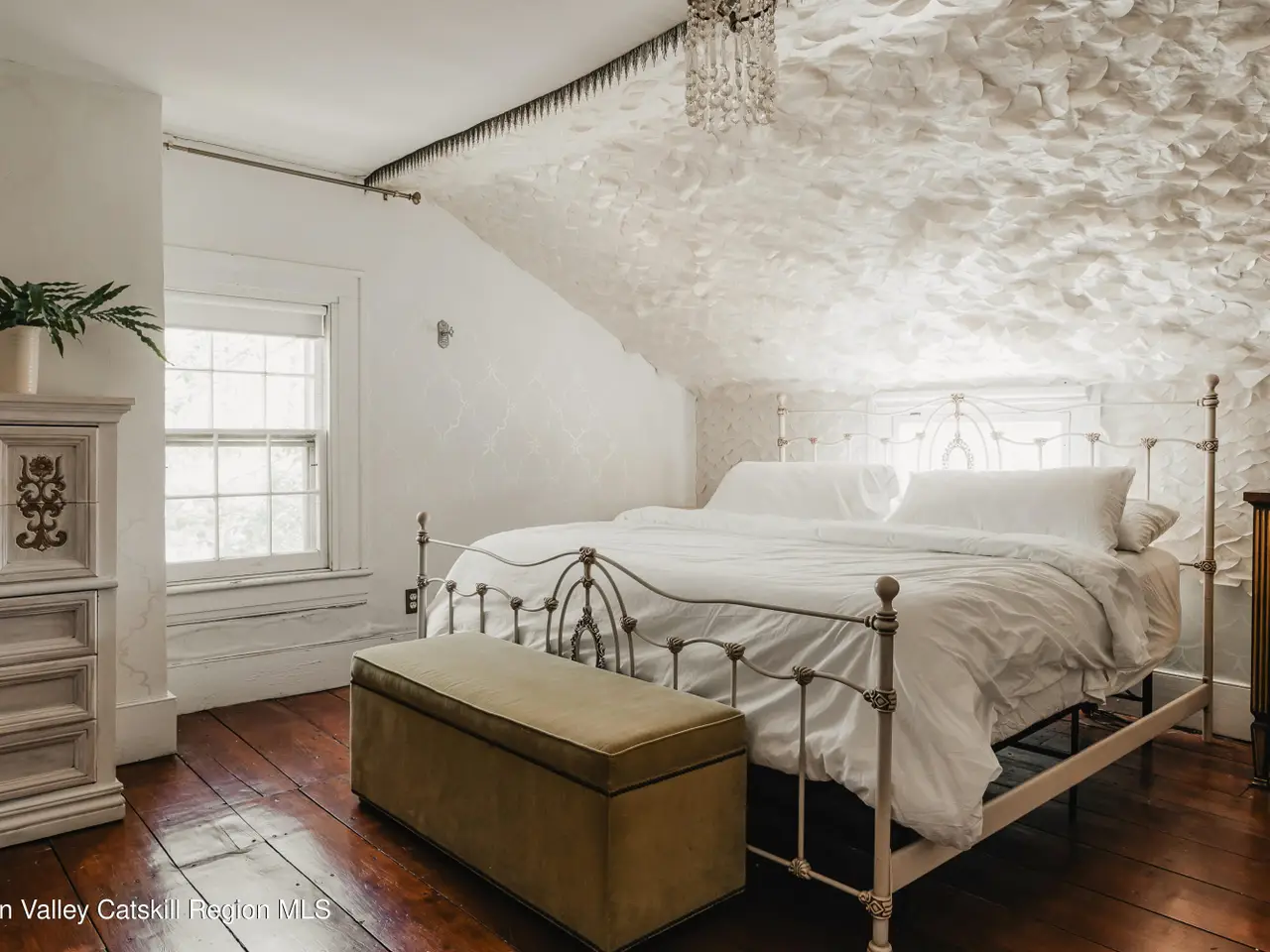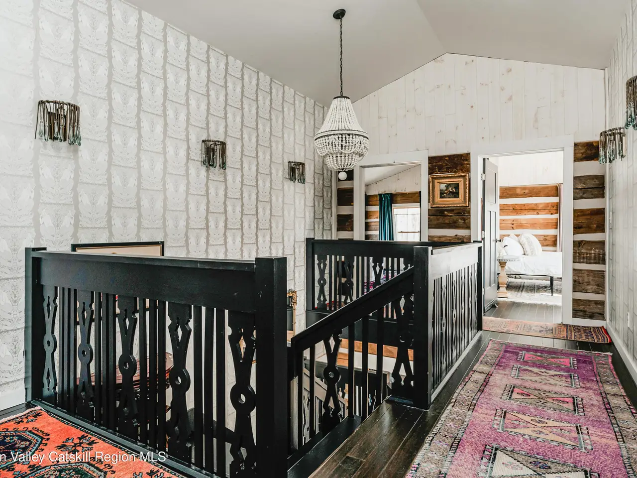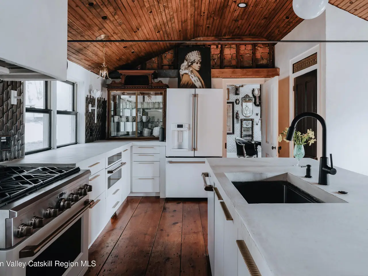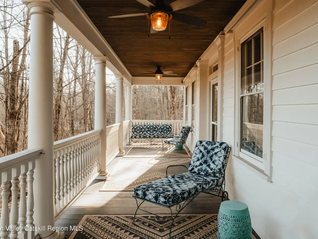 Welcome to Bruyn Estate, an exceptional Hudson Valley compound that brings together historic character and modern comfort across two remarkable homes: a lovingly restored 1835 Greek Revival farmhouse on the National Register of Historic Places, and a reimagined log home reconstructed from 1850s barn beams. The property is steeped in history: in the 1800s, it was a sheep farm that supplied wool garment materials to Brooks Brothers, and in the 1980s, it was owned by the great-grandson of the founder of Singer Sewing Machines. Set on 8.5 private acres with pastoral views and open lawns, this established short-term rental and event venue offers beauty, income potential, and timeless charm. The farmhouse captures the timeless appeal of early American architecture, with wide-plank floors and original details carefully preserved. Modern updates include a designer kitchen and primary bath with radiant heat, and stylish wallpaper and fixtures throughout. Two Rumford fireplaces and a pellet stove add warmth and ambiance, and recent improvements include a new furnace and AC unit, plumbing updates, fresh exterior paint, and structural repairs. Steps away, the Dog-Trot-style log home offers a completely different atmosphere: rustic yet refined, with soaring ceilings, reclaimed timber beams, and an open-concept kitchen, dining, and living area at its heart. The main-floor primary suite has a private entrance, while upstairs, four en suite bedrooms each have their own modern personality. A new hot tub enhances the home's outdoor living spaces, ideal for year-round enjoyment.The grounds offer generous space for events, gatherings, and future possibilities. Over the years, Bruyn Estate has hosted countless weddings, retreats, and guests, drawing acclaim in features on HGTV, the Magnolia Network, and beyond. Move-in ready and exceptionally maintained, a furnished option is also available allowing for a seamless transition into a full-time residence, weekend retreat, or turnkey rental operation. Just 90 minutes from New York City and down the road from scenic Mohonk Preserve, Minnewaska State Park, and some of the region's best dining, like One with Land, and Wildflower Farms, this modern estate offers endless possibilities for living, hosting, and creating in the Hudson Valley.