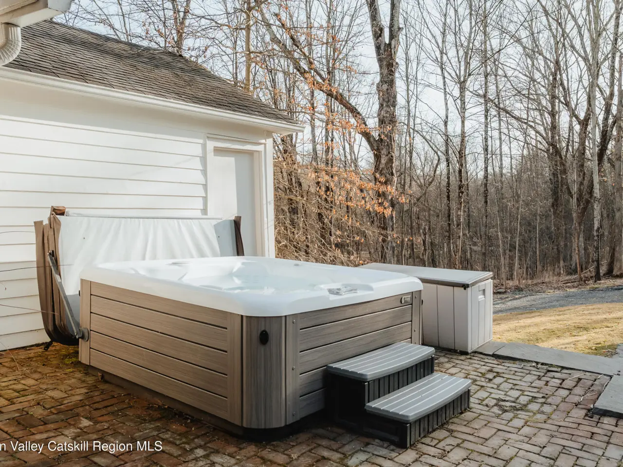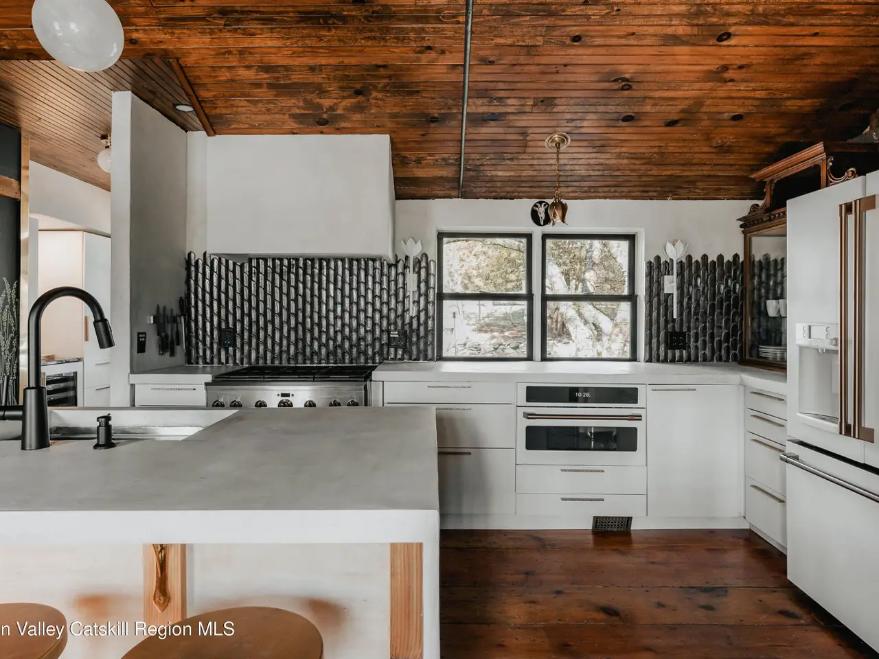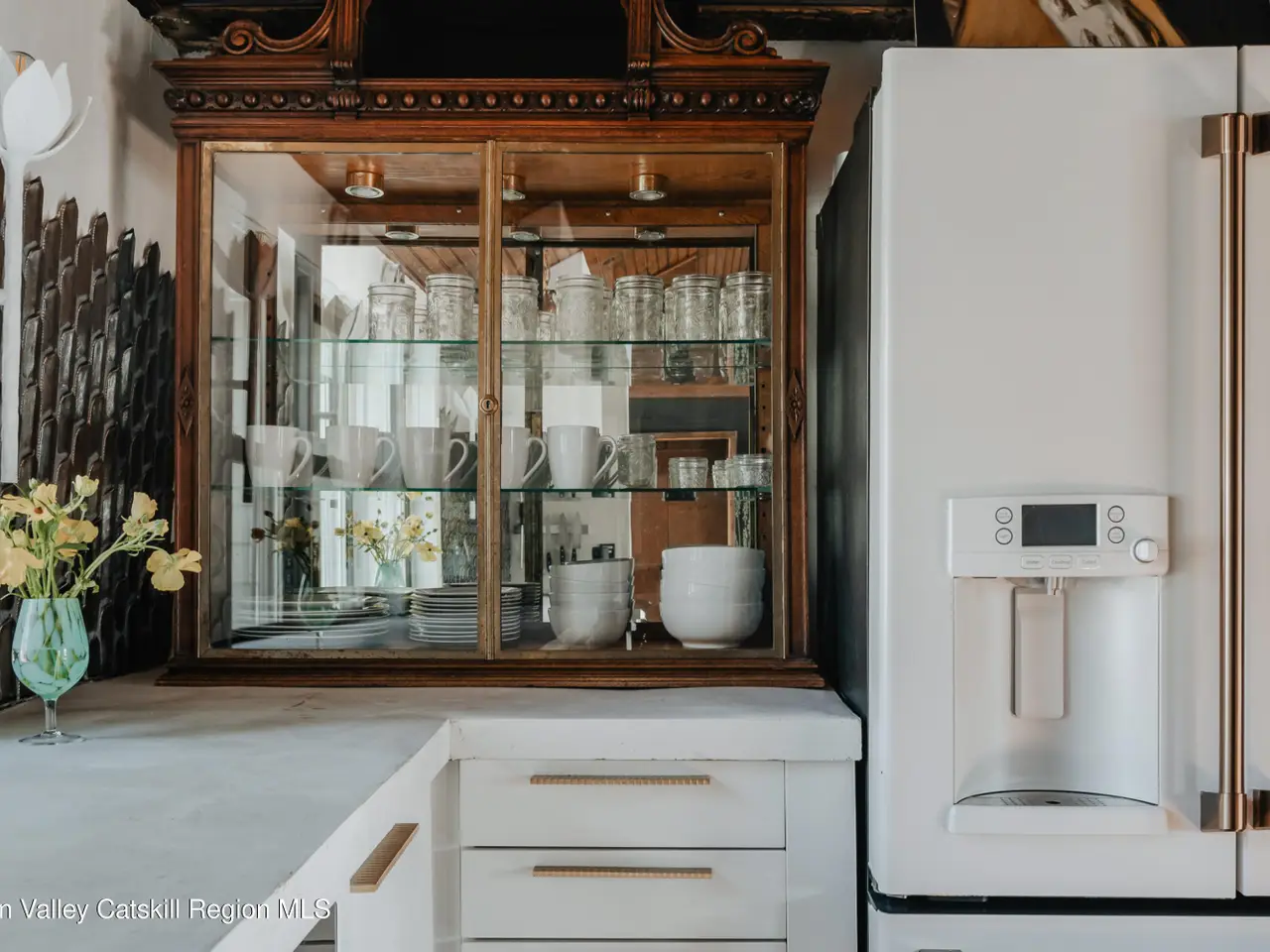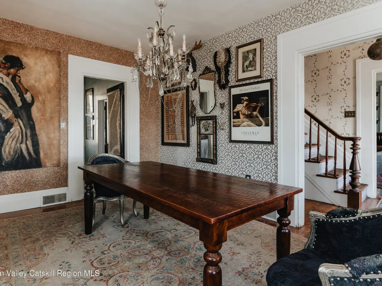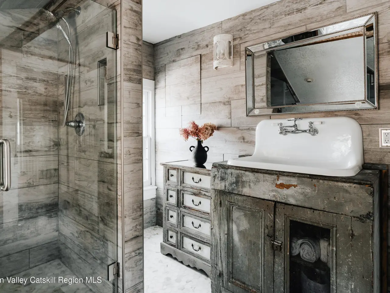 Welcome to Bruyn Estate, an exceptional Hudson Valley compound that brings together historic character and modern comfort across two remarkable homes: a lovingly restored 1835 Greek Revival farmhouse on the National Register of Historic Places, and a reimagined log home reconstructed from 1850s barn beams. The property is steeped in history: in the 1800s, it was a sheep farm that supplied wool garment materials to Brooks Brothers, and in the 1980s, it was owned by the great-grandson of the founder of Singer Sewing Machines. Set on 8.5 private acres with pastoral views and open lawns, this established short-term rental and event venue offers beauty, income potential, and timeless charm. The farmhouse captures the timeless appeal of early American architecture, with wide-plank floors and original details carefully preserved. Modern updates include a designer kitchen and primary bath with radiant heat, and stylish wallpaper and fixtures throughout. Two Rumford fireplaces and a pellet stove add warmth and ambiance, and recent improvements include a new furnace and AC unit, plumbing updates, fresh exterior paint, and structural repairs. Steps away, the Dog-Trot-style log home offers a completely different atmosphere: rustic yet refined, with soaring ceilings, reclaimed timber beams, and an open-concept kitchen, dining, and living area at its heart. The main-floor primary suite has a private entrance, while upstairs, four en suite bedrooms each have their own modern personality. A new hot tub enhances the home's outdoor living spaces, ideal for year-round enjoyment.The grounds offer generous space for events, gatherings, and future possibilities. Over the years, Bruyn Estate has hosted countless weddings, retreats, and guests, drawing acclaim in features on HGTV, the Magnolia Network, and beyond. Move-in ready and exceptionally maintained, a furnished option is also available allowing for a seamless transition into a full-time residence, weekend retreat, or turnkey rental operation. Just 90 minutes from New York City and down the road from scenic Mohonk Preserve, Minnewaska State Park, and some of the region's best dining, like One with Land, and Wildflower Farms, this modern estate offers endless possibilities for living, hosting, and creating in the Hudson Valley.