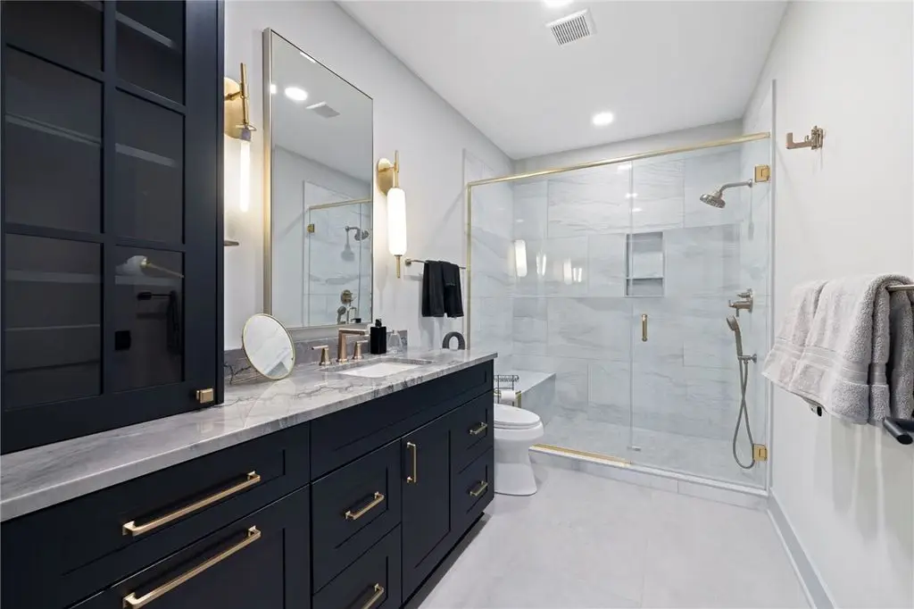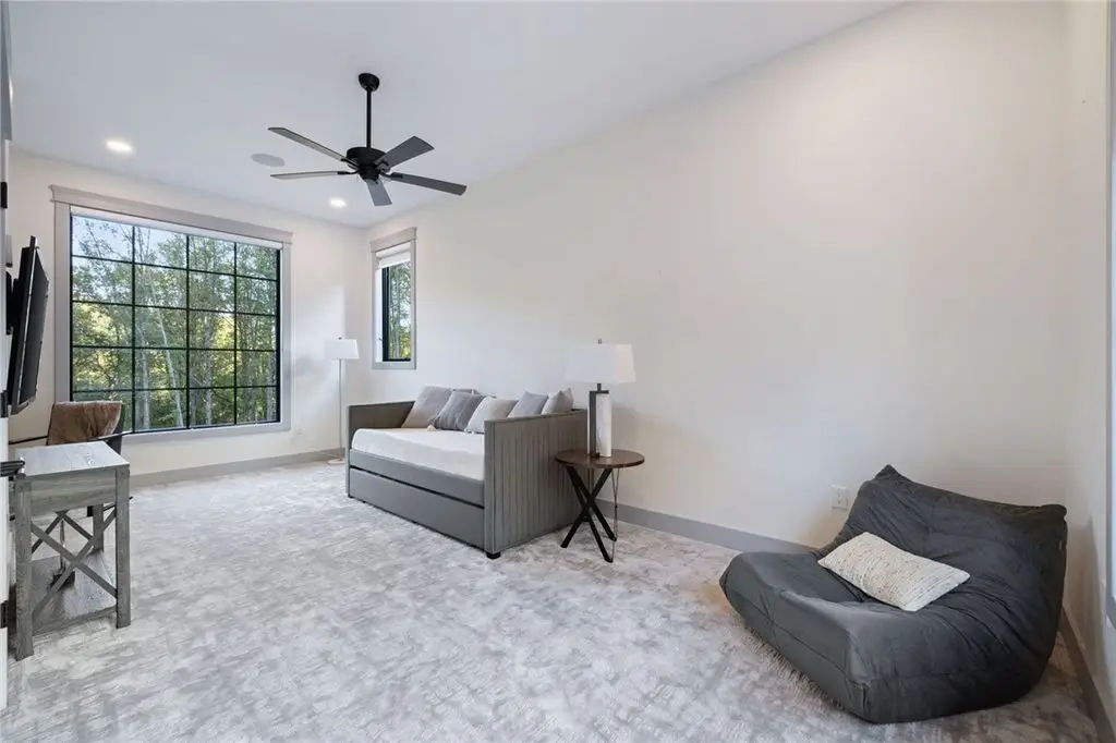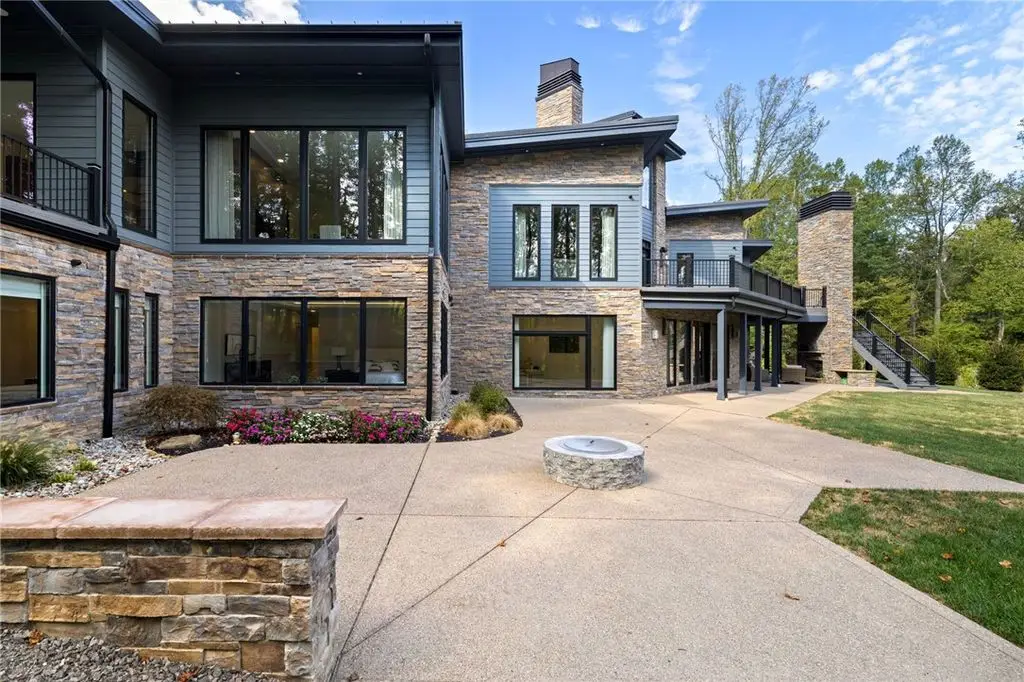 Welcome to a custom-designed home nestled in nature. This home offers privacy and stunning tree-lined views, all just minutes from modern conveniences. Step inside to a stone fireplace that connects the entry and living room. The oversized dining room is ideal for hosting, while the gourmet kitchen is a chef's dream - featuring Sub-Zero refrigerator, Wolf appliances and granite waterfall countertops. The main level also includes a prep kitchen. an office with custom built-ins and plantation shutters, a spacious media room, and owner's suite. Upstairs is a private ensuite bedroom. Smart home technology and radiant in-floor heating. The lower level is a second home, complete with its own gourmet kitchen, prep kitchen, living room, office, bedrooms, laundry, and full-size windows for lots of natural light. Sliding doors open to a covered patio with gas fireplace and kitchen. For the hobbyist or professional, a detached workshop includes a bathroom. Private gated drive and multiple garages.