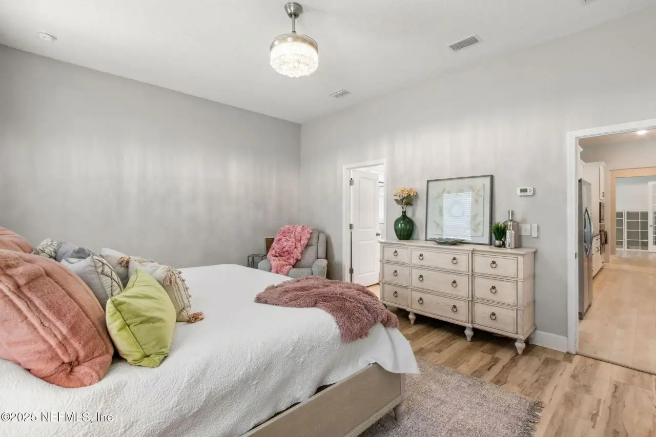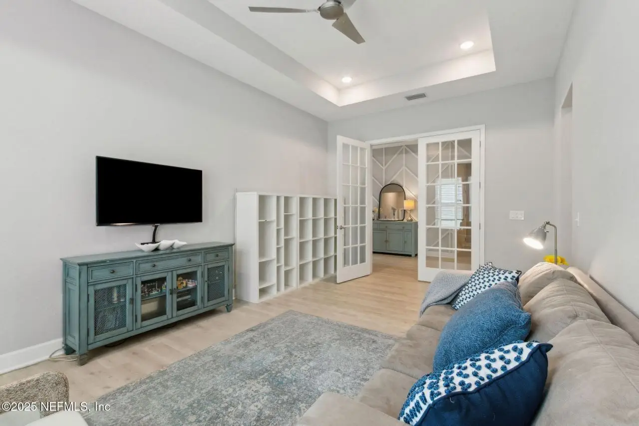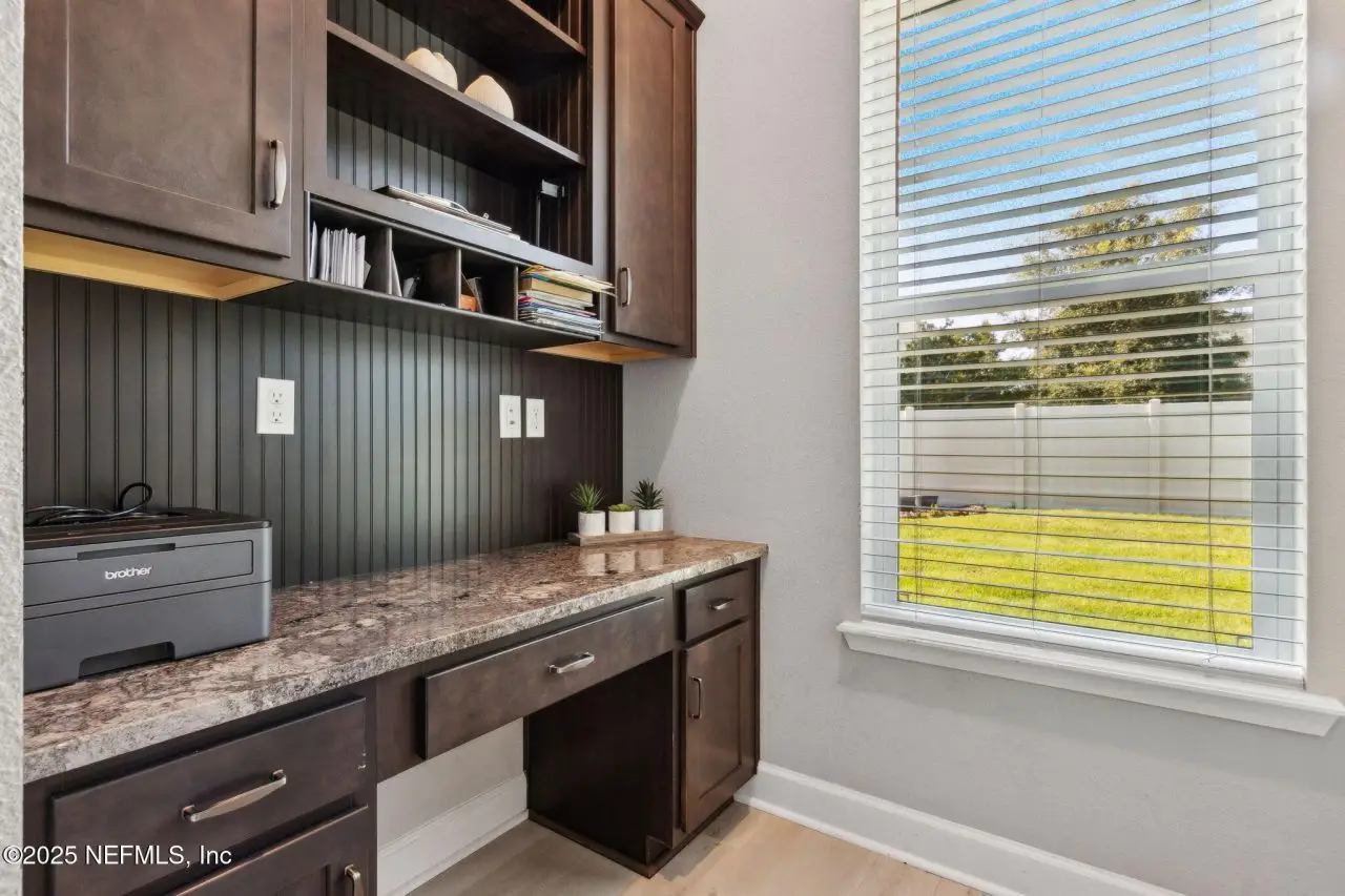 Welcome to 101 Bucktail Avenue - A Stunning Providence Home in Nocatee. This beautifully designed Ellaville model by Providence Homes offers the perfect blend of luxury, comfort, and energy efficiency - all nestled in the highly sought-after Outlook at Twenty Mile neighborhood in Nocatee. With 4 bedrooms, 3 full baths, and a 2-car garage plus a separate 1-car garage, this 100% Energy Star Certified one-story home is as functional as it is stylish. From the manicured landscaping to the elegant exterior, this home impresses from the start. Step inside to a warm and welcoming foyer with a custom chevron wood accent wall, setting the tone for the quality and craftsmanship throughout. At the heart of the home is a chef-inspired kitchen featuring white shaker cabinetry, granite countertops, stainless steel appliances, gas range, oversized island, and walk-in pantry. Opening seamlessly to a bright cafe dining area and spacious family room filled with natural light - perfect for everyday living and entertaining. Just off the cafe is a pocket office - an ideal tucked-away workspace for remote work, homework, or household planning. Nearby, the formal dining/living room with French doors offers flexibility for hosting or additional living space. The private primary suite is a serene retreat, complete with space for a seating area, a large walk-in closet, and a spa-inspired bath with soaking tub, walk-in shower with custom tile and rainhead, and split vanities with a dedicated makeup counter. The laundry room connects directly to the primary closet and also has hallway access for added ease. Three additional bedrooms are located on the opposite side of the home. Two share a Jack-and-Jill bath, while the third is near a full guest bath - ideal for visitors, teens, or versatile use. Additional features include a built-in drop zone with storage near the garage entry, a spacious laundry room with folding space, and a 2-car garage plus a separate 1-car garage bay - perfect for a golf cart, workshop, or extra storage. Enjoy the incredible lifestyle that Nocatee offers - top-rated St. Johns County schools, resort-style amenities, miles of trails, splash parks, community events, and a close-knit neighborhood vibe. All just minutes from beaches, shopping, dining, and major roadways. LOVE WHERE YOU LIVE!
