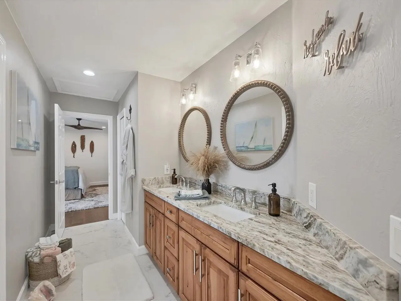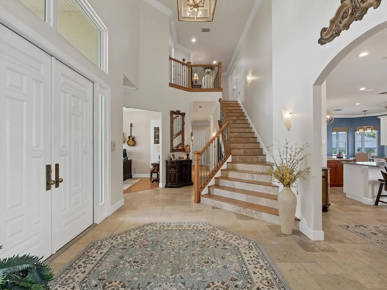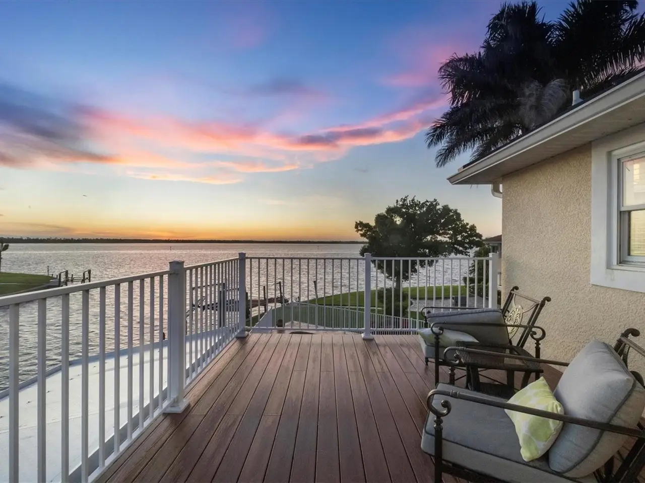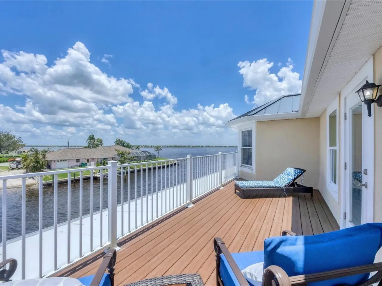 Introducing "River Breeze at Paradise Point" the whimsical name of this breathtaking property, affectionately bestowed by the current owners. This stunning waterfront estate, stretching across 0.39 acres, is perched along the Myakka River with quick access to Charlotte Harbor and a 30-minute boat ride to the Gulf. It's every boater's dream to the best fishing in Southwest Florida, featuring 185 feet of concrete seawall, a 167-foot captain's walk, and a 2023 metal-roofed boathouse with a 16,000 lb remote-controlled boat lift. Enjoy dolphin, manatee, and bald eagle sightings, or cast a line for record snook, world-renown tarpon, and redfish all from your backyard. The home offers 3,825 sq ft of living space and a spacious, well-organized 1,327 sq ft 4+ car garage with 10.5-foot ceilings. Inside, the soaring 20-foot foyer with a sweeping staircase leads into a bright music room with 12-foot bamboo tray ceiling, and an entertainer's dream kitchen featuring a massive quartz island, updated cabinetry, stainless appliances, and three built-in dishwashers. The kitchen flows seamlessly into the dining and bar areas and out to a 56-foot screened patio and extended lanai perfect for year-round indoor-outdoor living. Step out to the heated saltwater pool, surrounded by open-air lounge space ideal for relaxing in the Florida sunshine. The primary suite is a private retreat with a sitting area, two walk-in closets, a luxurious 14x14 bathroom with a 5x7 glass shower, and direct access to a private waterfront balcony. The primary guest suite also features a private balcony and river views. Every bedroom is en suite, ensuring comfort and privacy for guests. Throughout the home, enjoy travertine and engineered wood flooring with porcelain tile in 2nd level bathrooms, detailed crown molding, and abundant storage including multiple custom closets. Additional recent upgrades include a new standing seam metal roof (house and boathouse), two new A/C units with whole-home UV filtration, spray foam insulation, PECS plumbing system, impact-resistant windows and doors throughout, and fresh interior/exterior paint. The pool features a new heat pump, chlorine generator, and variable-speed pump, while rebuilt decks and upgraded kitchen and baths further elevate the home's quality and style. Tucked away in Gulf Cove, a hidden gem community known for its quiet streets, friendly neighbors, and walkable, bike-friendly atmosphere, this exceptional home offers luxury, comfort, and breathtaking water views delivering unmatched waterfront living in a peaceful coastal setting.