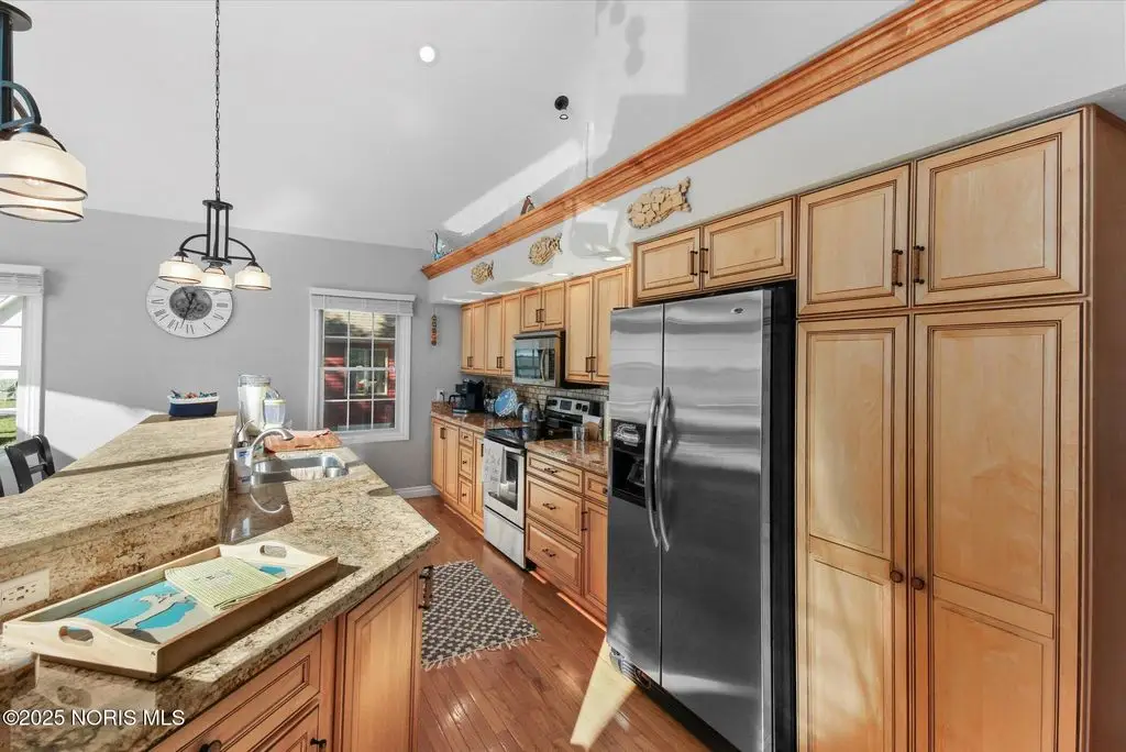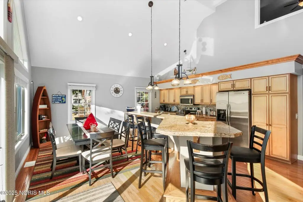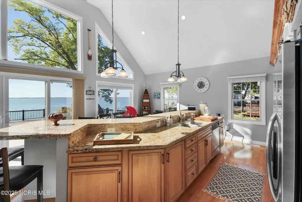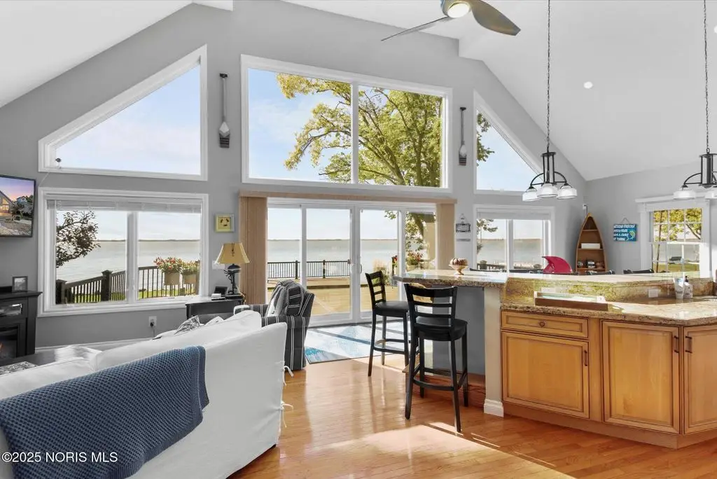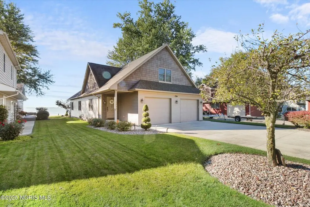 Experience waterfront living at its finest with this stunning custom home on Sandusky Bay! This stunning home is perfect for entertaining and soaking in the beauty of nature. With a breathtaking window wall that showcases sunrises and floods the space with natural light, the vaulted ceilings in the great room elevate the experience. The heart of the home is the spectacular kitchen, featuring granite countertops, custom cabinetry, and a massive island that invites gatherings. Enjoy the convenience of a first-floor laundry and a luxurious master suite. Step outside to a large deck, hop on your boat, and embrace the bay as your personal playground. With recent upgrades like a newer dock, furnace, water heater, and irrigation system, this home is ready for you to make unforgettable memories!