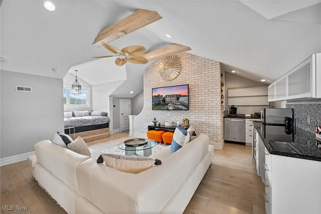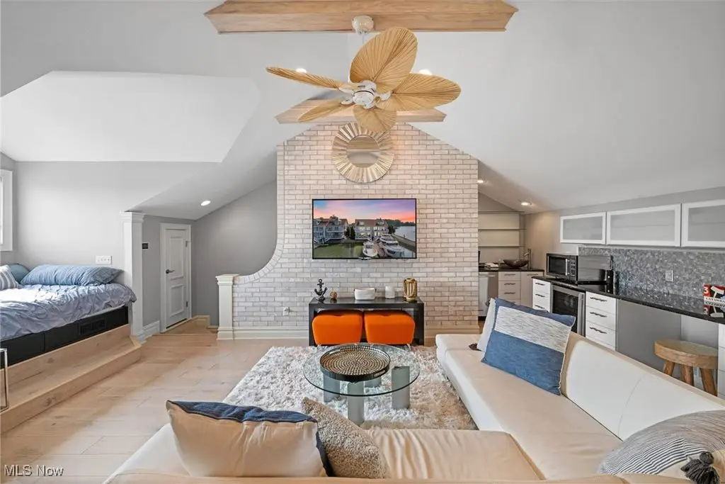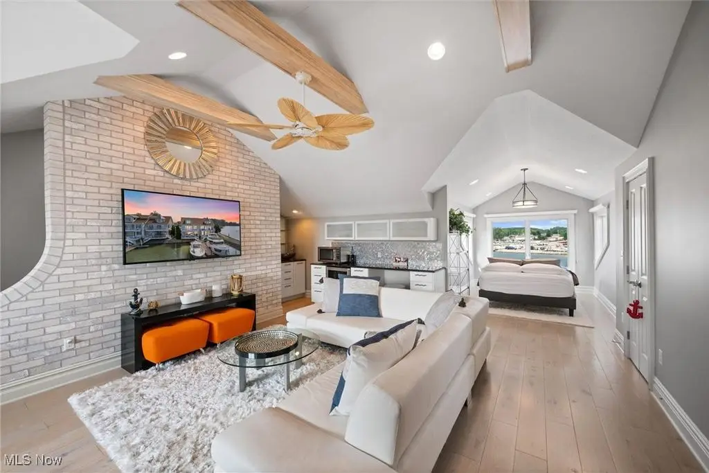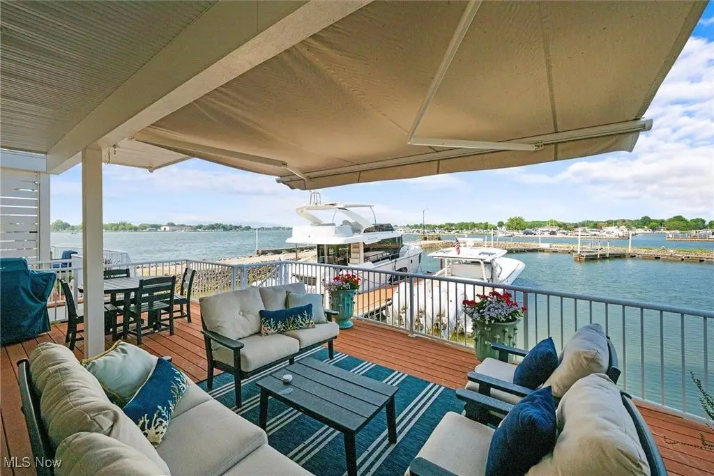 Stunning Waterfront Townhome on Catawba Island - 50' Dock Slip + Luxury Upgrades!Waterfront living at its best in this beautifully updated 3-level end-unit townhome in West Harbor, on Catawba Island. Includes a premium 50' dock slip (potential for additional dockage). Enjoy open-concept living with incredible water views, new luxury vinyl plank flooring (2023), and a spacious great room with fireplace that flows into a gourmet kitchen and dining area with wet bar - new beverage fridge. Two patio doors open to an oversized patio with awning steps from the water and your dock slip. Gourmet kitchen features bar seating, high-end appliances, and beautiful cabinetry/counters. Crown molding throughout main level and neutral color palette throughout. Second floor offers two bedrooms and a full hall bath. Spacious primary suite with balcony, two walk-in closets w/organizers, ensuite bath, and gorgeous views. Third floor includes a large bonus room with kitchenette, multiple sleeping areas, and full bath perfect for guests. Attached 2-car garage, half bath off foyer, ample storage. New since 2023: flooring, paint, light fixtures, AC, Wi Fi thermostats (all levels), R/O system, dishwasher, refrigerator. Close to CIC Club, Gem Beach, and island destinations. Optional furnishings with some exclusions. Don't miss this opportunity to live in Vacationland's premier waterfront community!