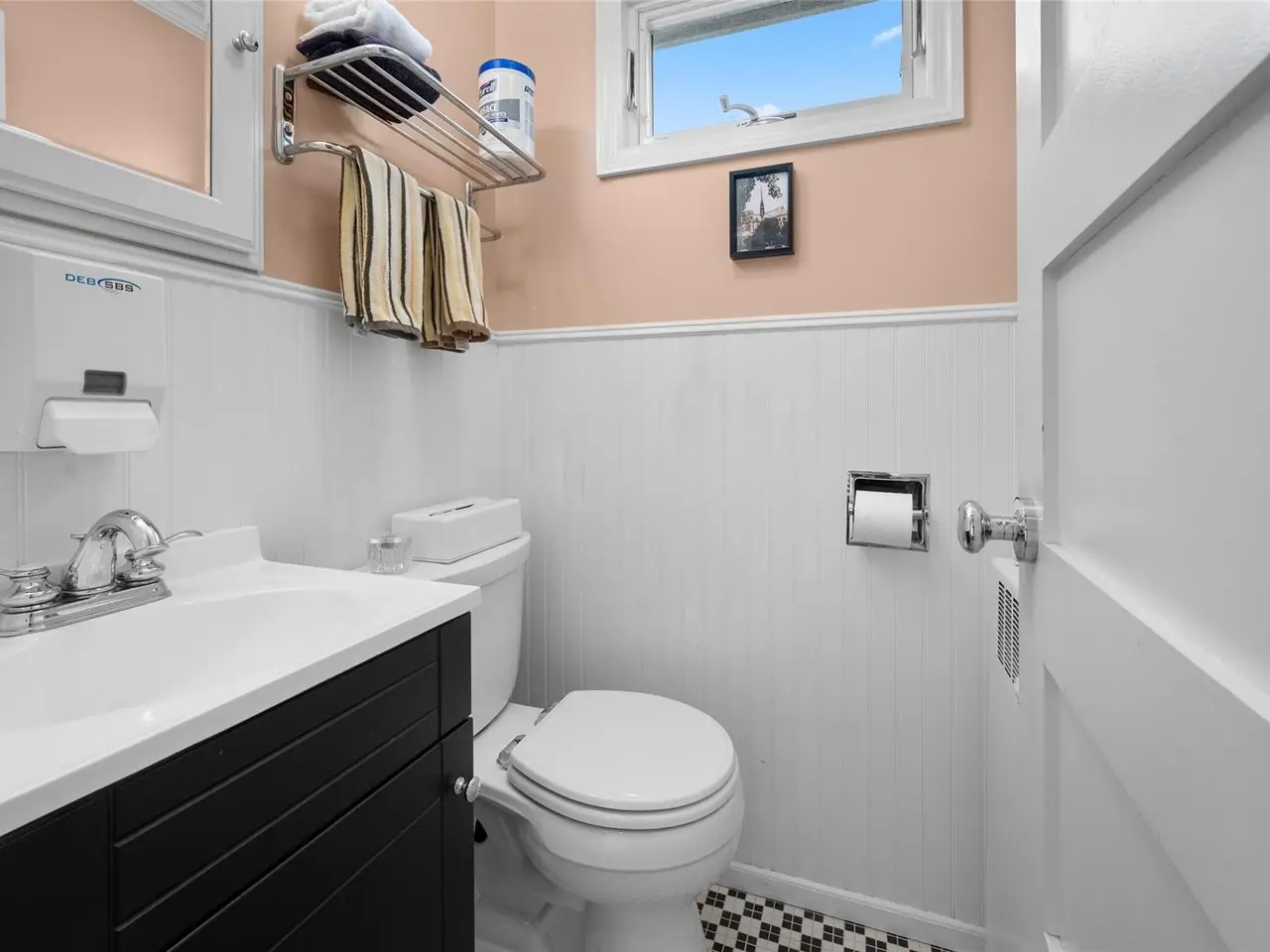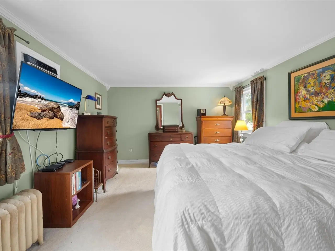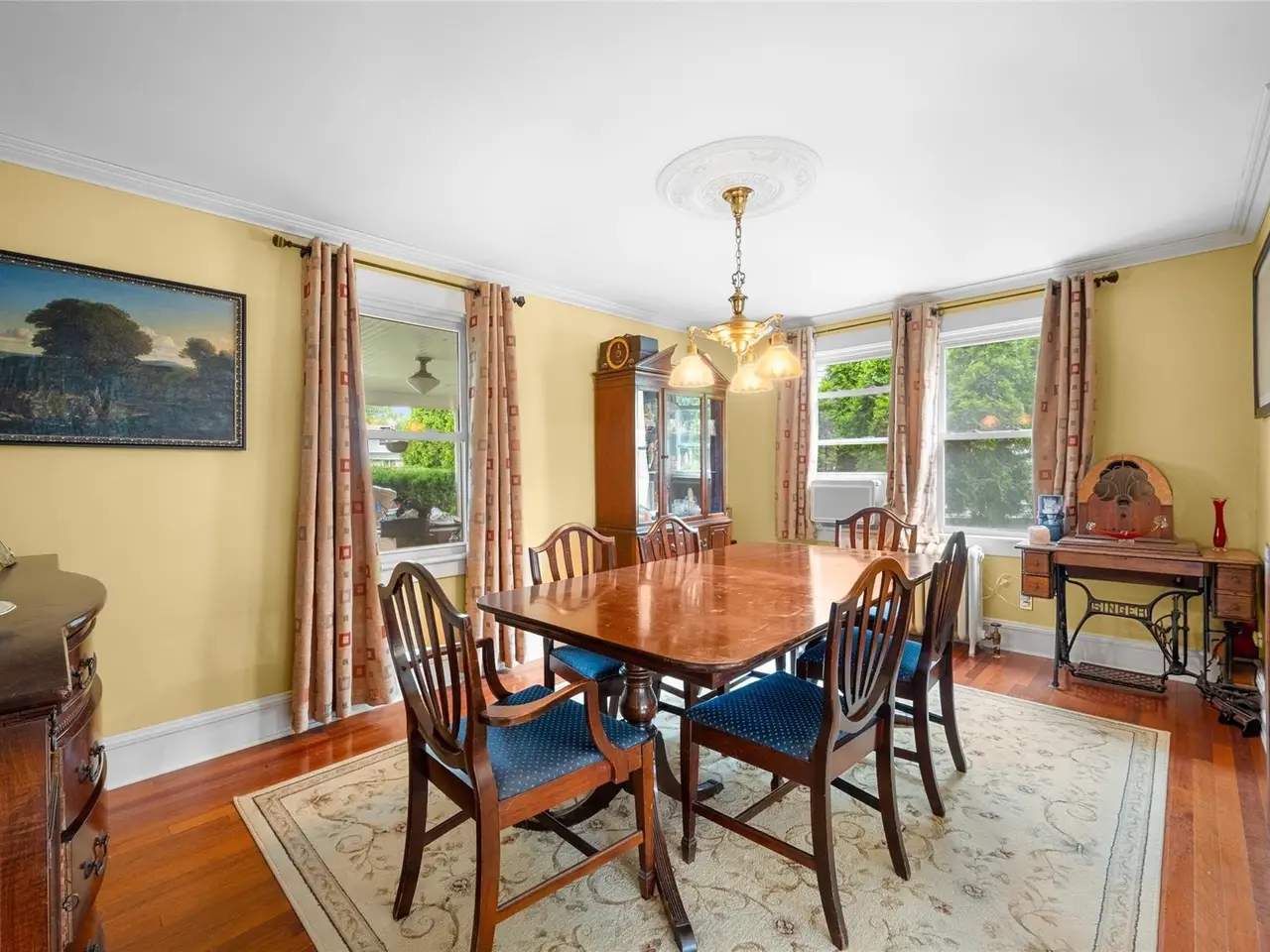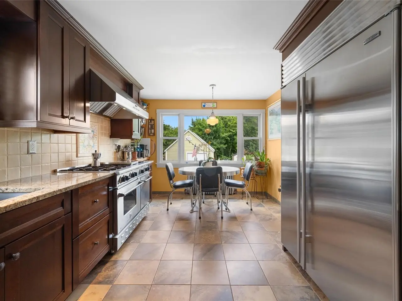Welcome to 27 Neulist Avenue—an exceptional Colonial home on a quiet dead-end street in Port Washington. Set on an expansive 8000 sqft. lot, this property features a deep, private yard that backs onto town-owned green space for added privacy. A charming covered porch leads into a well-designed interior boasting 3 bedrooms, 2 full baths, and a powder room. The large living room includes vaulted ceilings with architectural steel beams, custom stained glass, and seamless flow to the dining room and kitchen. The eat-in kitchen is a chef’s dream, outfitted with a 48” Blue Star gas range with dual ovens, 1200 CFM Thermador range hood, 48” Sub-Zero fridge/freezer, Bosch dishwasher, and Kitchenaid microwave. The kitchen opens to a large covered porch, ideal for entertaining. Upstairs, the primary bedroom features a WiFi-enabled Friedrich A/C unit, ample closet space, and hardwood floors. Two additional bedrooms offer flexibility, and the full bath includes radiant heated floors, and Kohler cast iron soaking tub. The finished lower level includes a full bath with shower and a home theater ready area complete with an 85” Sony Wega 4K TV, theater curtains, wiring, and specialty lighting—all included in the sale. The professional sound equipment and theater seating are not included but are negotiable. Additional spaces include abundant storage, dual washer/dryers, a utility closet, and separate walk-out access to the driveway. The detached 2-car garage is approx. 400 sq ft. Don’t miss this opportunity to own a one-of-a-kind home in Port Washington.