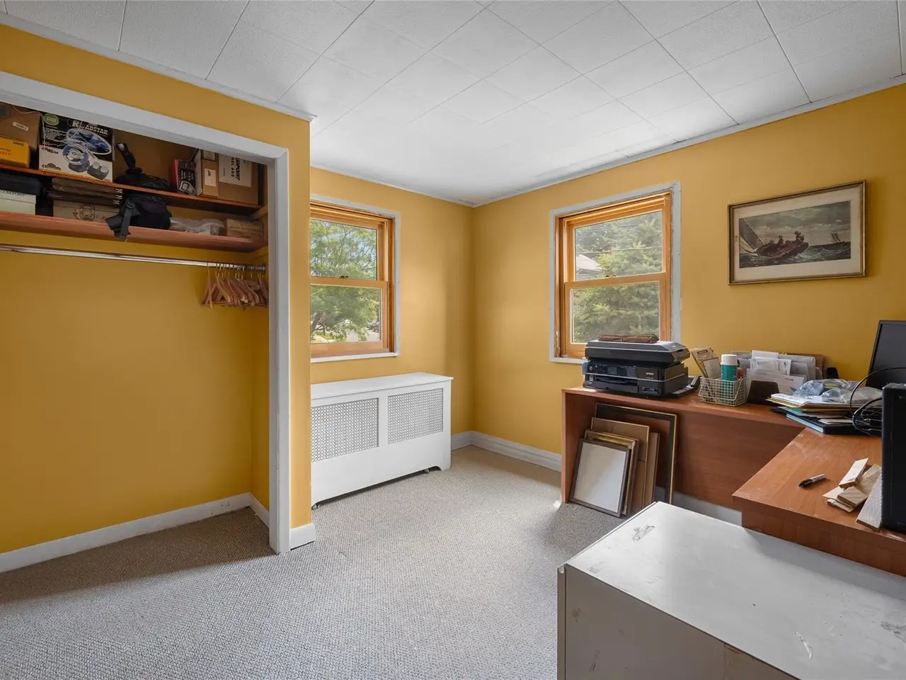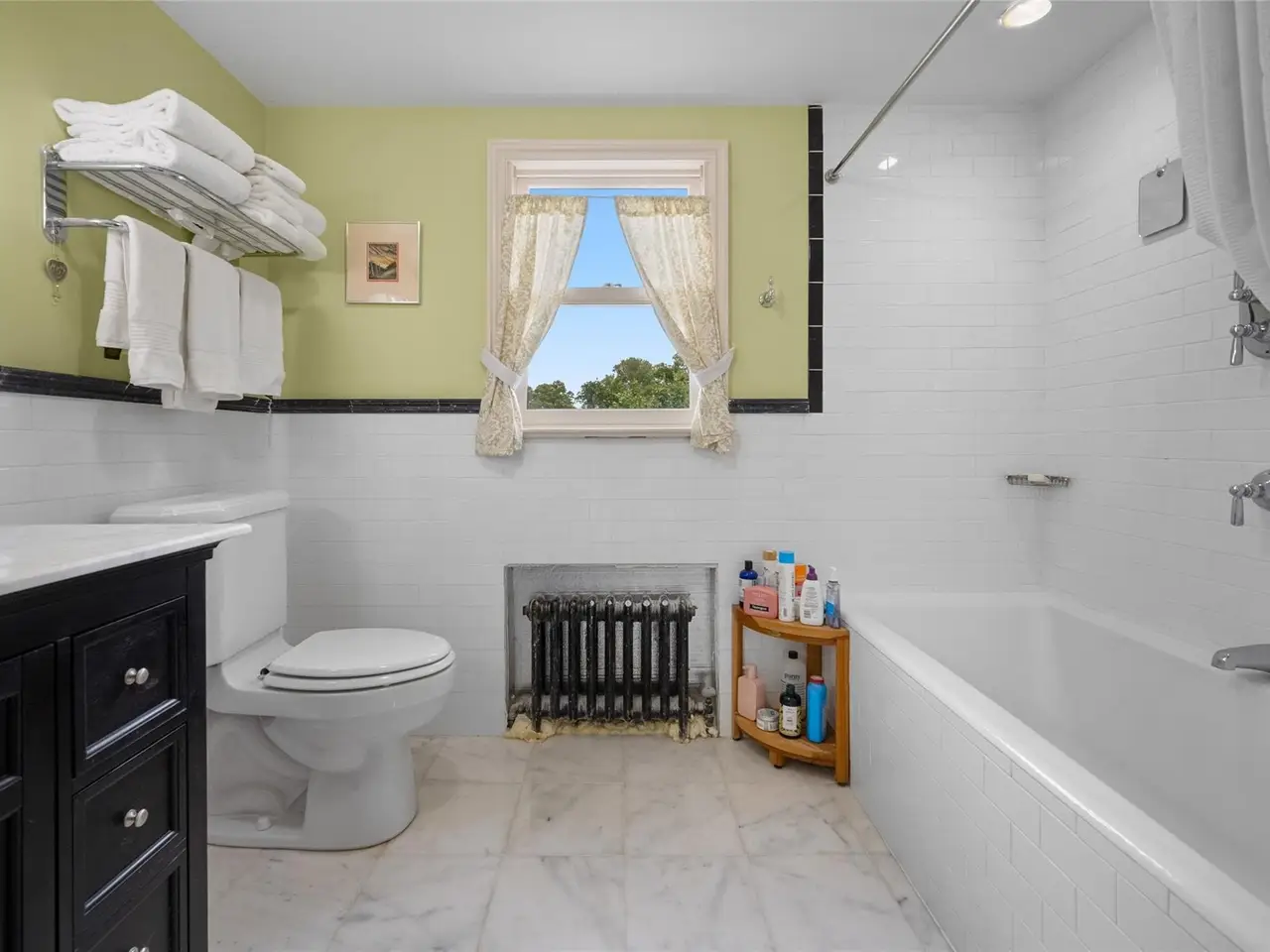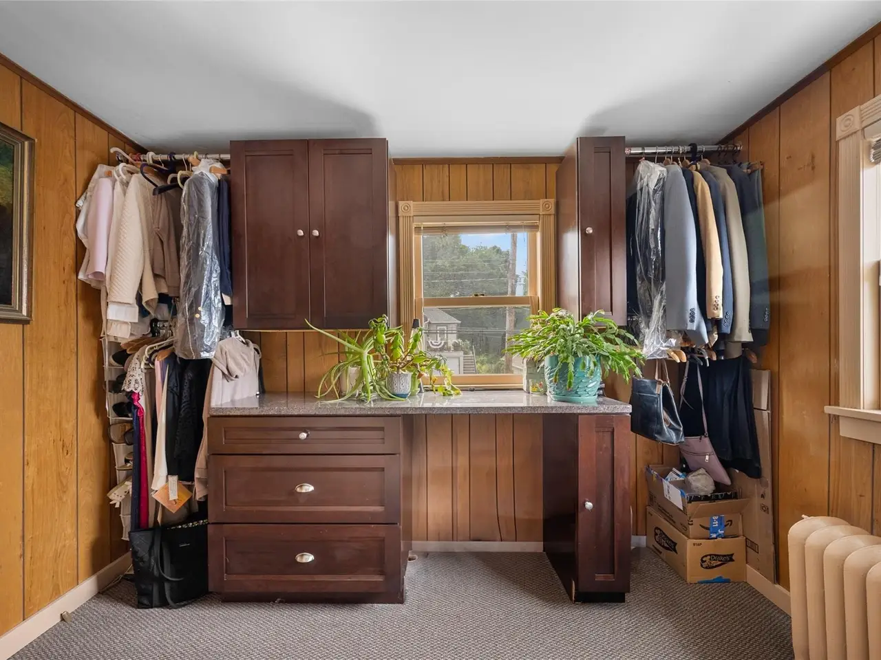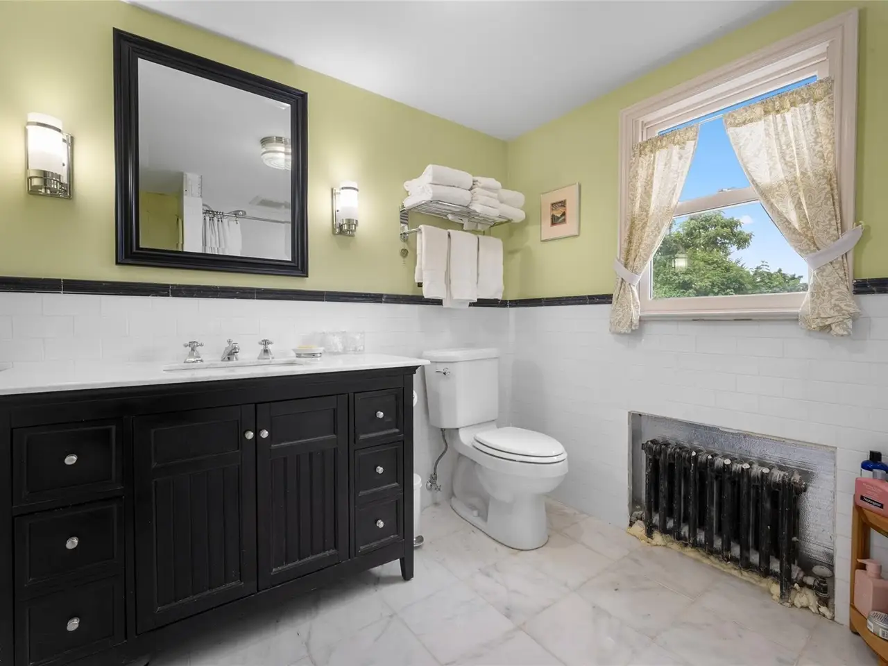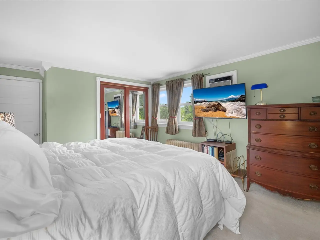 Welcome to 27 Neulist Avenue—an exceptional Colonial home on a quiet dead-end street in Port Washington. Set on an expansive 8000 sqft. lot, this property features a deep, private yard that backs onto town-owned green space for added privacy. A charming covered porch leads into a well-designed interior boasting 3 bedrooms, 2 full baths, and a powder room. The large living room includes vaulted ceilings with architectural steel beams, custom stained glass, and seamless flow to the dining room and kitchen. The eat-in kitchen is a chef’s dream, outfitted with a 48” Blue Star gas range with dual ovens, 1200 CFM Thermador range hood, 48” Sub-Zero fridge/freezer, Bosch dishwasher, and Kitchenaid microwave. The kitchen opens to a large covered porch, ideal for entertaining. Upstairs, the primary bedroom features a WiFi-enabled Friedrich A/C unit, ample closet space, and hardwood floors. Two additional bedrooms offer flexibility, and the full bath includes radiant heated floors, and Kohler cast iron soaking tub. The finished lower level includes a full bath with shower and a home theater ready area complete with an 85” Sony Wega 4K TV, theater curtains, wiring, and specialty lighting—all included in the sale. The professional sound equipment and theater seating are not included but are negotiable. Additional spaces include abundant storage, dual washer/dryers, a utility closet, and separate walk-out access to the driveway. The detached 2-car garage is approx. 400 sq ft. Don’t miss this opportunity to own a one-of-a-kind home in Port Washington.