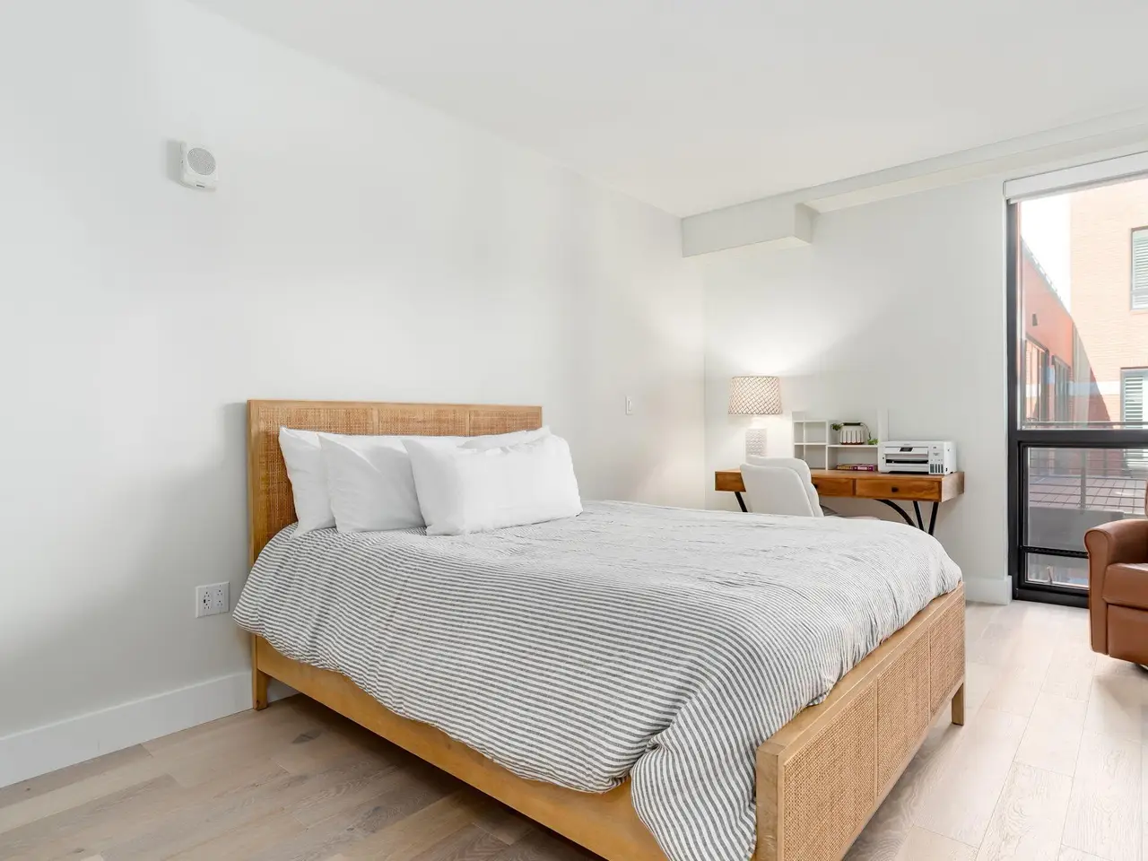 Stunning, sun-drenched corner unit with floor-to-ceiling glass and sparkling water views! Pristine, two-bedroom, two-bath condominium in Hobson's Landing features a gorgeous kitchen with custom walnut cabinetry and crown molding. Gracious entry hall, ensuite primary bedroom with spacious walk-in closet, plus an ensuite guest bedroom. Deeded garage parking for two cars, including a private EV charging station. Building amenities include a lobby with concierge, club room with TV, deck, fireplace and full kitchen, landscaped terraces, fitness center, shared work/study space, dog wash, reservable guest suite, shared bikes and Tesla. Fabulous lifestyle in the midst of Portland's historic waterfront neighborhood!