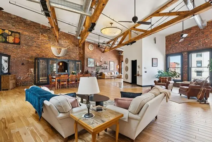 A Rare Urban Gem in the Heart of Portland Step into a space unlike anything else in Portland—where New York City loft style meets coastal Maine charm. This one-of-a-kind condo stuns with soaring 25-foot ceilings, exposed brick woven throughout every room, and expansive windows that flood the home with natural light and frame sweeping views of the city skyline and Back Cove. From the moment you step out of your private elevator, you're welcomed into a flexible, open-concept living space with an artistic soul. To the left, a sun-drenched music nook—where bands have played and creativity thrives—sits in front of three oversized windows lined with vibrant greenery. The living area flows effortlessly to a wall of custom-built bookshelves and gallery-worthy walls perfect for your art collection. In the front of the unit, a cozy lounge nook with city views offers the perfect place to unwind. The kitchen is open and social, with a dining area that comfortably fits a large table—ideal for dinner parties and gatherings. Nearby, a built-in wine cellar adds a touch of curated luxury. The main level features a private guest room and a warm, inviting primary suite with more exposed brick, a soaking tub, and a spacious bathroom. Head up to the lofted second floor for a media room or quiet reading space, all set against striking architectural beams. On the third level, you'll find two private decks—one overlooking Casco Bay, the other gazing out over the city and Monument Square. This level offers flexible space for a home gym, creative studio, or additional guest room. This home is made for entertaining and impressing, nestled in one of Portland's most walkable locations. Step outside to enjoy award-winning restaurants, boutique shopping, live music, and everything the city has to offer. A truly rare opportunity—urban luxury with Portland personality. This is city living at its most inspired.