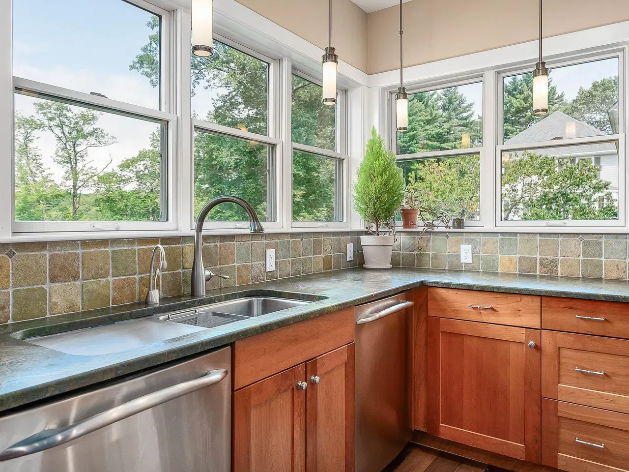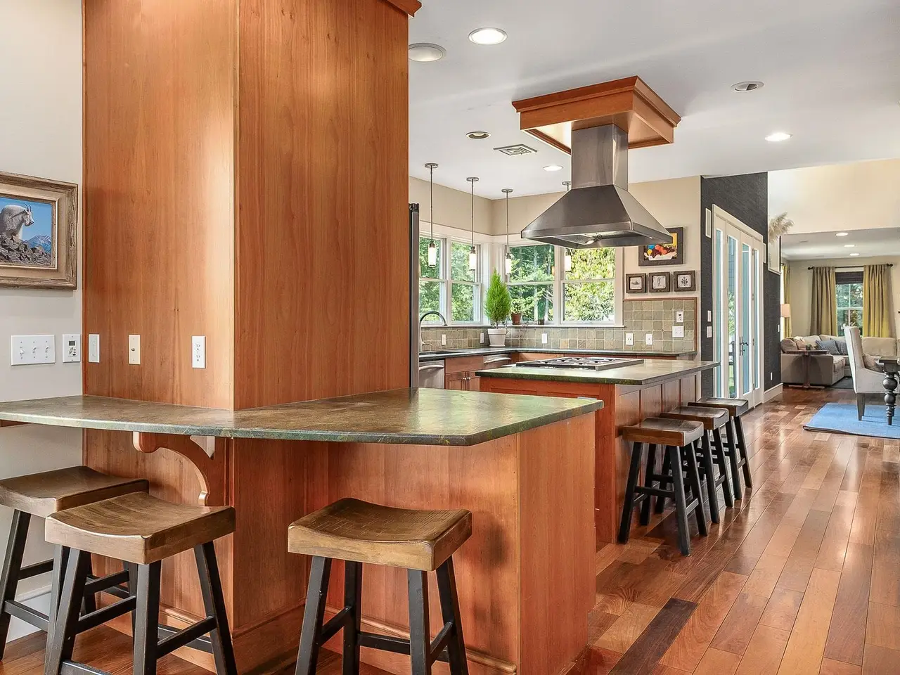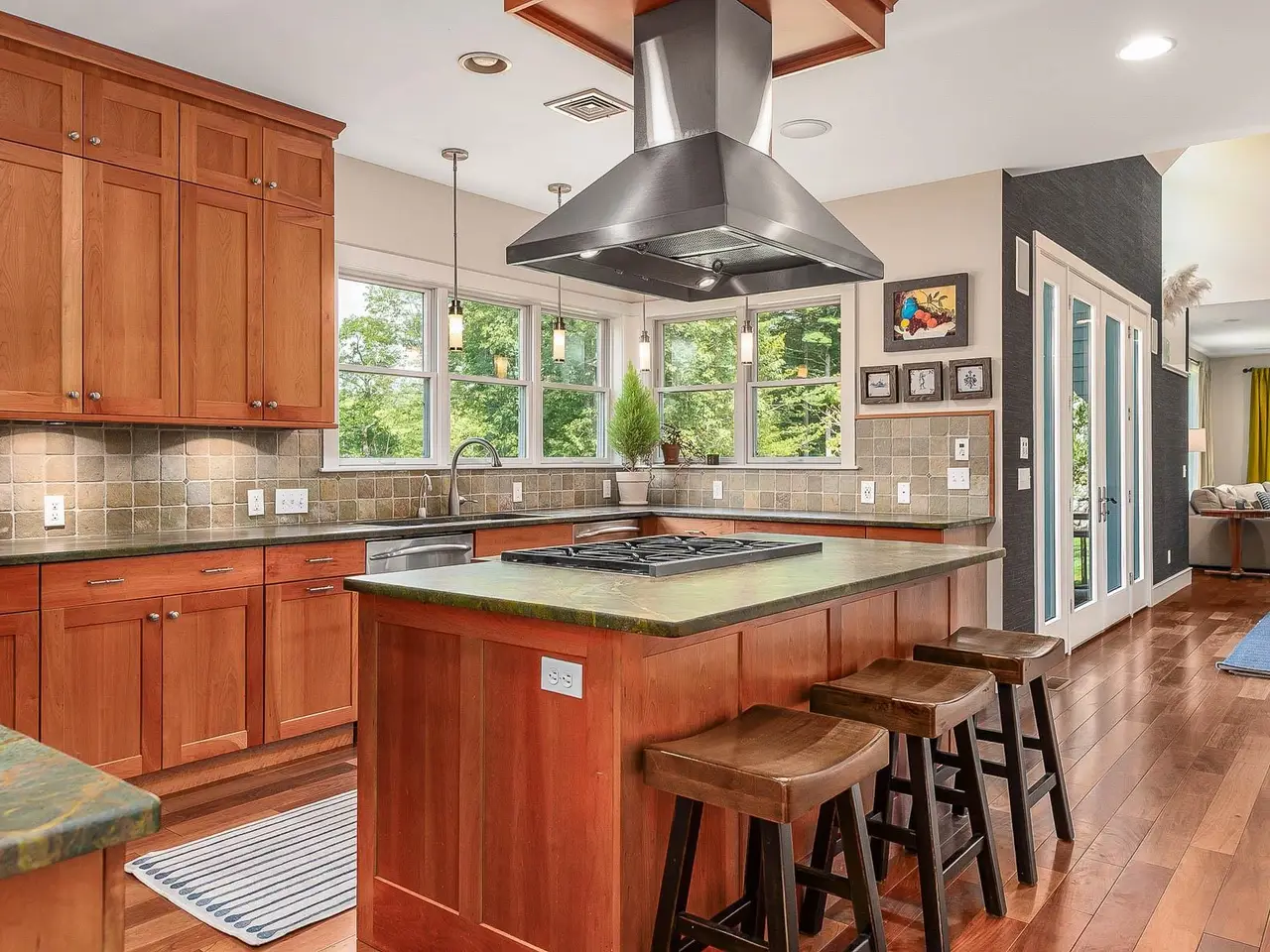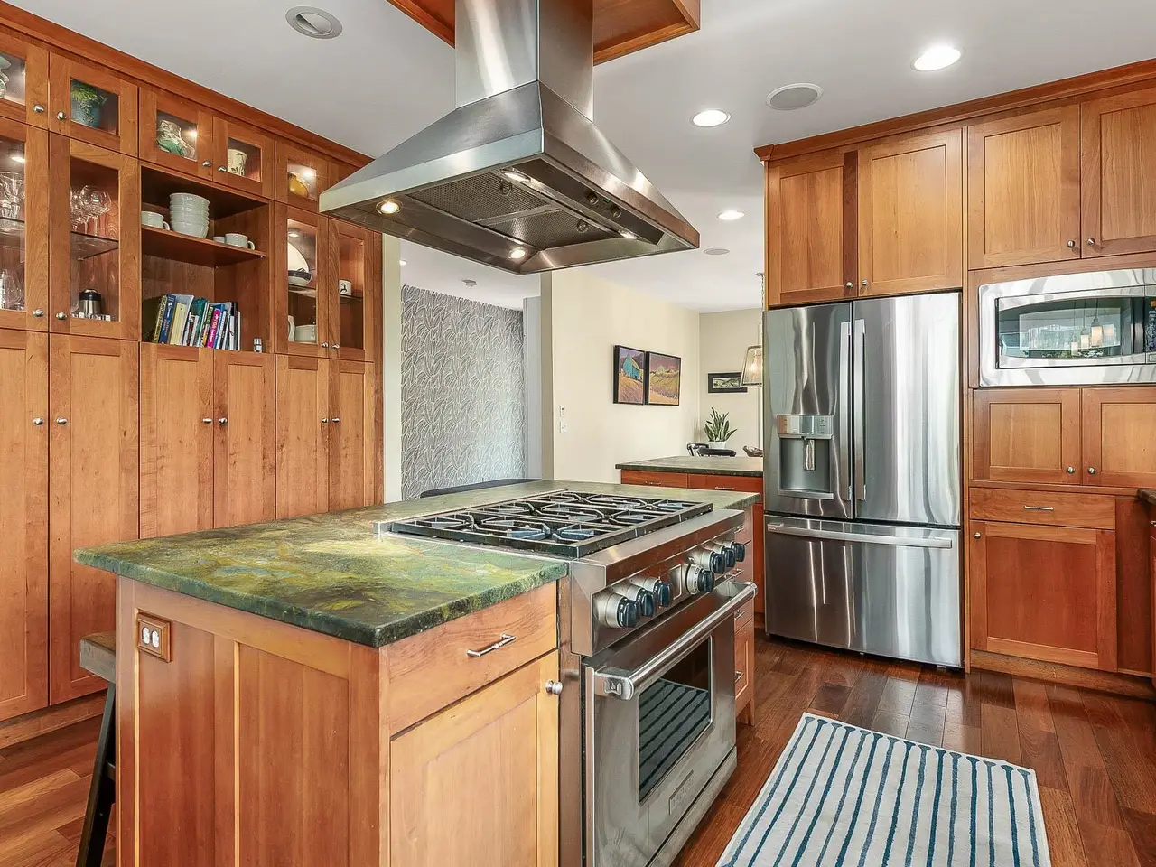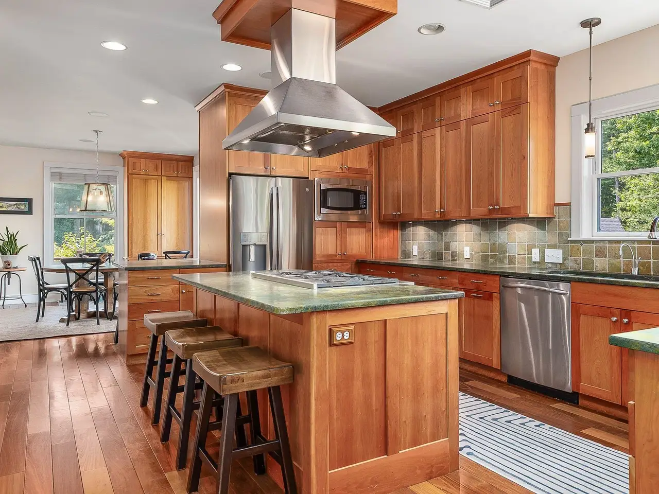 Chef-inspired kitchen with custom woodwork and cozy breakfast nook