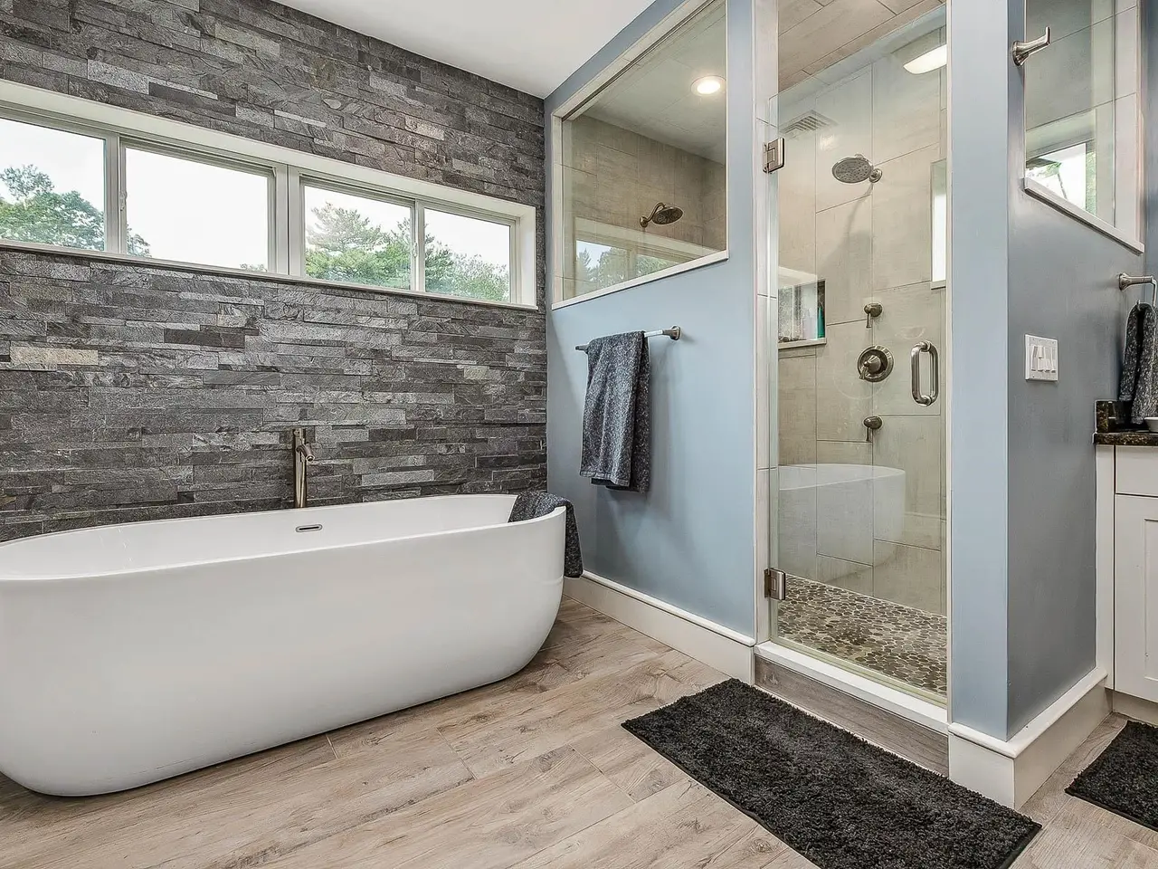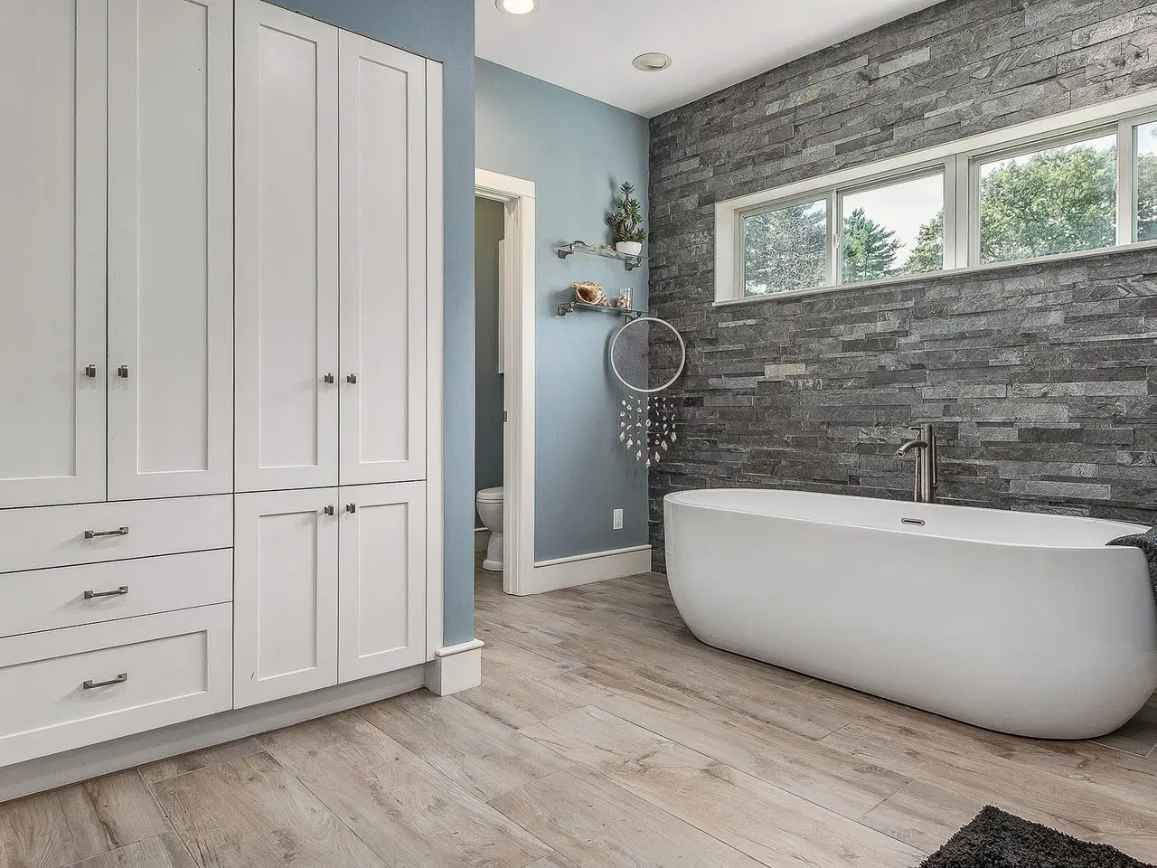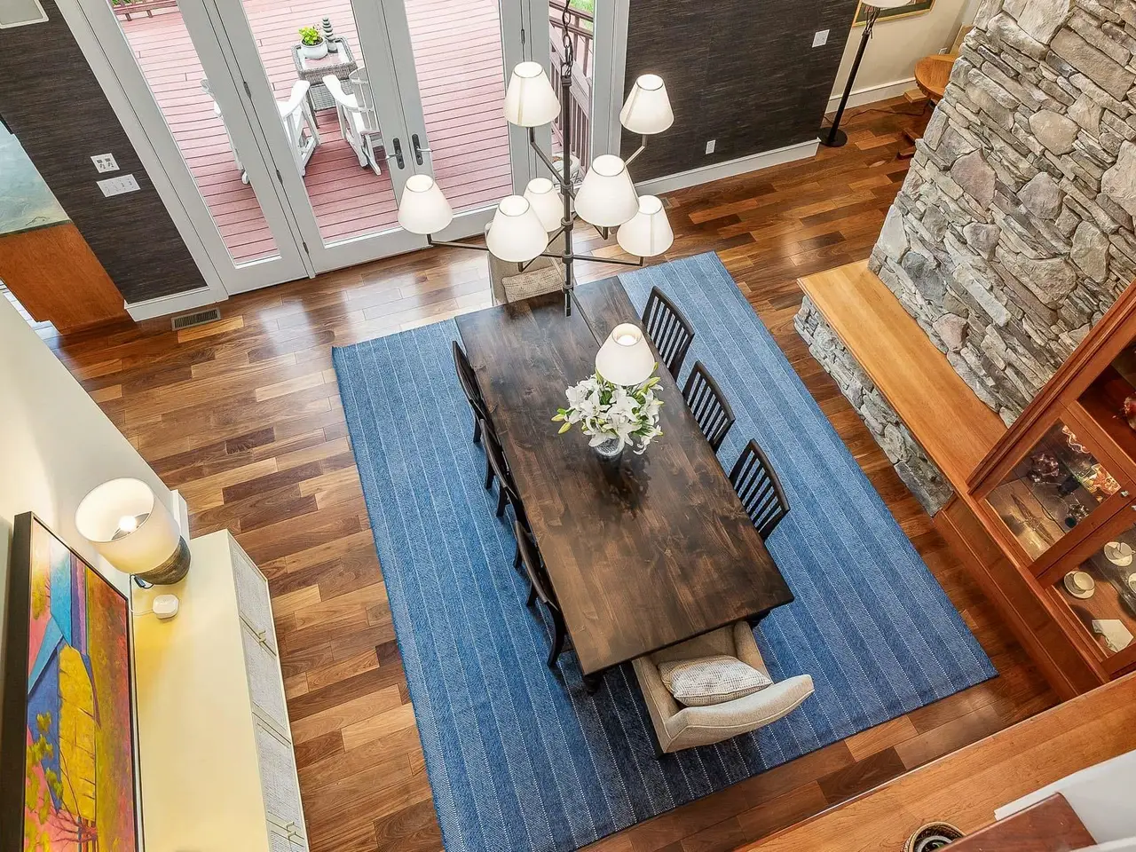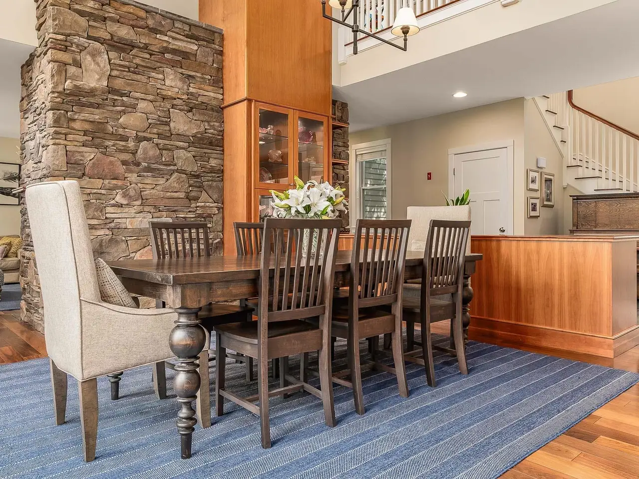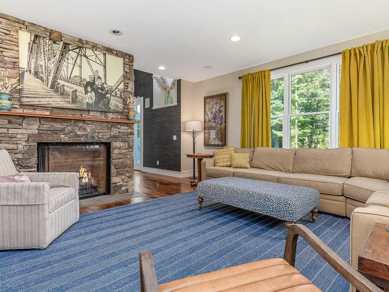 Striking stone fireplace in the living room