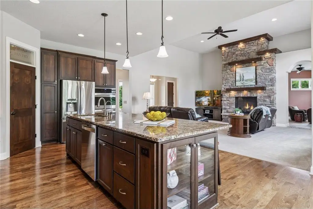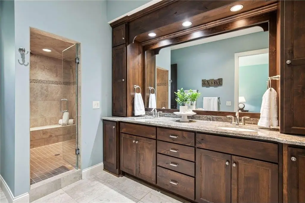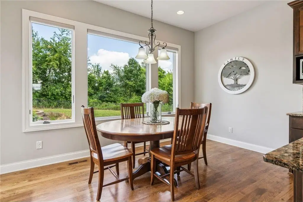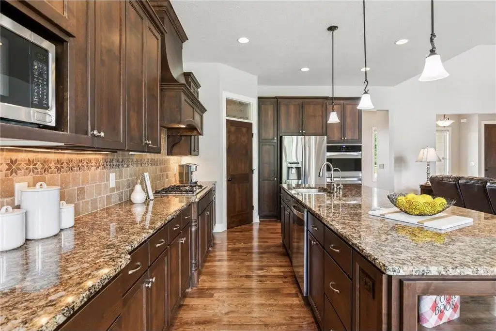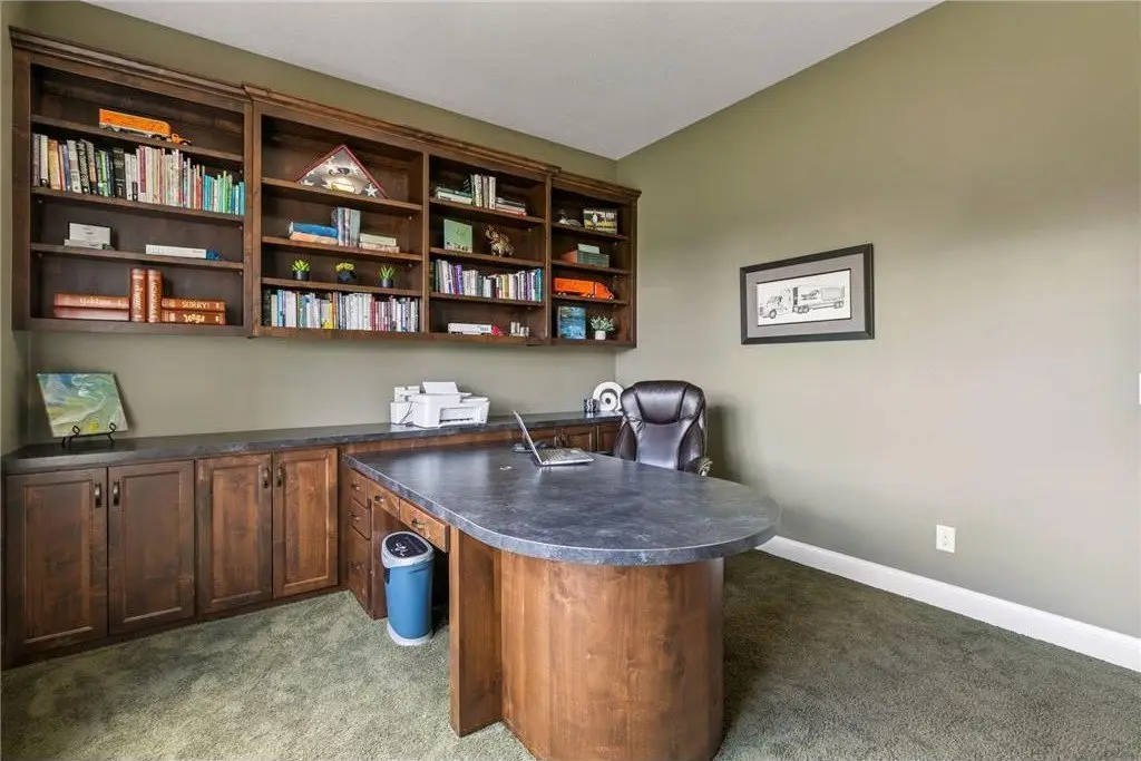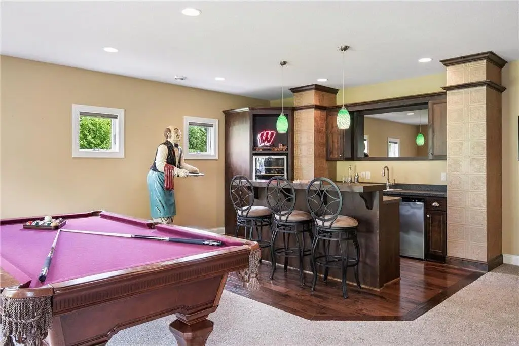 Experience refined luxury in this custom walkout rambler designed and built by JB Woodfitter in 2012, set on 2.51 acres of manicured grounds and prairie beauty. This 4BR/5BA masterpiece offers soaring ceilings, dramatic windows, and high-quality finishes throughout. Enjoy a gourmet kitchen with abundant Knotty Alder cabinetry, oversized island with bar seating, solid surface counter tops, tile backsplash, stainless steel appliances, double wall ovens, and a walk-in pantry. A grand two-story great room with a floor-to-ceiling fireplace with accent down lighting presents an impressive focal point. Gorgeous and inviting hearth room with a heated tile floor, cosmopolitan fireplace, and wet bar designed to offer a seamless indoor-outdoor entertaining space. A convenient 3/4 bath located near the hearth room was designed for a quick rinse after a dip in the pool. Walkout from the hearth room to a heated in-ground pool, sprawling patio, and firepit to unwind and entertain in style. A spacious main level office with French doors and full wall of built-ins welcomes a private work from home space. This lovely home welcomes both formal and in-formal dining spaces, perfect for large gatherings. The main-level primary suite connects to a spa-like bath, complete with a steam shower, that adjoins the laundry for your added convenience. Enter from the garage into a fabulous mud room with a tile floor, built-in lockers and closet for everyday storage. A wide staircase leads you to this homes equally impressive lower level that boasts a spacious family room with a dramatic corner fireplace, billiard area, stunning wet bar, craft/flex room, three bedrooms (one Jack-n-Jill style that share a 3/4 bath) and a separate third bedroom that walks through to a sparkling full bath, plus a lower 2+ garage for all your toys. The upper level three car garage is angled, with an epoxy floor and floor drains, built-in storage cabinetry, (2) 220-volt electric charging stations and a convenient side service door. Surrounded by estate homes and tranquil views, this home blends country serenity with city convenience. Nearby Legends Golf Course offers a challenging game, and a fabulous dining and social experience. This highly sought after neighborhood attends highly sought after Lakeville schools and is not part of the Scottview Estates homeowner's association. Go ahead and fall in love with this spectacular home - its easy to do here.
