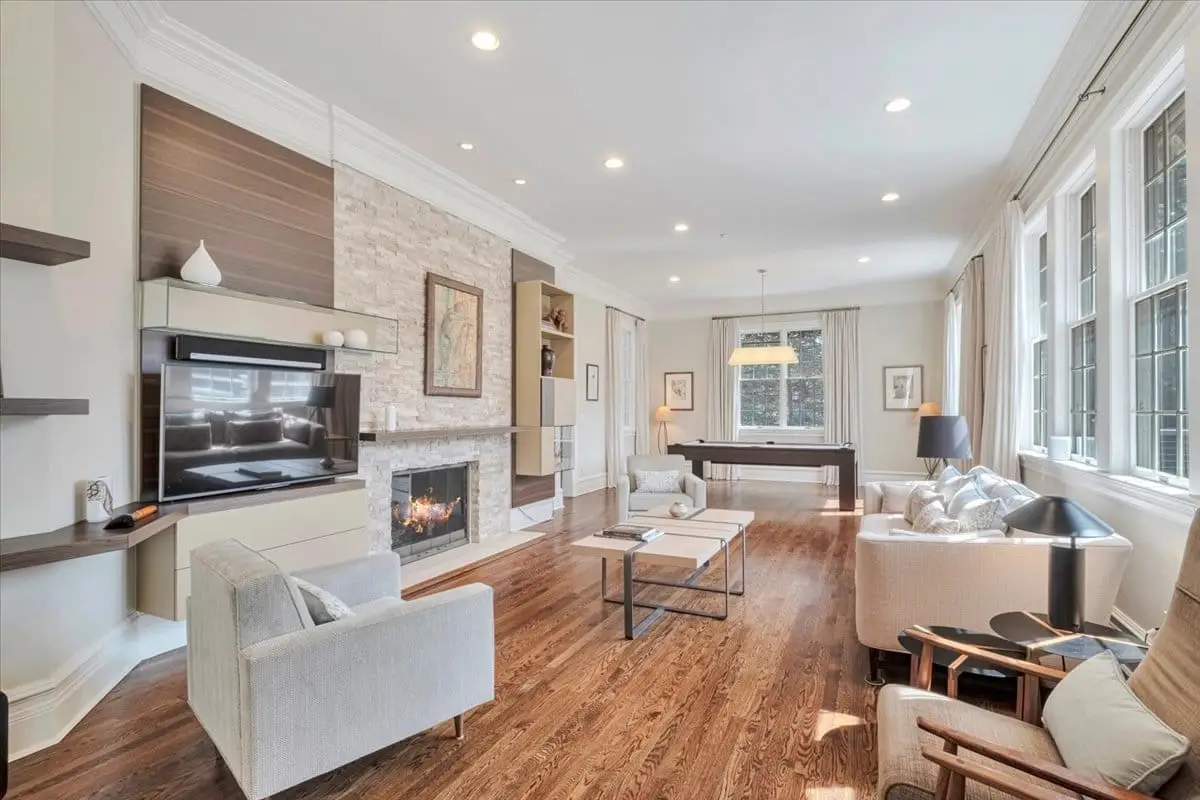 Impressive Center Hall Colonial set on a private cul-de-sac. Dramatic two-story cathedral ceiling entry foyer with circular staircase, step down living room /limestone gas fireplace, formal dining room with butler's pantry, and guest powder room complete the front of the 1st floor. Entire back of home is designed for comfortable casual living: large gourmet kitchen with center island plus breakfast/lounge area, Great Room/fireplace, billiard room w/easy access to rear deck for summer enjoyment. Continuing on the first floor is an adjoining wing w/laundry, backstairs to 2nd floor, bedroom/bath, custom fitted closets, pantry/storage, door to 3 car garage with electric car charger. Second floor: primary bedroom suite with fireplace, tray ceiling, sitting room, two WICs, new large luxurious spa bath with radiant heated floor, dual vanities, 4 additional en-suite bedrooms/bathrooms and a huge bonus room. Lower level offers several flexible options that new owner can create: a rec room, home theatre, studio w/full bath, home gym - endless possibilities! Amenities: Full house water filtration, 5-zone heat/central air (all new AC's). Additional updates: exterior power washed and trim painted, new back deck, new Sub-Zero, oven, stovetop and hood, microwave, countertops and backsplash! Home offers Nest intelligent thermostat, alarm, sprinkler system, central vacuum, 3 car garage. Just move right in!