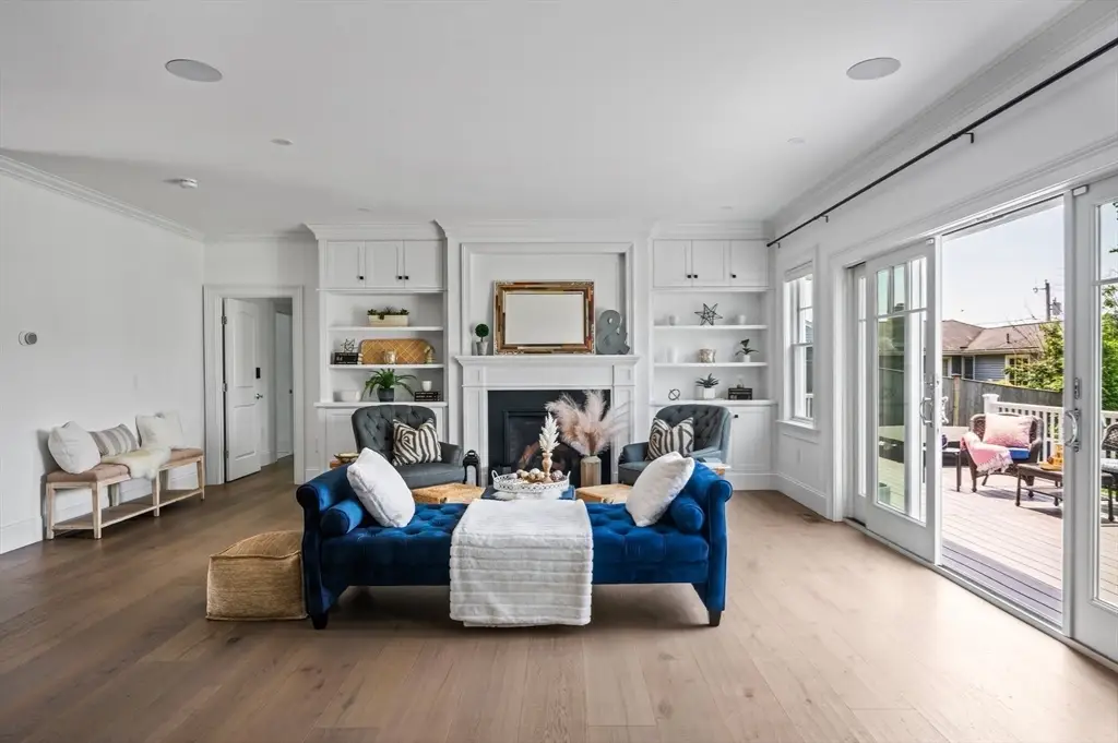 Located on the beautiful peninsula of Squantum and only 7 miles from Boston, this stunning 4+ bed, 5.5 bath open-floor plan home with top-tier finishes includes a gourmet kitchen with oversized pantry, gas fire place, home office, laundry, half bath, and a large deck-perfect for entertaining. A hot tub was recently added for ultimate relaxation! Both floors offer opulent primary en-suites. The 2nd floor en-suite with water/city views, includes a private balcony, his/her walk-in closets and a spa-like bath. All bedrooms have their own luxurious bathroom. An additional laundry room is located on the 2nd floor. A "bonus" room above garage with full bath and private entrance, can serve as a guest quarters, an au-pair suite or game room. The finished basement includes a gym with treadmill & TV. Two garage bays attached to the home with 2 additional bays in a detached structure. Professionally landscaped with custom exterior lightening. A rare opportunity in a coveted seaside neighborhood!